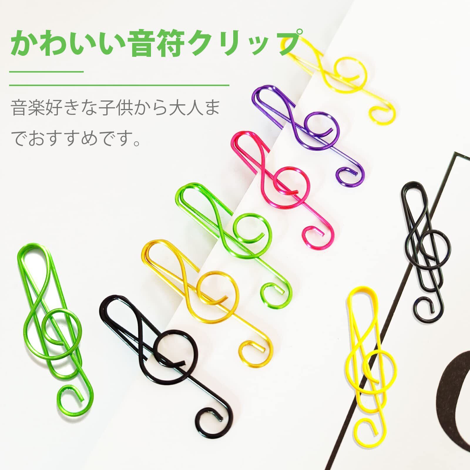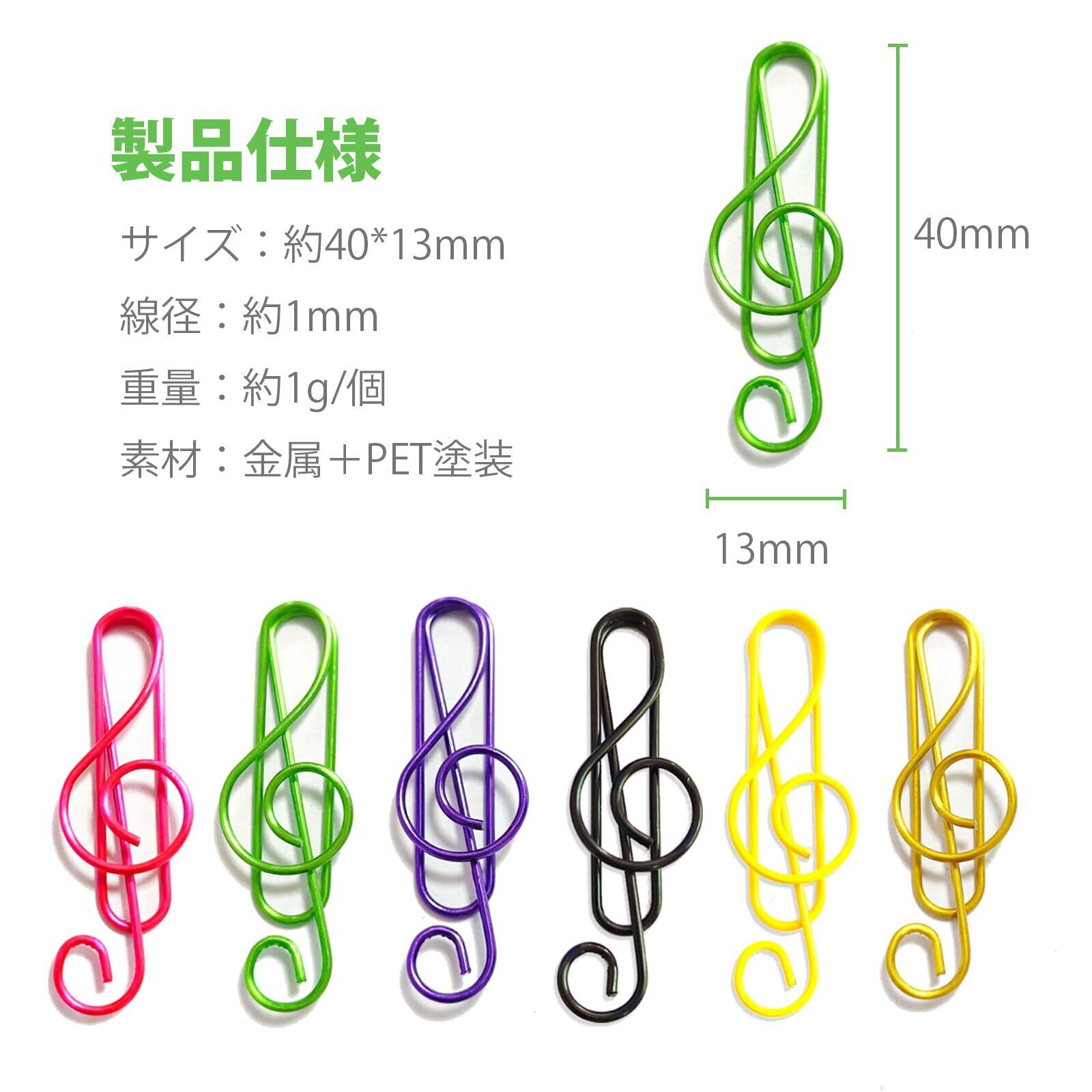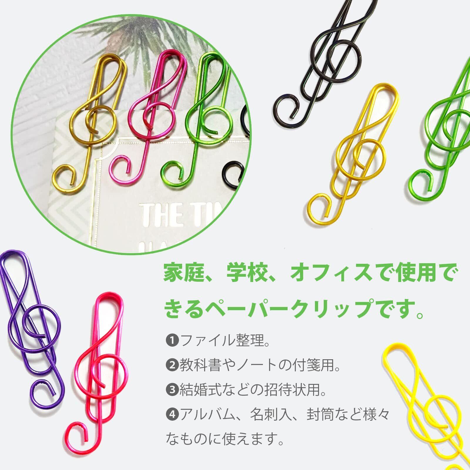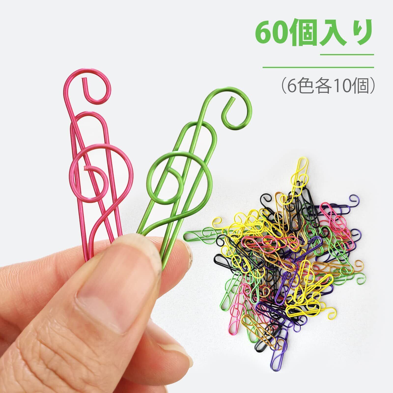 ゼムクリップ 【60枚セット】ペーパークリップ 音符 クリップ 可愛い ト音記号 ブックマーク 金属製 書類整理/招待状/付箋/手紙/メモ帳用 文房具 カラー 豊富 メモクリップ 6色 収納ケース付き | kki