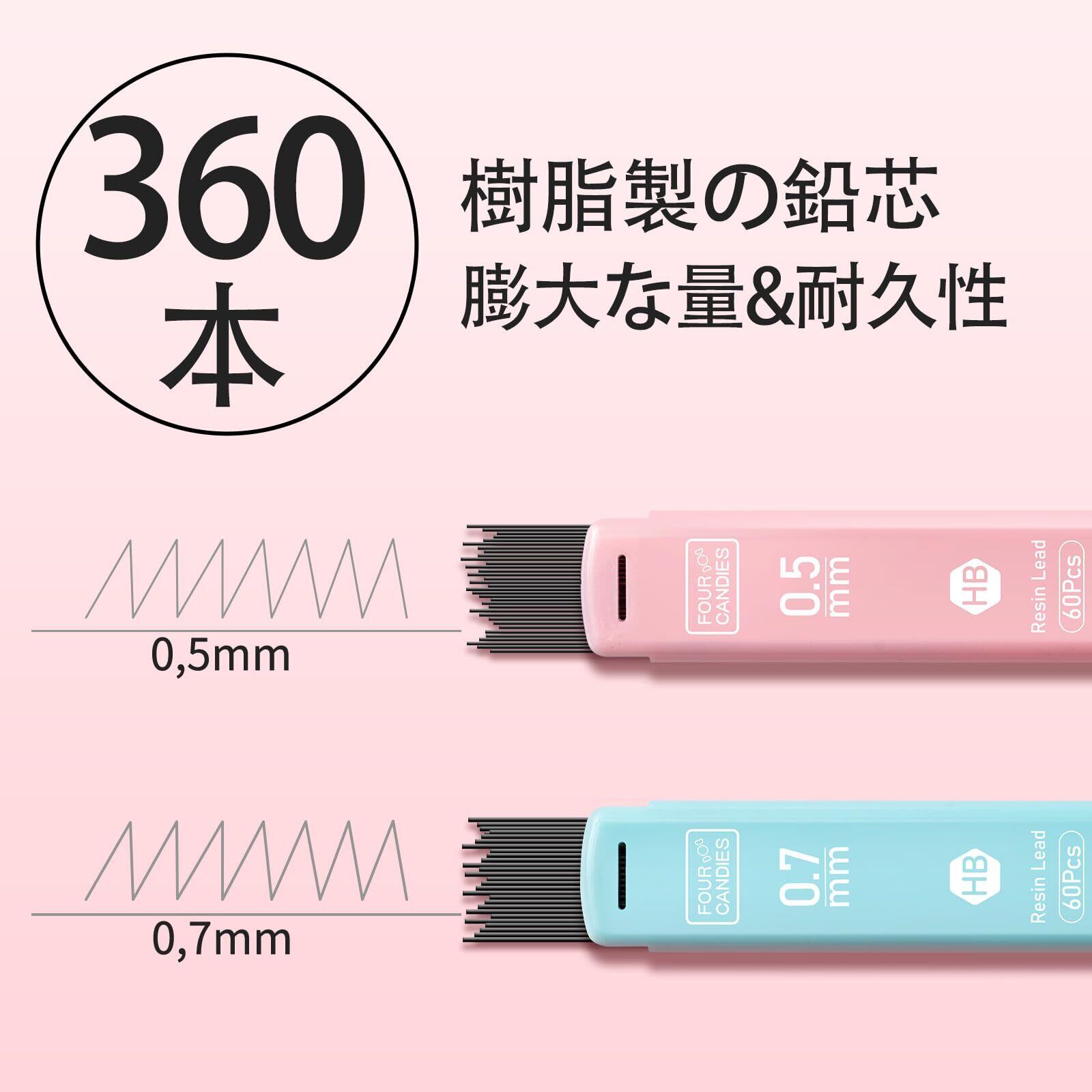 Four Candies パステルシャープペンシル 6本セット 0.5mm&0.7mm シャーペン 書きやすい 中学生 360本HBシャー芯 消しゴム付き かわいい 女の子 男の子 学生 文房具セット | kki