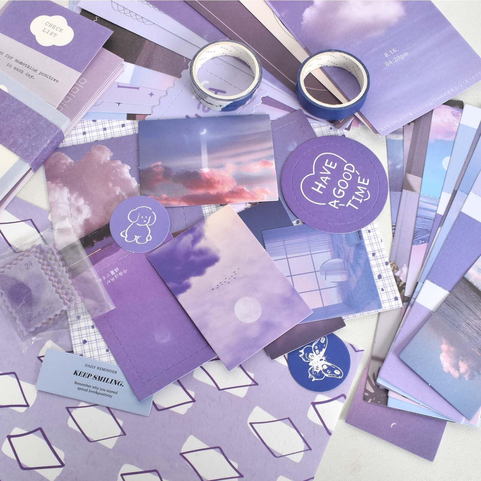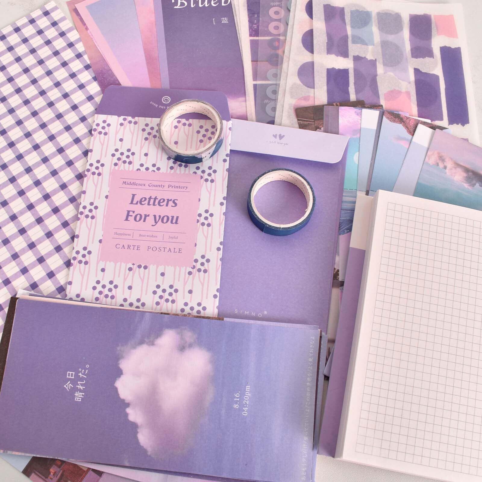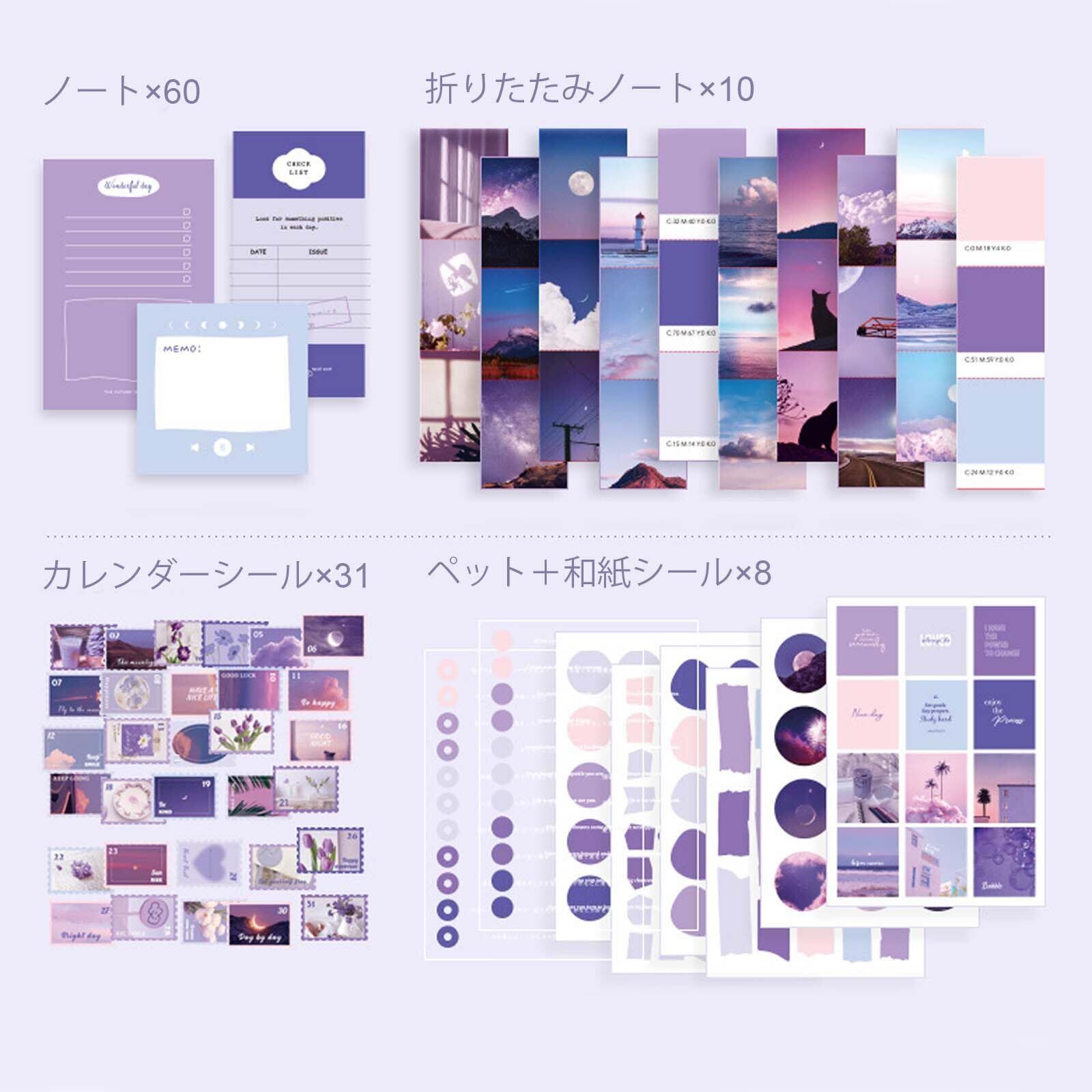 日記帳 セット 手帳 可愛い 紫 スクラップブッキング キット バレットジャーナル ノート A6 手帳 素材セット 子供 小学生 女の子 プレゼント 卒業記念品 文房具 進学 新学期