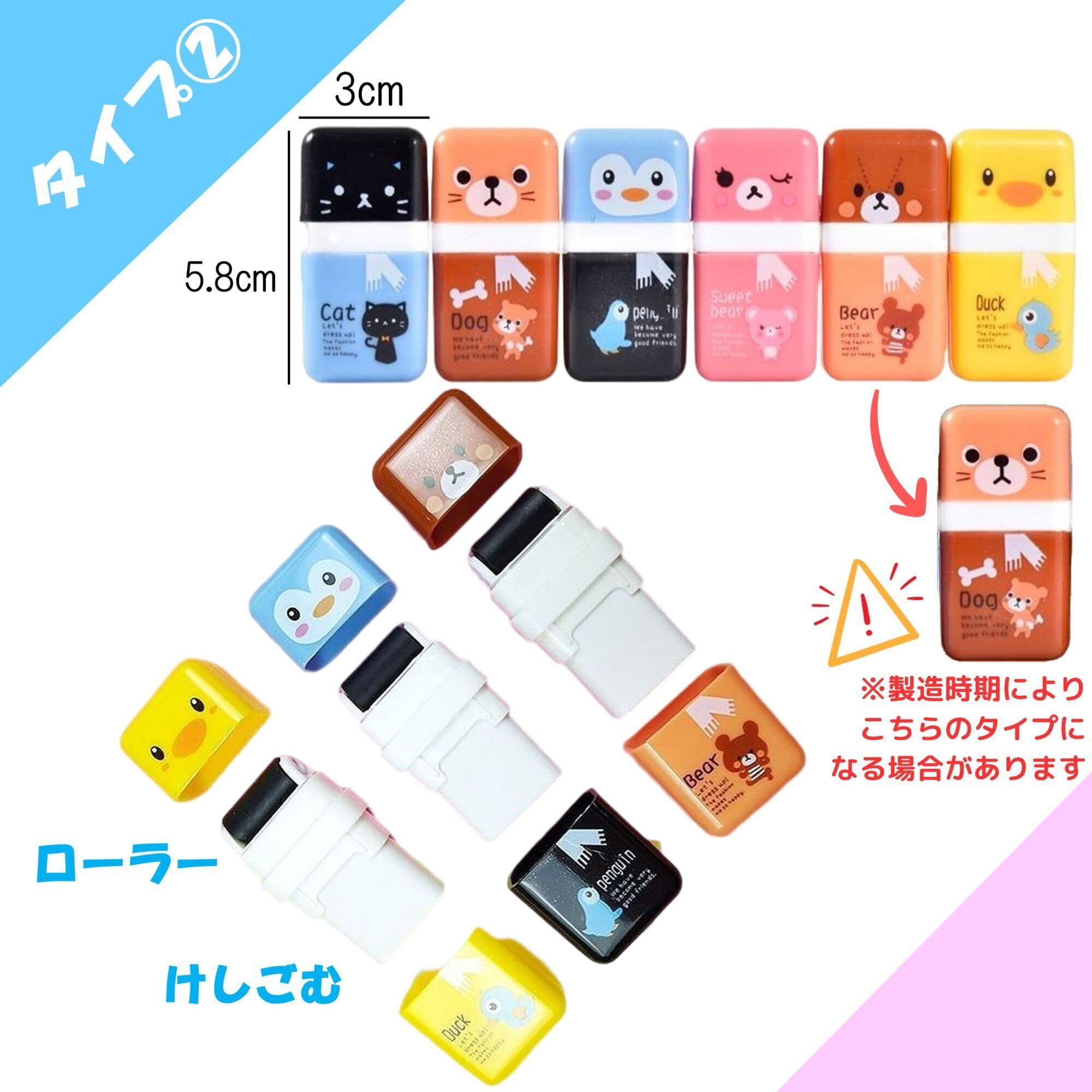 消しゴム 小学生 ローラー消しゴム おもしろ文房具 かわいい 文具 女の子 男の子 ミニ (動物12個セット)