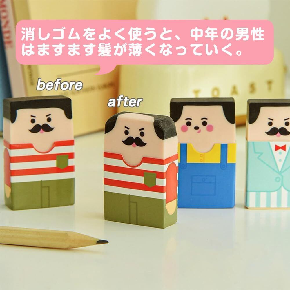 消しゴム 8枚セット ハゲおじさん消しゴム 練り おしゃれ 面白い 可愛い 人気 学習用 文房具 学生 子供 こども 描画 DIY 学習用プチギフト