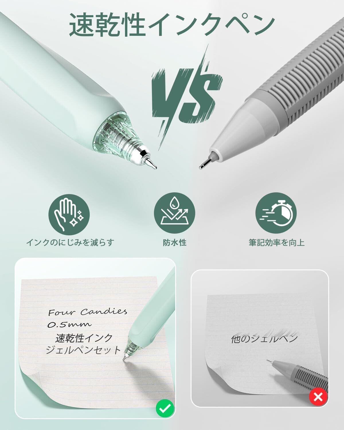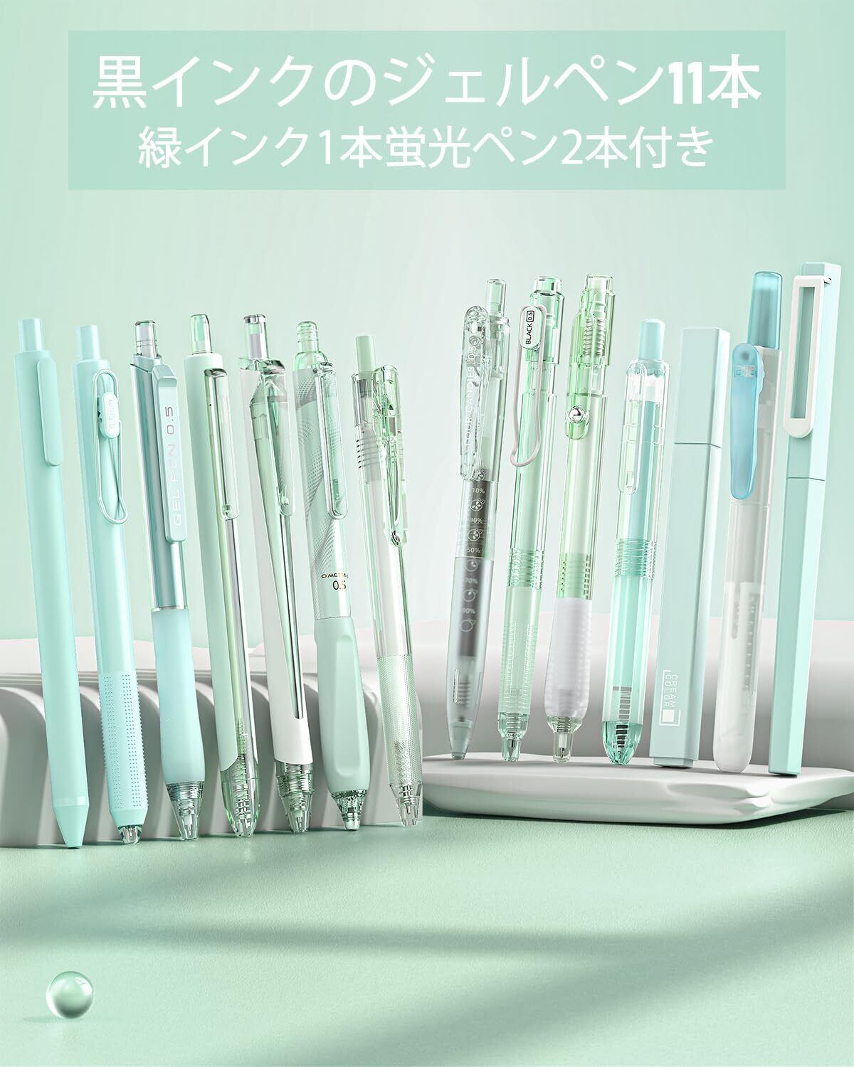 Four Candies ジェルボールペンセット 可愛いノート型ゲルペン 0.5mm12本ボールペン&2本蛍光ペン かきやすい 速乾性インク 学校 ノート 筆記 メモ 学生文房具に最適-緑 | kki