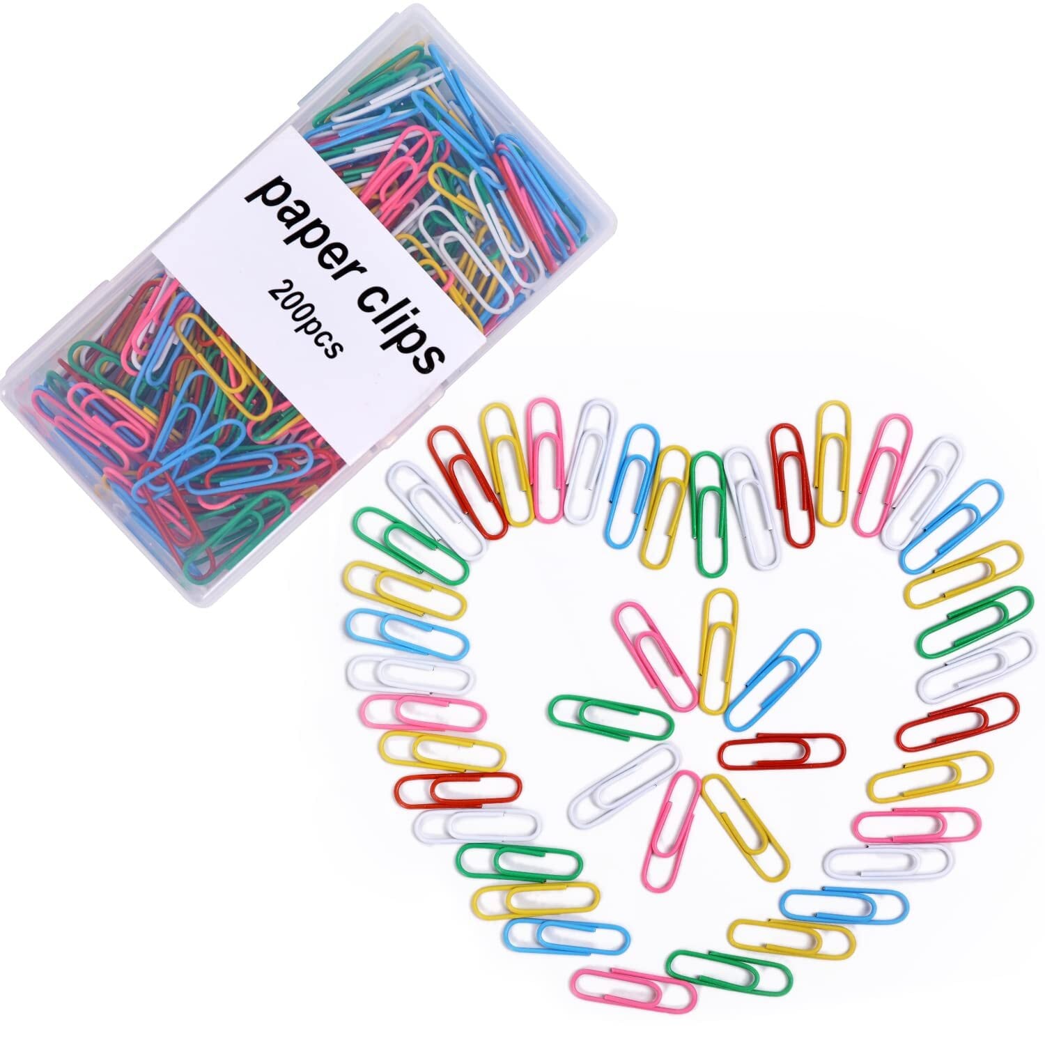 ペーパークリップ ゼムクリップ クリップ 書類整理 カラー シルバー銀色 200個入り 可愛い 大容量 収納ケース付 (多色)