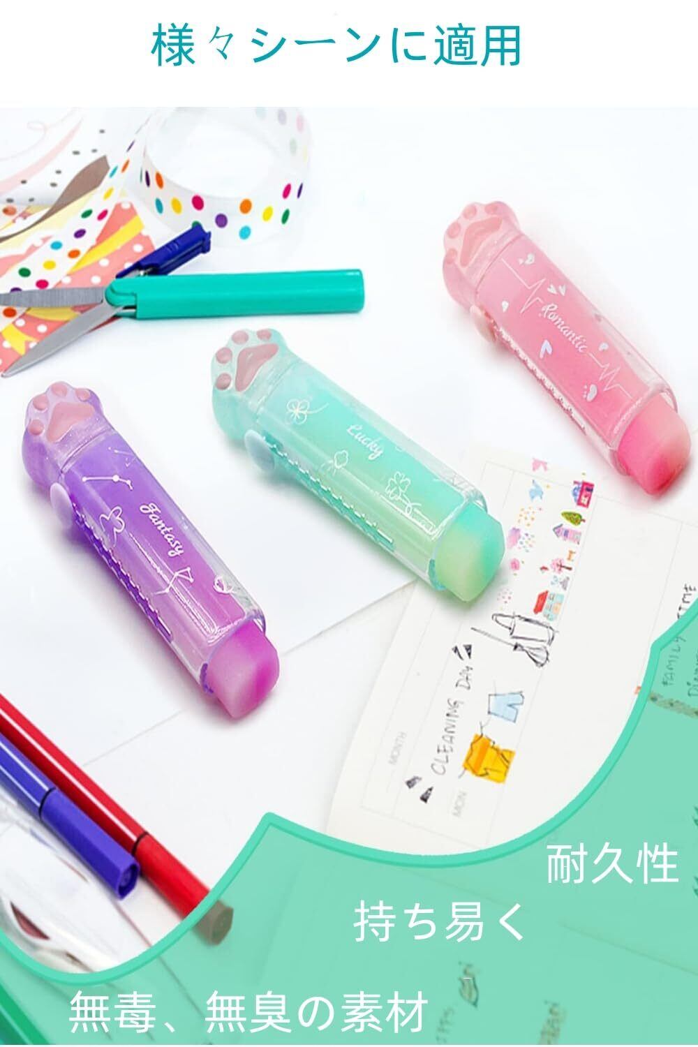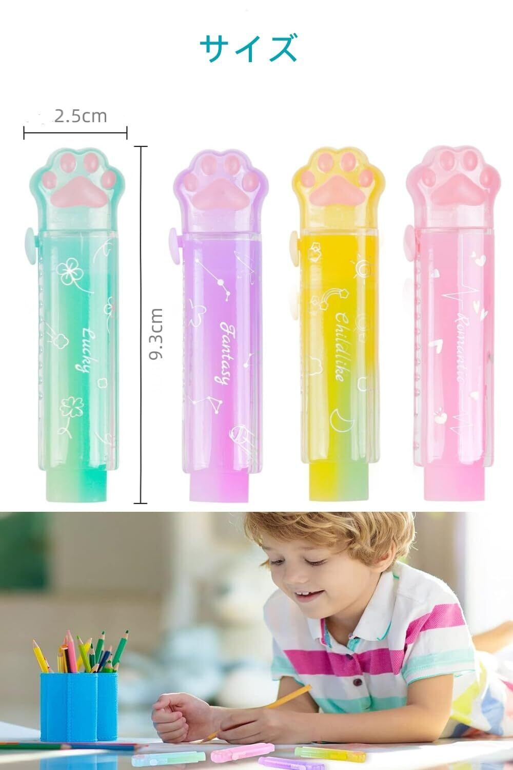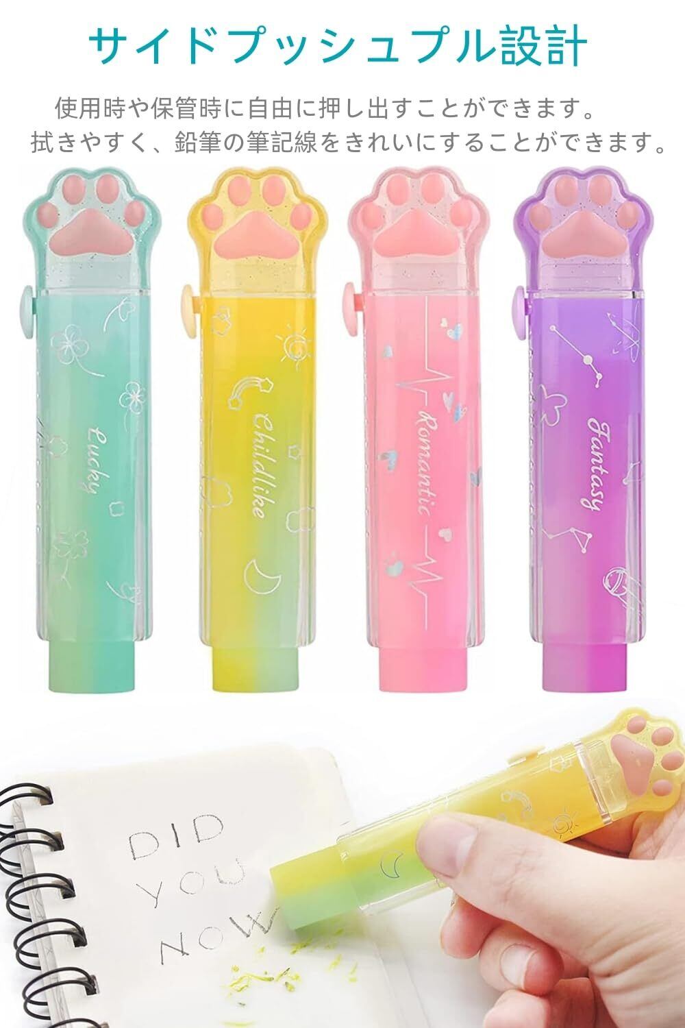 YFFSFDC 消しゴムキラキラ 4色4個セット可愛い鉛筆消しゴムセット文房具ノベルティスクールオフィス子供子供学生DIY描画使いやすい持ち運び
