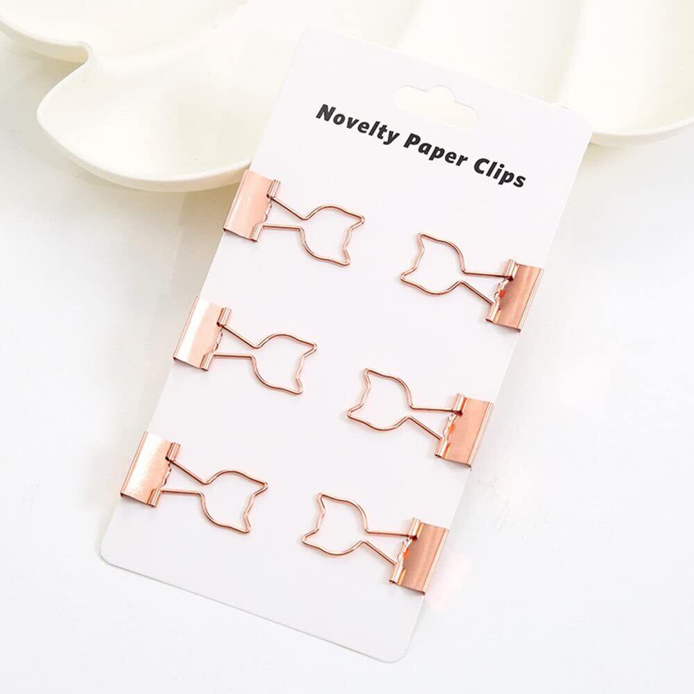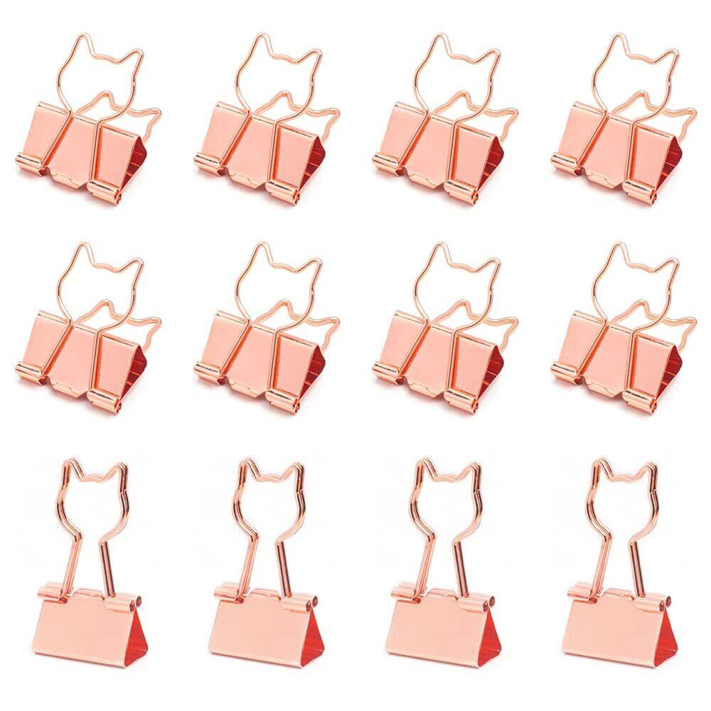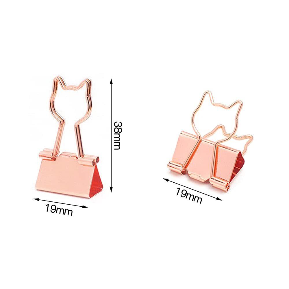 猫型 ダブルクリップ 19mm 小 12個入り ネコデザイン クリップ 金属製 ペーパークリップ 書類整理 事務用品 オフィス かわいい ローズゴールド