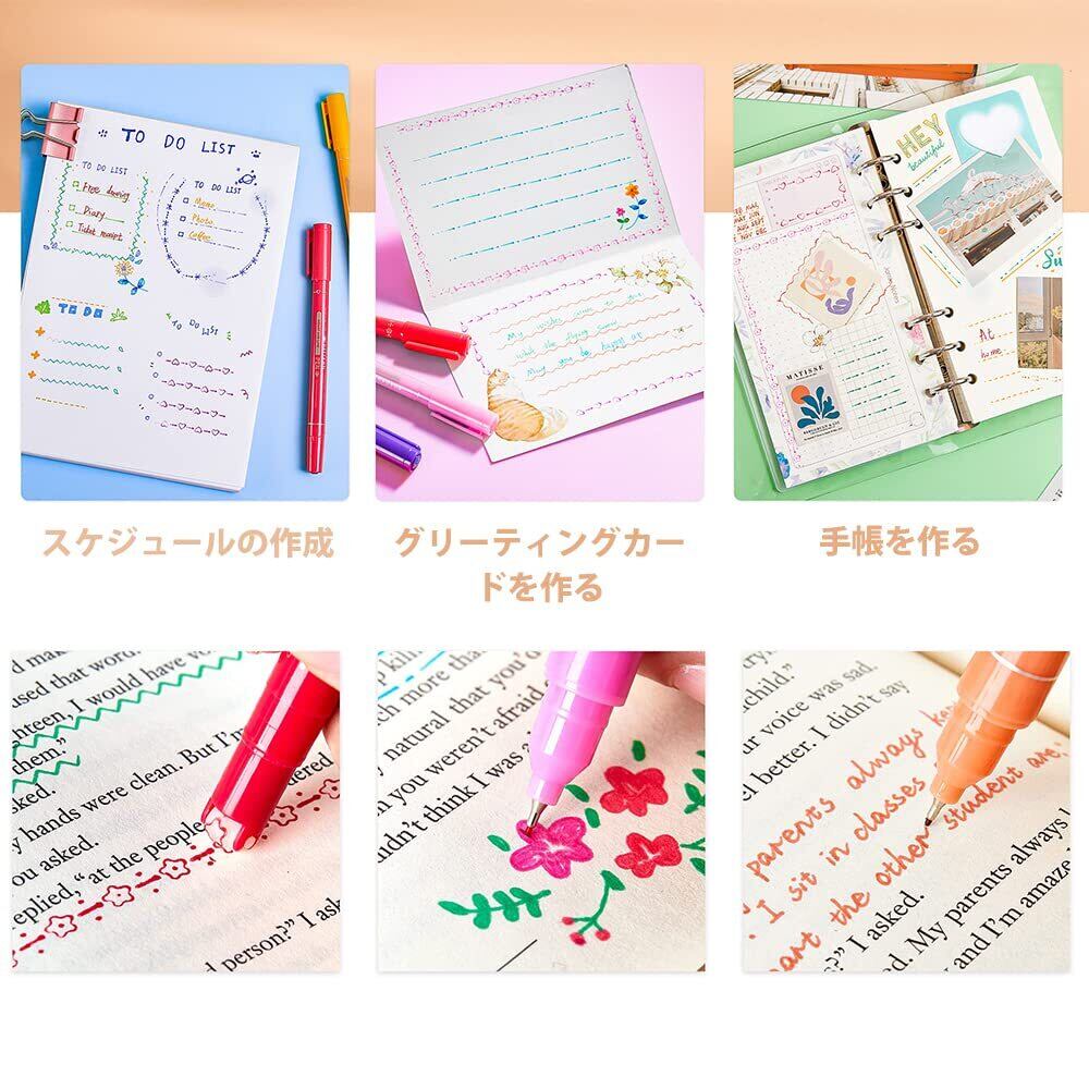 カーブペン 水性ペン 蛍光ペン ローラースタンプペン 花柄/ハート/点線/波線 速乾 耐久 手帳 日記 筆記用具 贈り物(8色、6種類)
