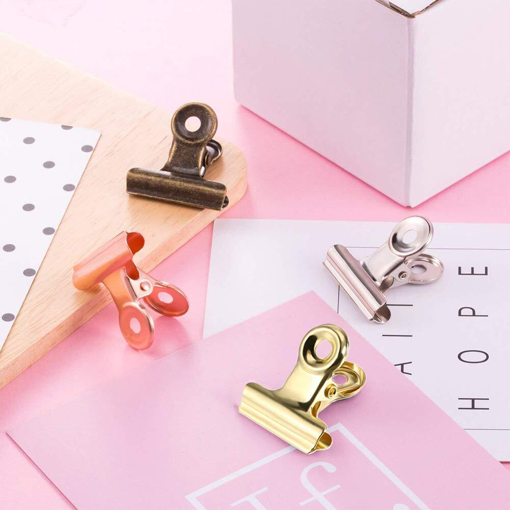 Aelfox 24個 目玉クリップ 金属 口幅30mm ダブルクリップ 文房具 紙クリップ オフィス クリップ キッチン 4色