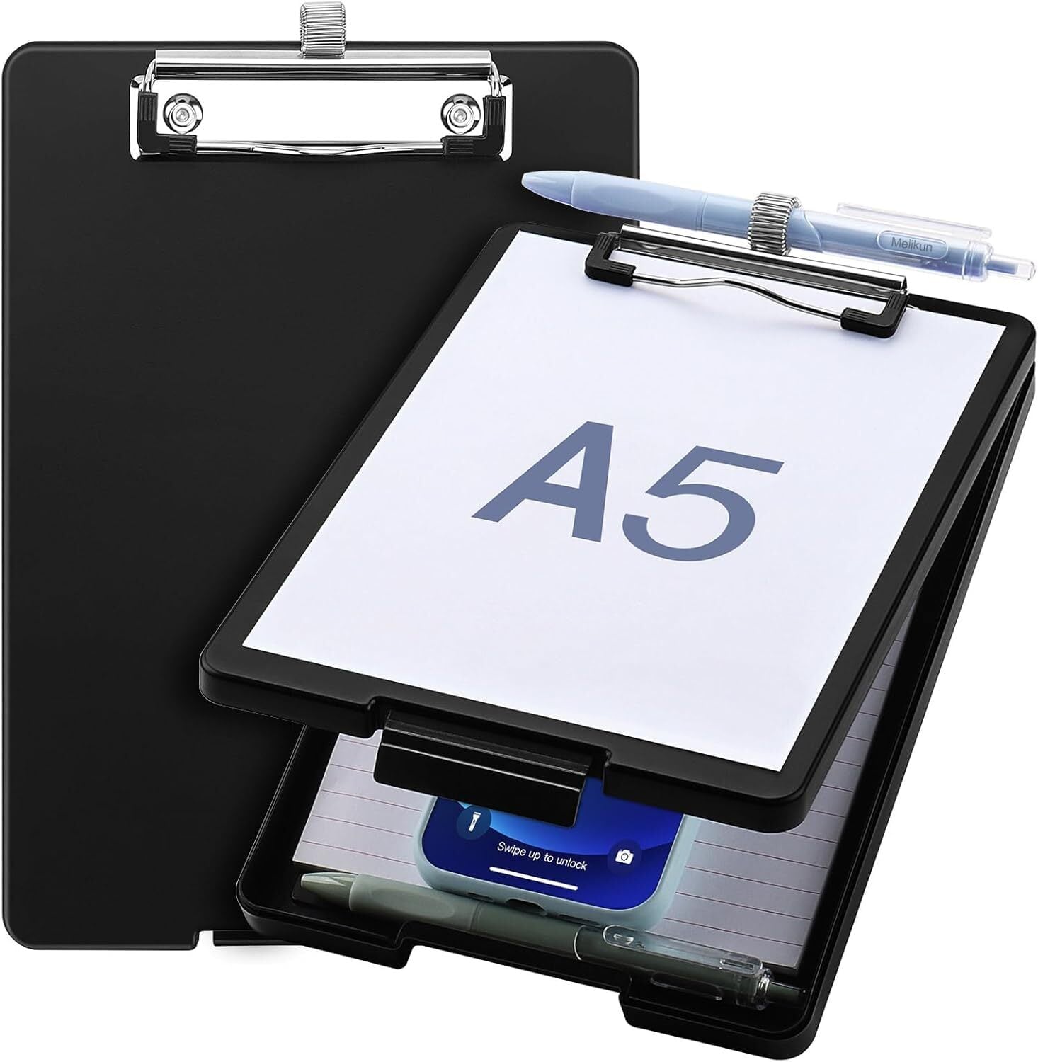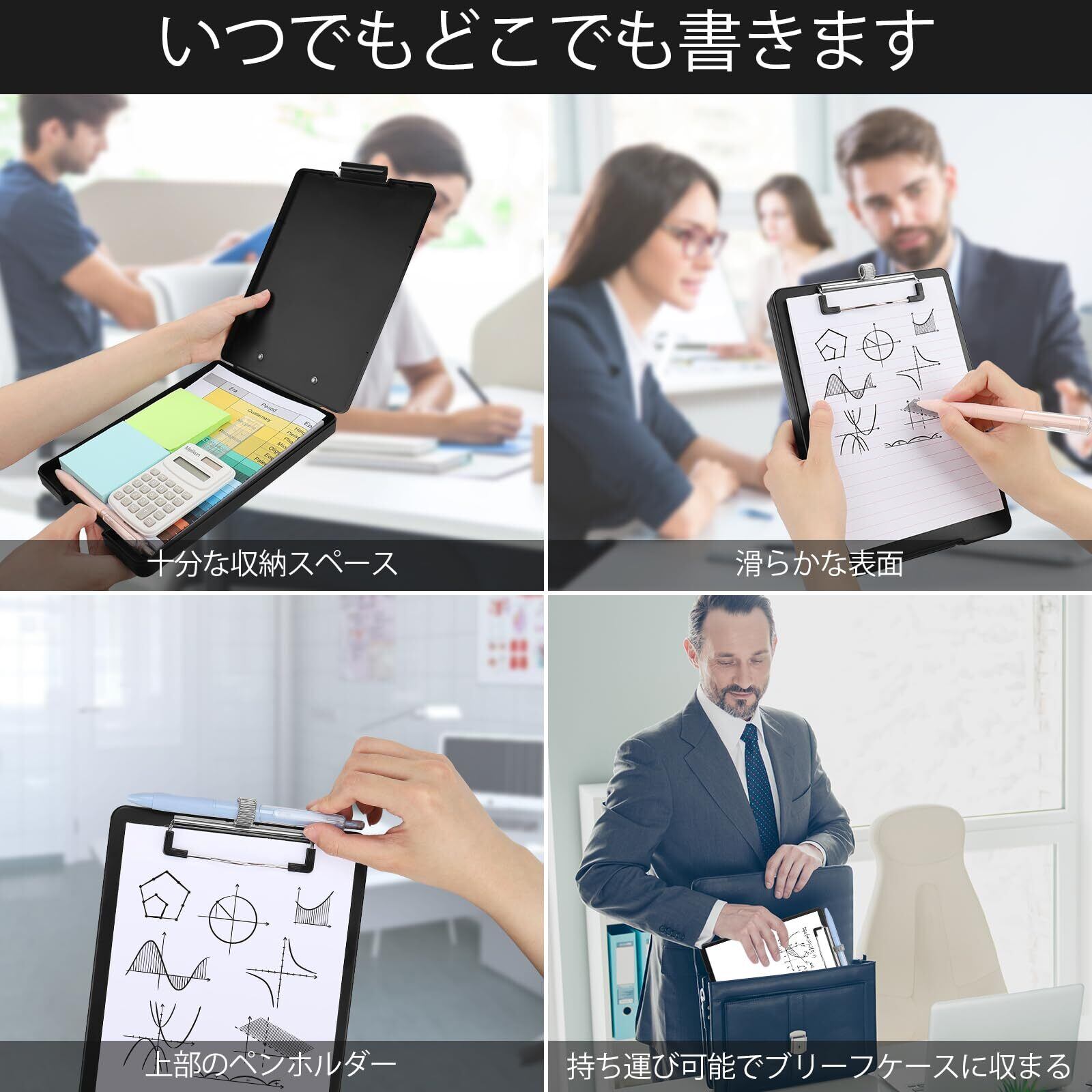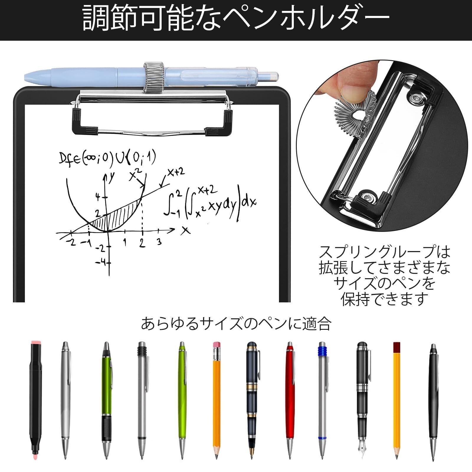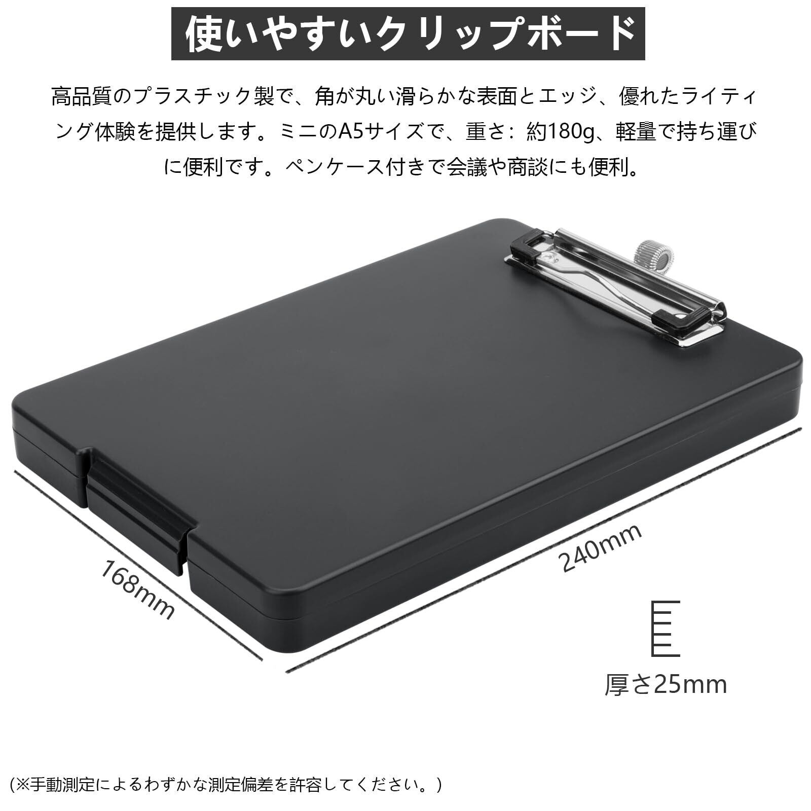 SFLHHDM バインダー 折りたたみ a5 クリップボード 2つ折り 防水 ハードケース ペンホルダー付き かわいい ファイルケース メモ 伝票ホルダー おしゃれ クリップボードフォルダ ミニ 可愛い 文房具 a5 多機能 用箋挟 収納付き 下敷きボード 持ち運び 便利 オフィス用品 (ブラック) | kki