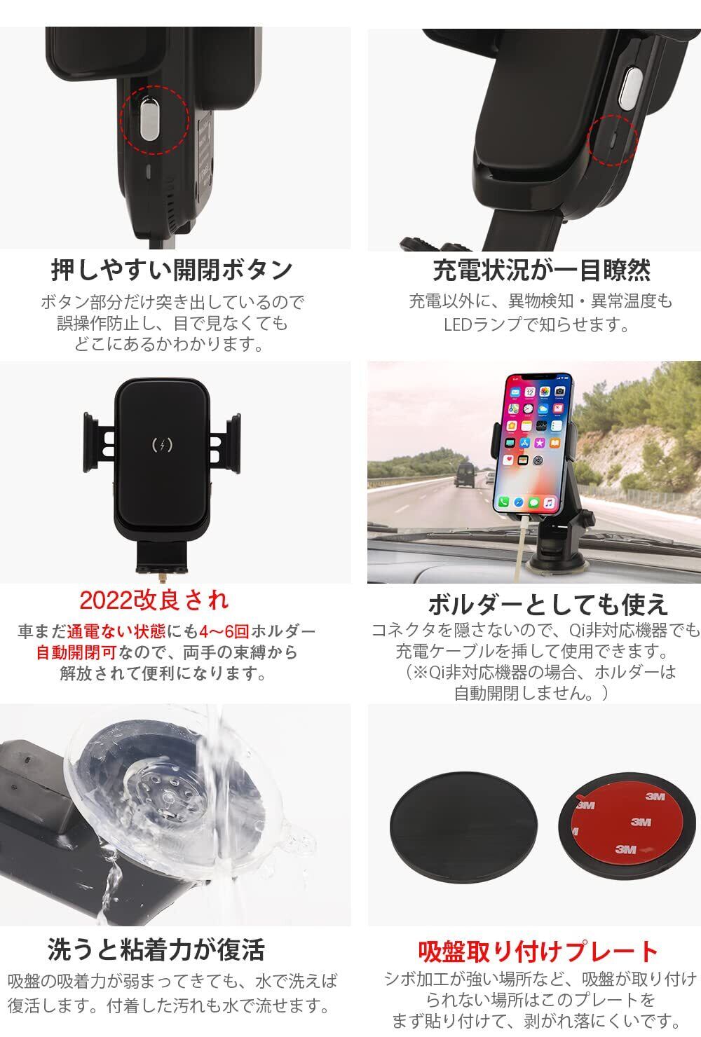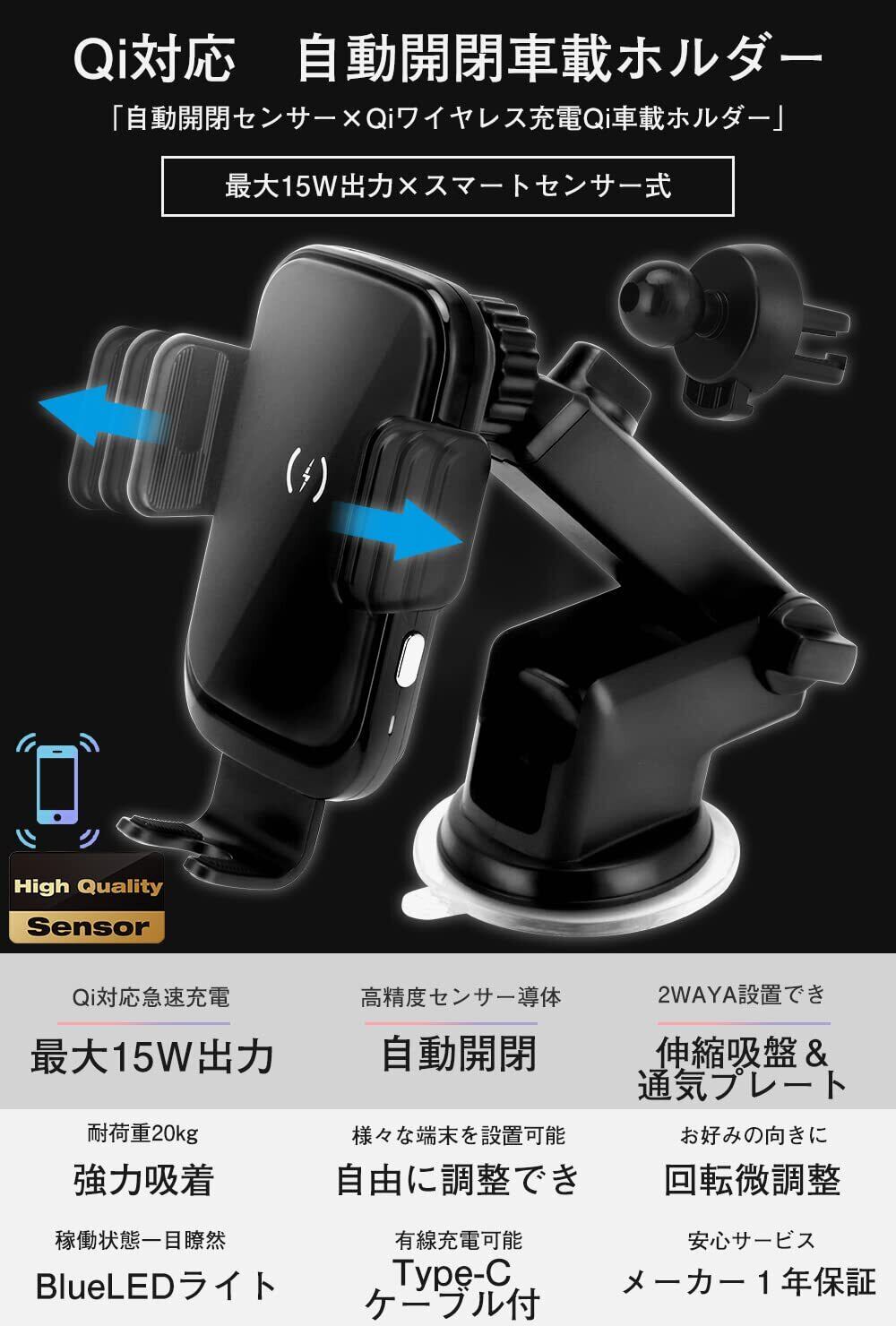 車載ワイヤレス充電器 スマホホルダー 車 ワイヤレス充電 【15W急速充電 自動開閉】 車載ホルダー スマホスタンド 車 iPhone 16/15 /14 /13/12/11シリーズ/XS/XR / 8 / Samsung S8 / S9 / S10 qi機種対応 4.0-7.0インチに対応 360度回転 片手操作 エアコン吹き出し口用 日本語説明書 | kki