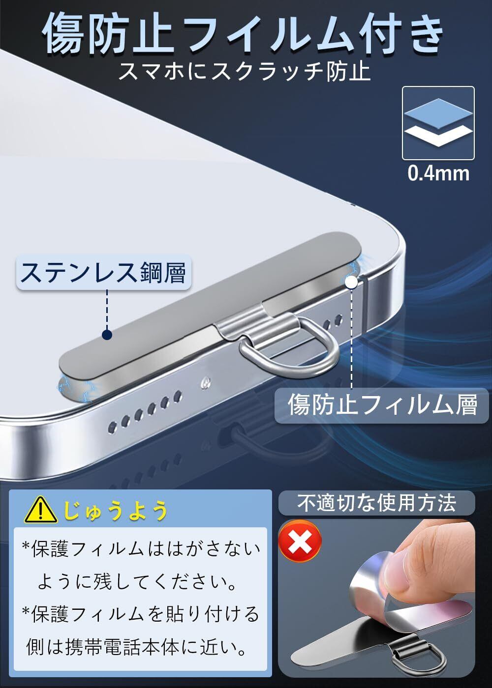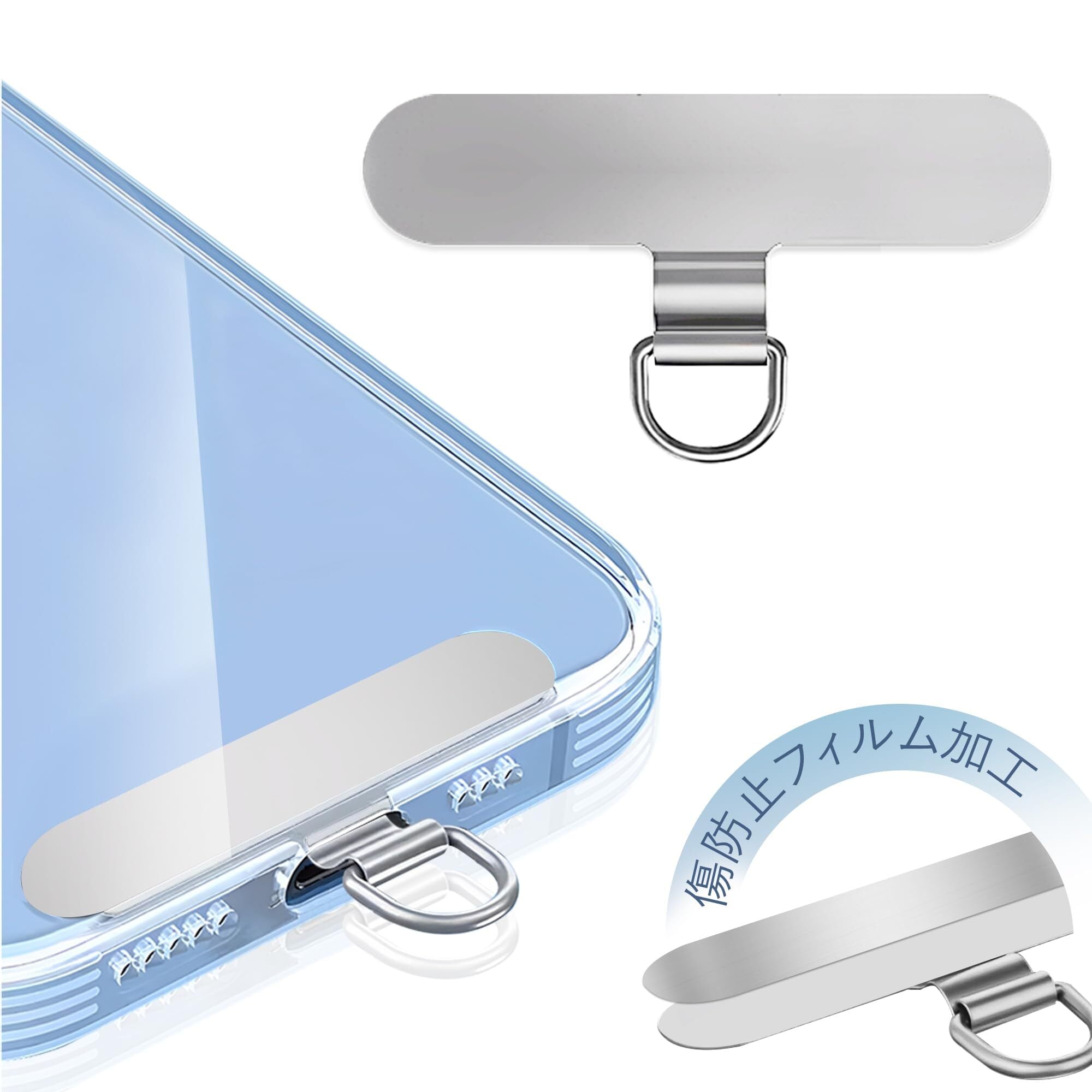 ZXZone ストラップホルダー【傷防止フィルム加工】 スマホストラップ 折り曲げても浮きにくい設計・極薄0.2mmの金属製タグパッチ採用 落下防止首掛け斜めがけ肩掛け携帯ストラップ iphone android スマホアクセサリ全機種対応 (シルバー-TD) | kki