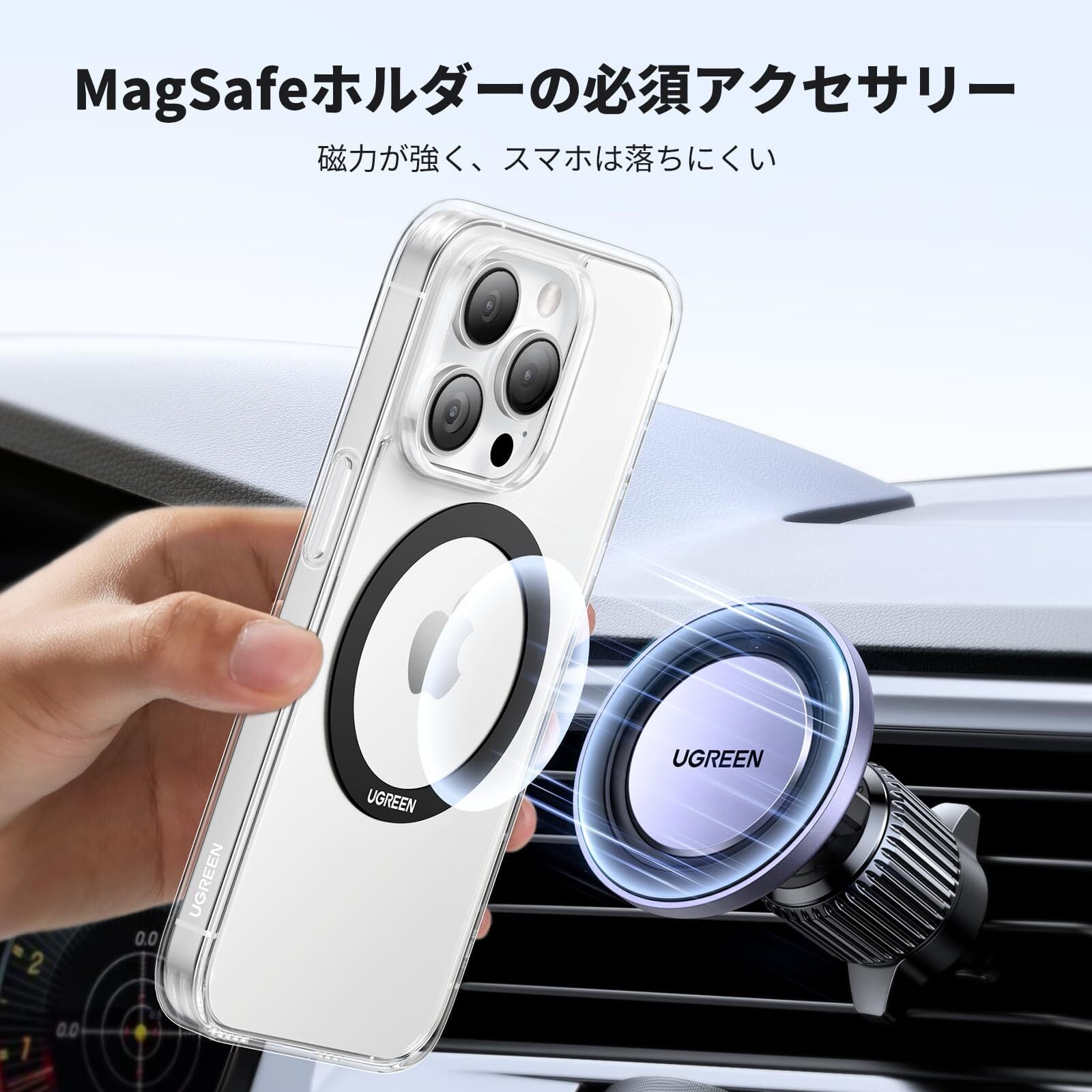 UGREEN メタルリング MagSafe対応 リング ワイヤレス充電対応 磁気増強 マグセーフ iPhone17 16 15 14 13 12シリーズ対応 Galaxy スマホ対応 スマホリング 貼り付け簡単 2枚入り | kki