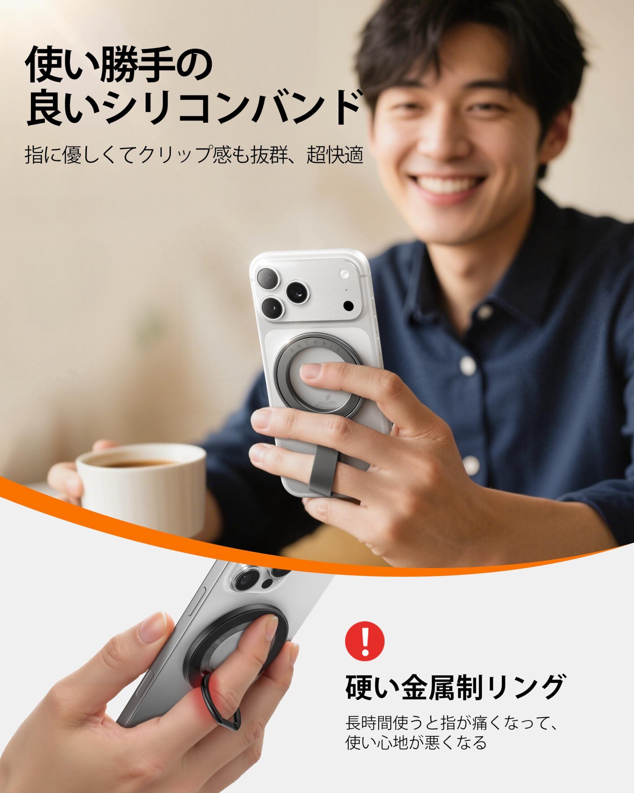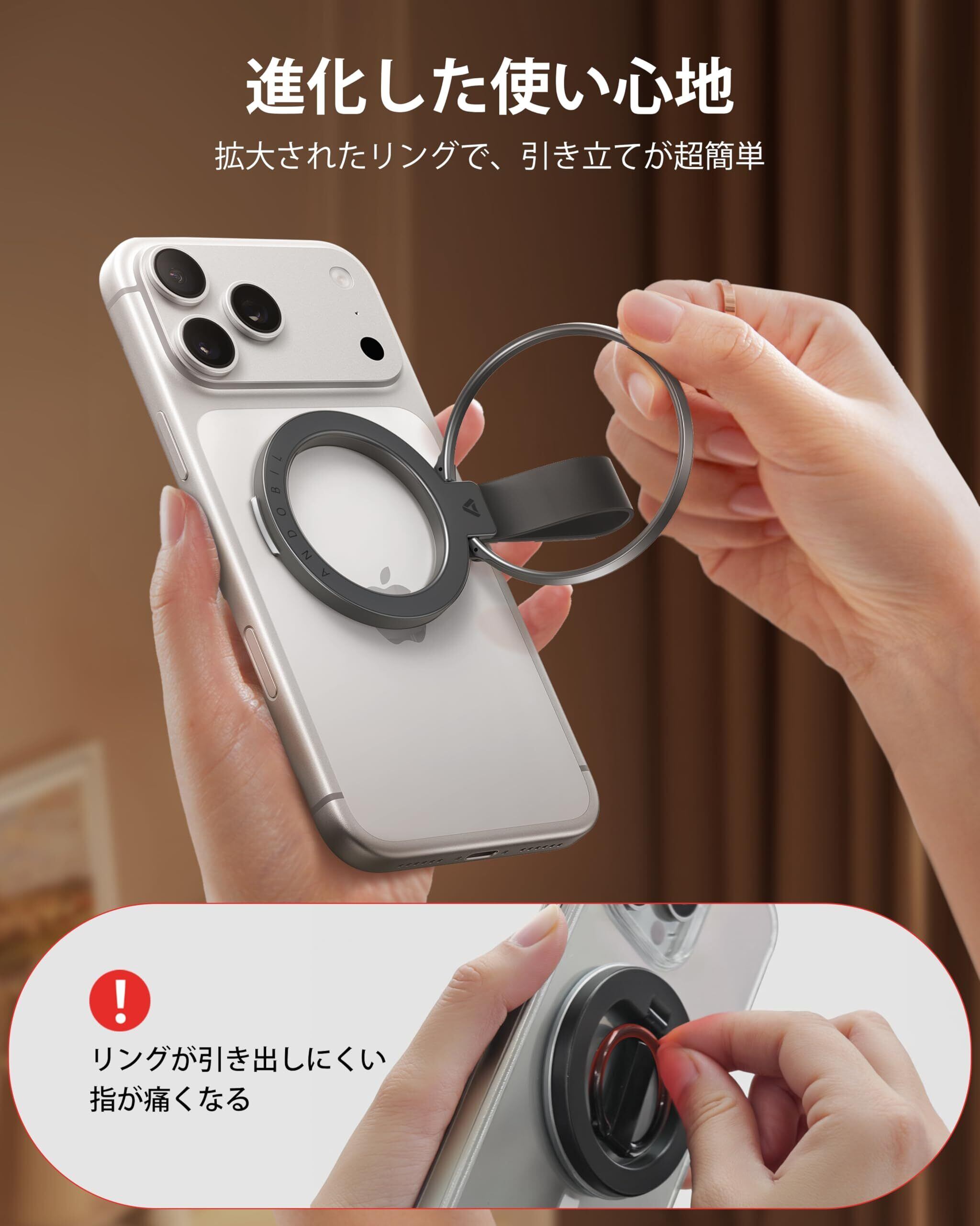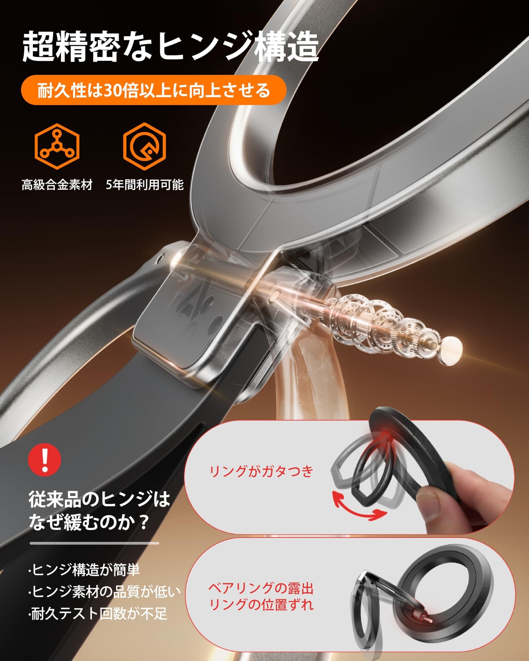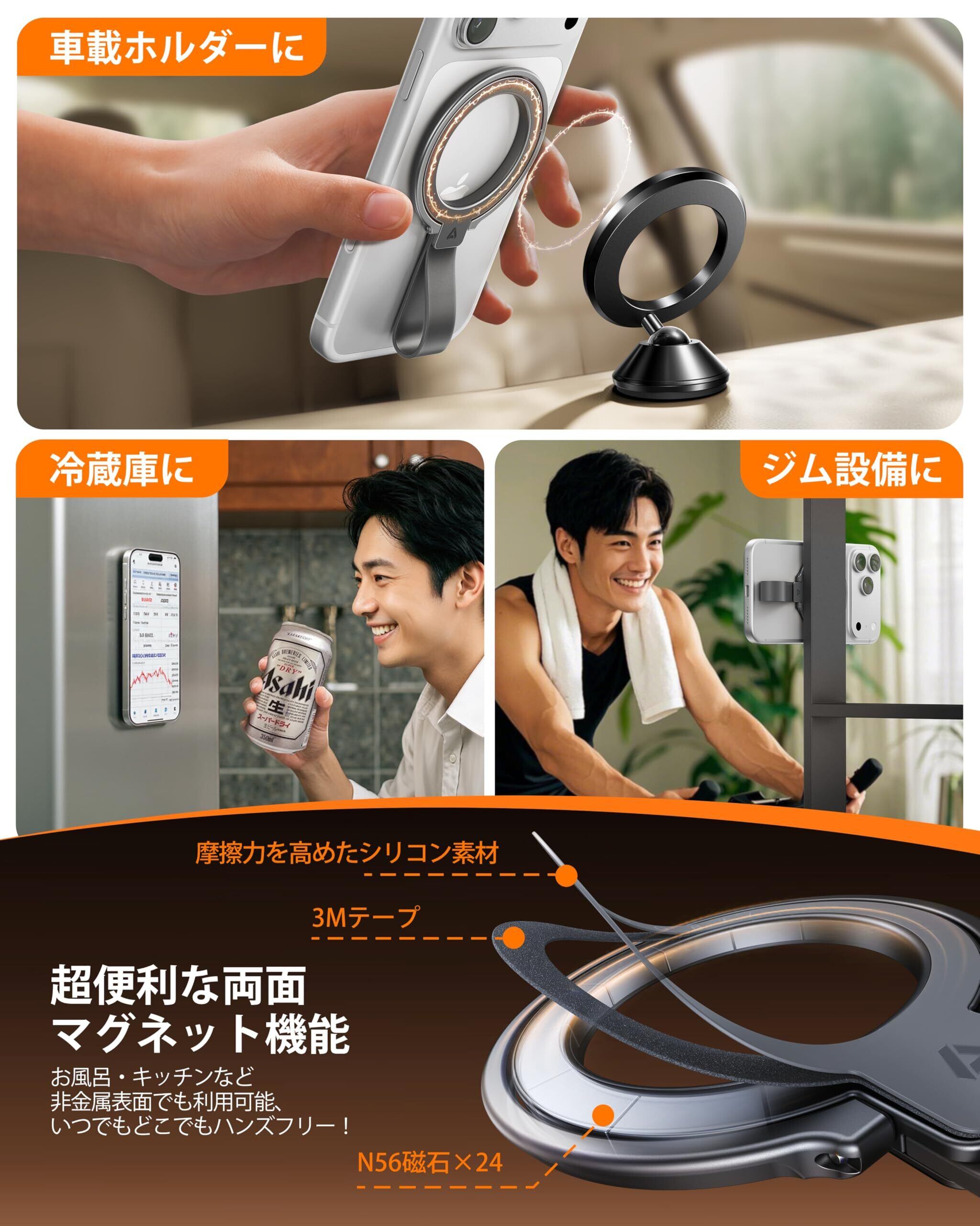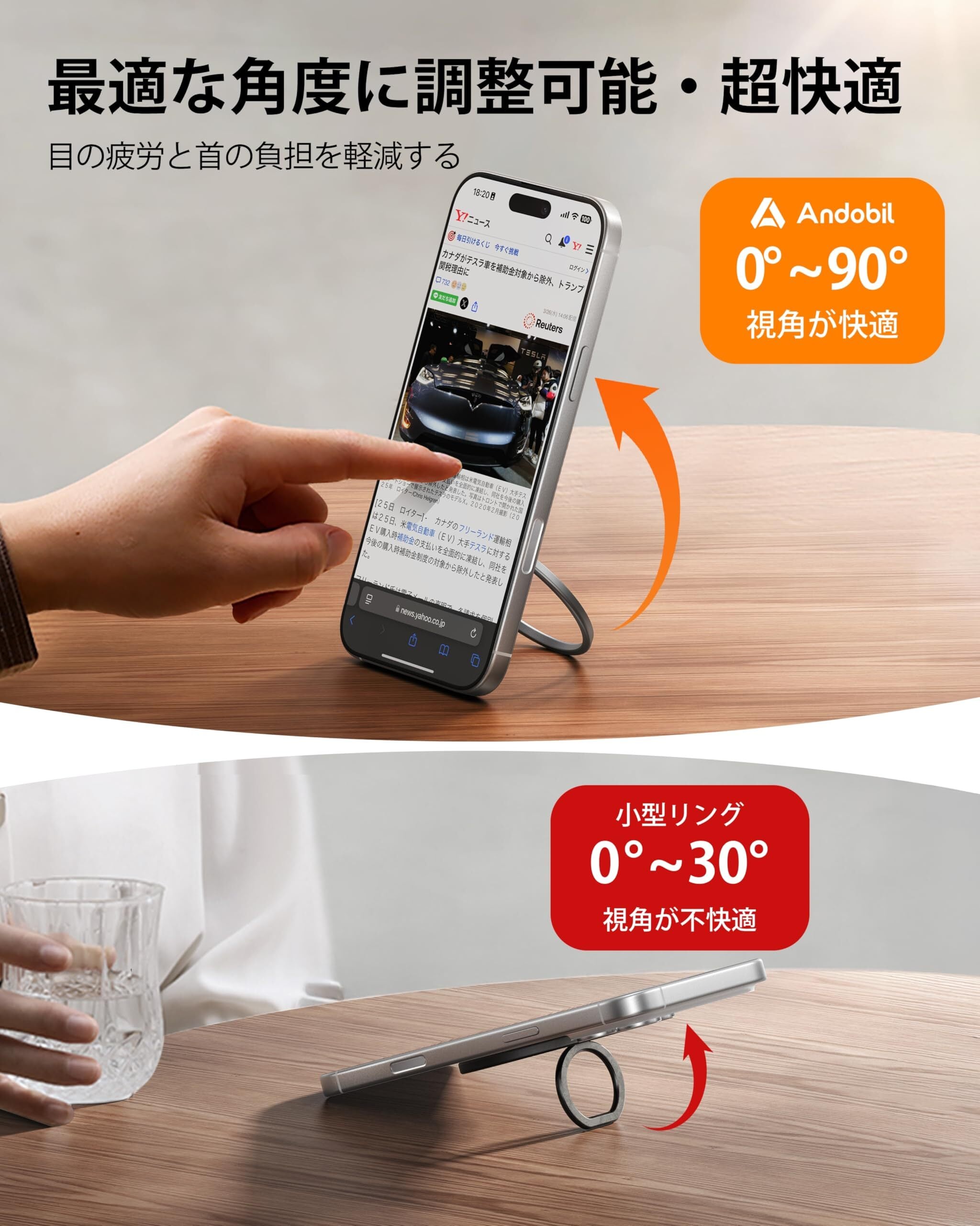 【2026最新型・MagStand Pro】 Andobil スマホリング Magsafe マグセーフ リング 【横縦両立機能特化& 超强磁力】 バンカーリング 両面 マグネット スマホ リング 360度回転 角度調整可 簡単着脱 マグネットリング 薄型 高級合金素材 携帯リング 磁石 iPhone 17 16 15 14 13 12 Pro Max Androidに対応 チタニウム色 | kki