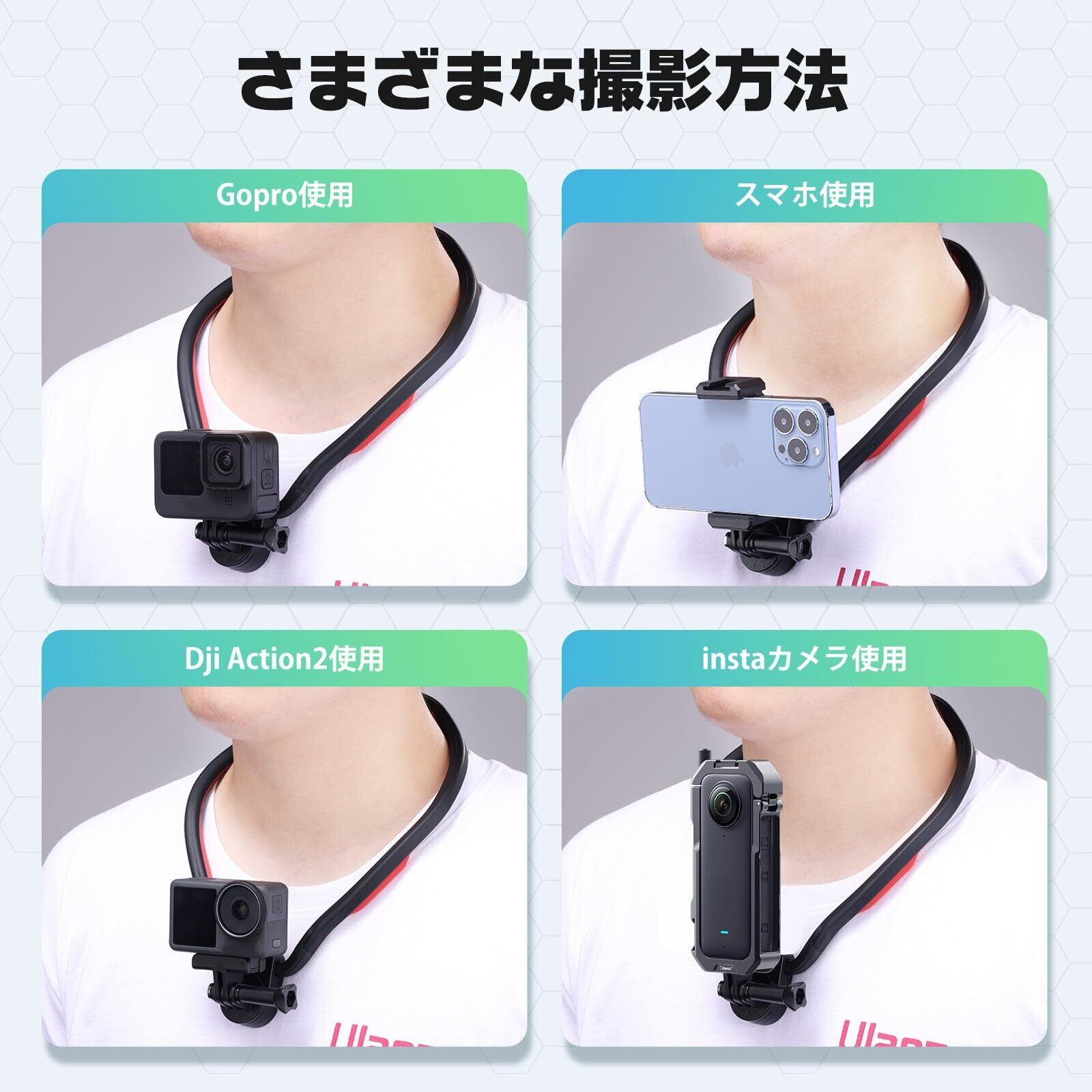 Ulanzi ネックレスマウント Gopro用 アクションカメラ首掛け スマホ首掛け POVマウント ロック式 落下防止 多角度調整可能 柔軟性 シリコン製 釣り用首掛け 軽量 便利 旅行 登山 徒歩 vlog osmo action4用/3/hero 13に対応/12/11/10/insta x5 x4 x3に対応 Go-Quick II互換 磁気吸引 | kki