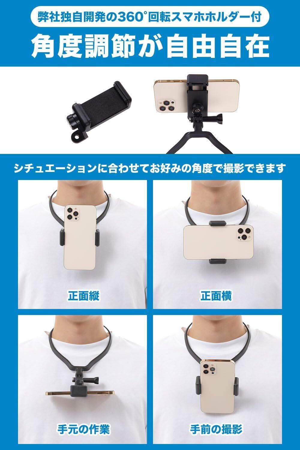 【日本国内大手メーカー素材に改良 ネックレス式マウント総販売数10万個突破 】 (ActyGo) GoPro/スマホに適合 アクセサリー 【驚きの】 その他 アクションカメラ使用可 落下防止用ストラップ付 独自開発360°回転スマホホルダー 縦横撮影角度調節可 | kki