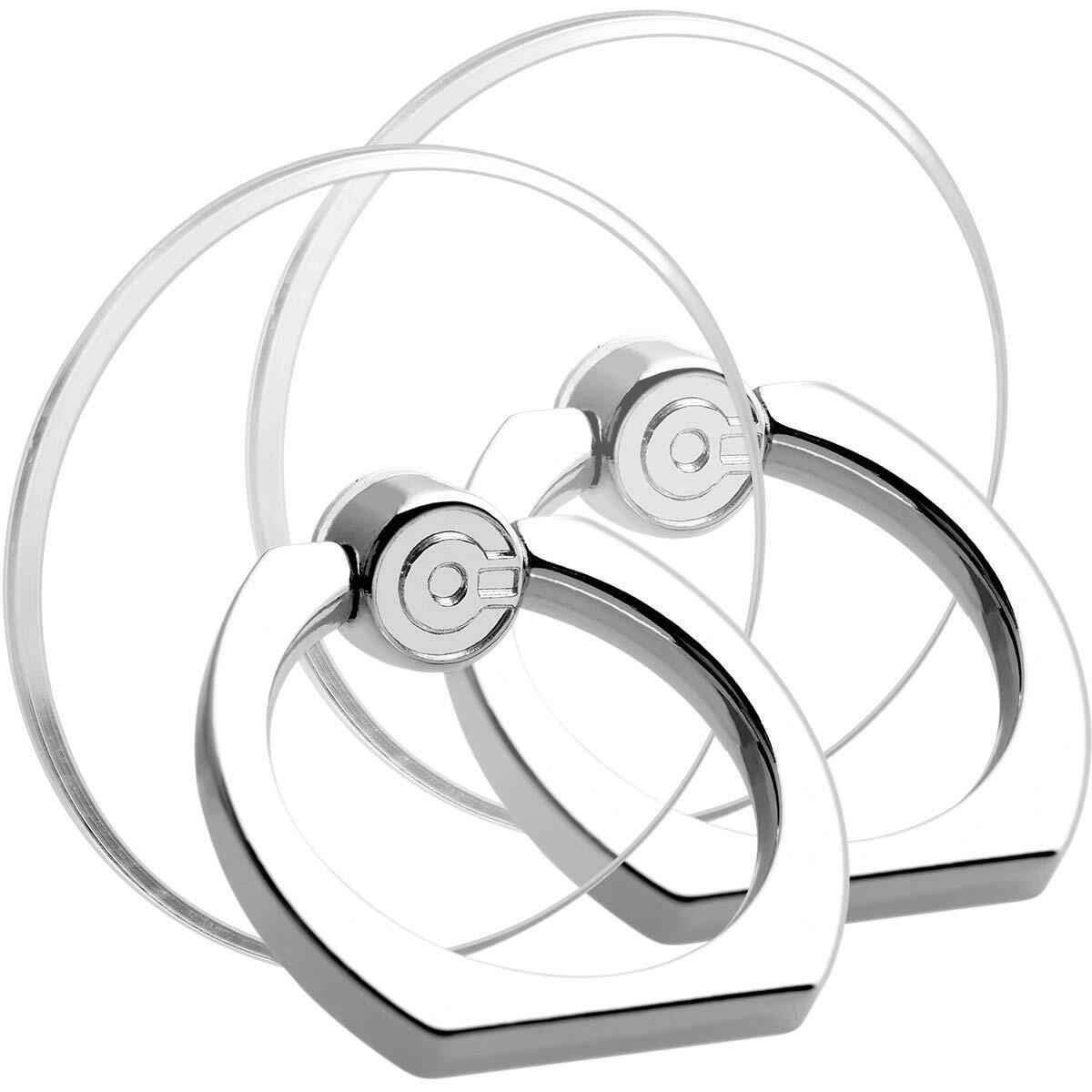 【2個入り】スマホリング 透明 丸型 携帯 リング ホールドリング ホルダー 落下防止 スタンド iPhone/Android各種他対応 (丸型2個シルバー)