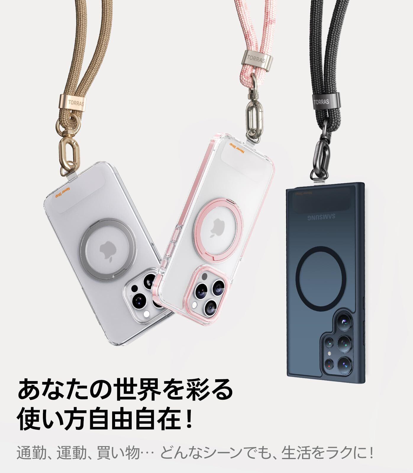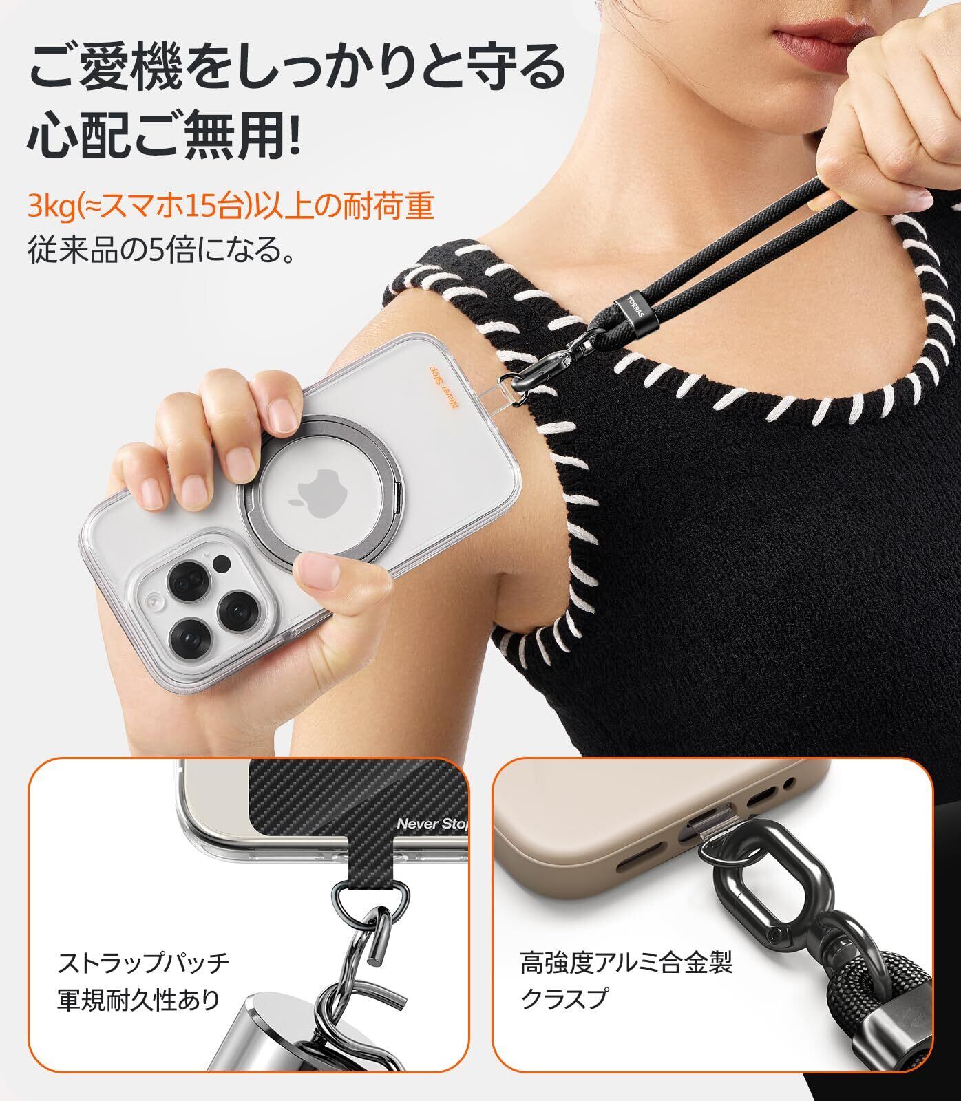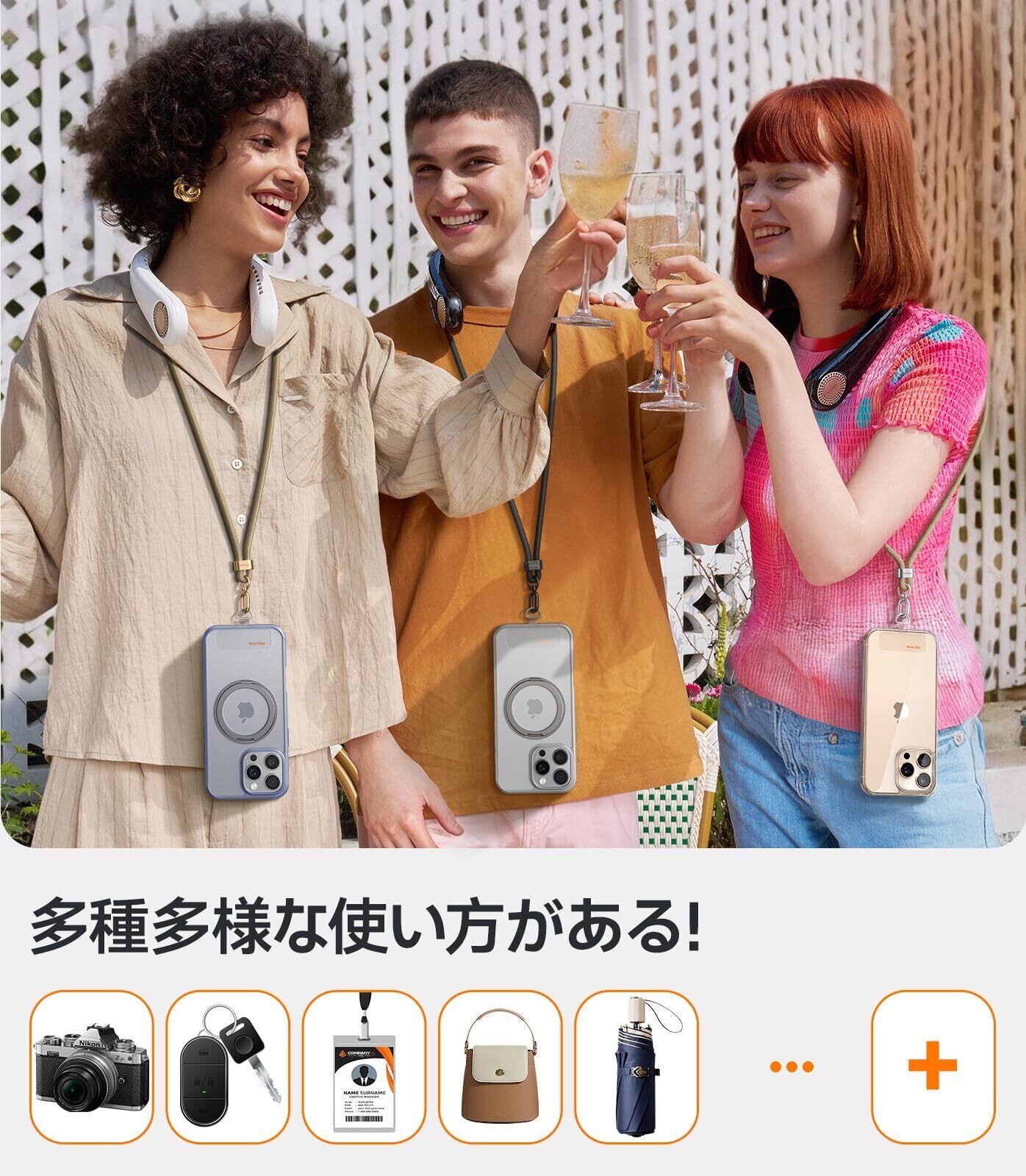 【外出が身軽に・丈夫さ】スマホストラップ iPhone 17 シリーズにも対応 2025新開発 お出かけ必須 ショルダー 首掛け ストラップ 長さ調節可能 タグパッチ 2枚入り ネックストラップ ショルダー スマホ iPhone 17 16 15 14 pro max 用 Android xiaomi galaxy 用 全機種対応 斜め掛け 落下防止「LoopGo Flex」 ブラック | kki