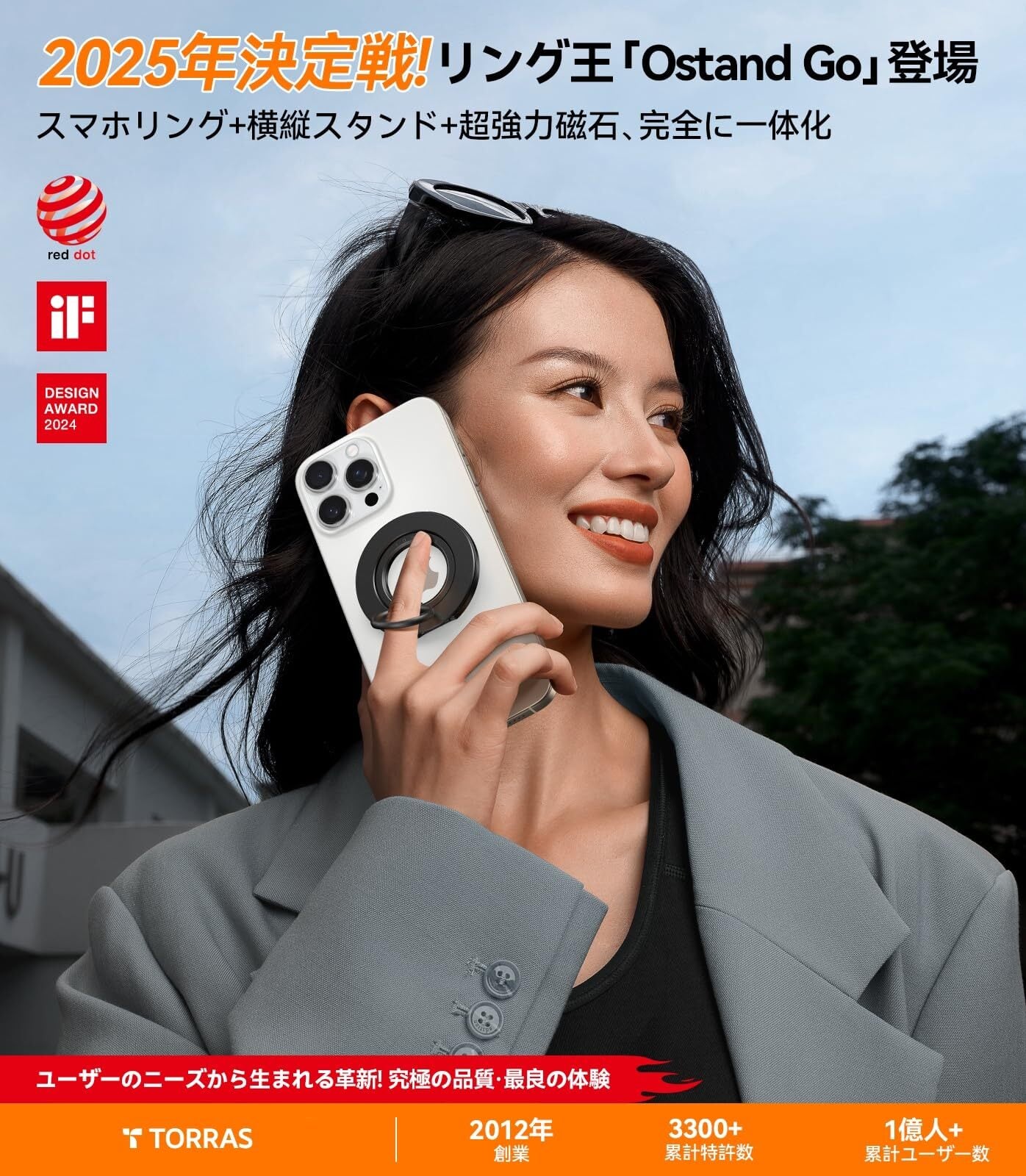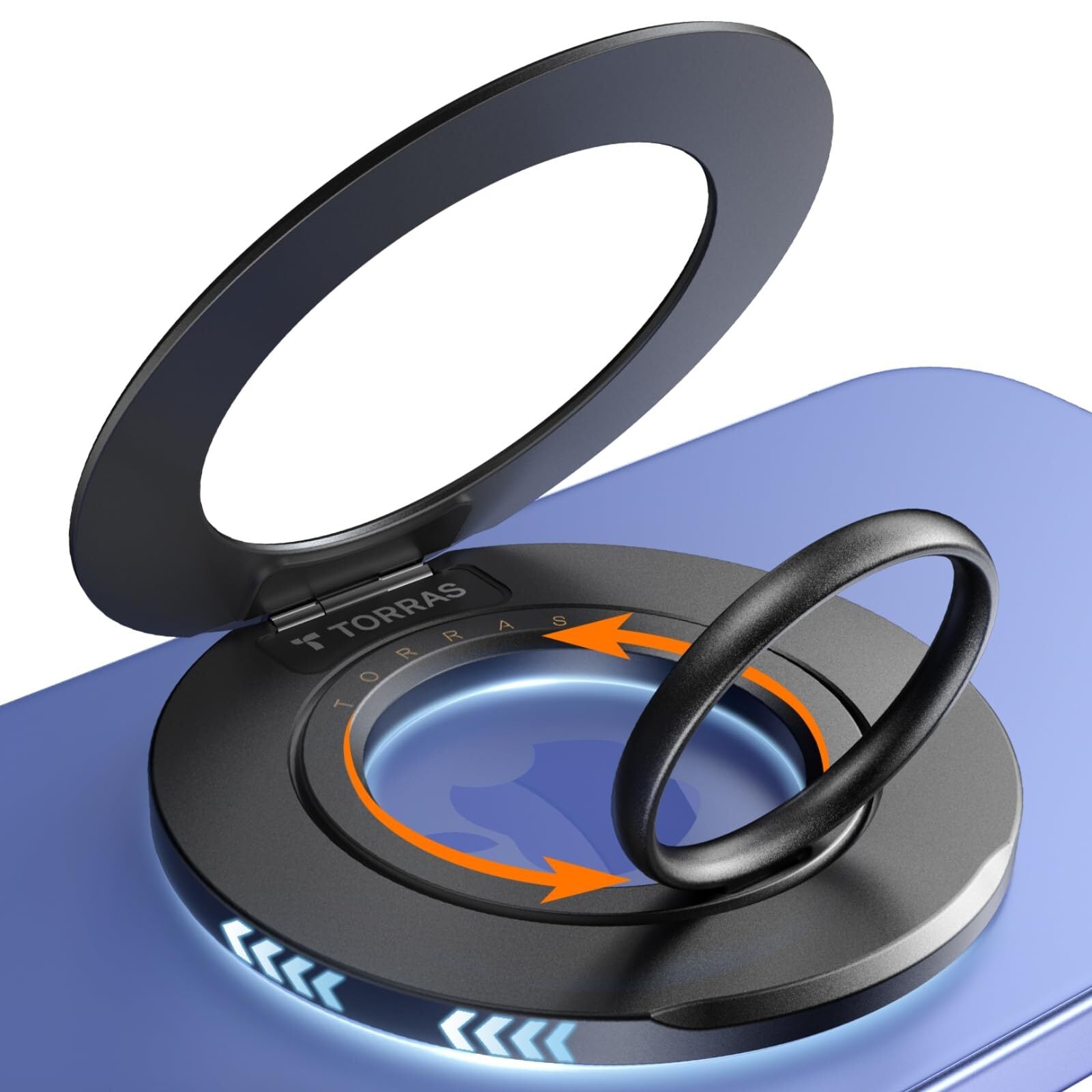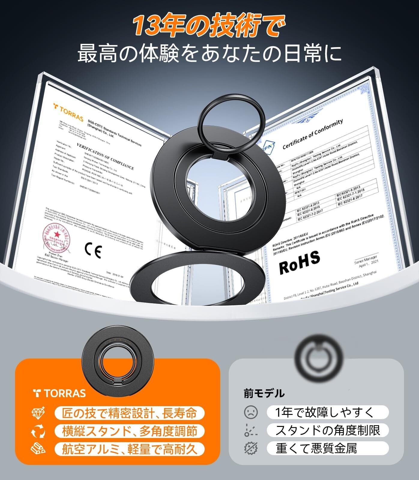 【2025新型・2in1 スマホリング】 TORRAS MagSafe対応 リング 360度回転 バンカーリング スマホスタンド 縦横両用 マグネット リング iPhone17/16/15/14/13/12用 薄型 マグセーフ 携帯リング 強力磁石 落下防止 メタルリング付き「Ostand Go」 マットブラック | kki