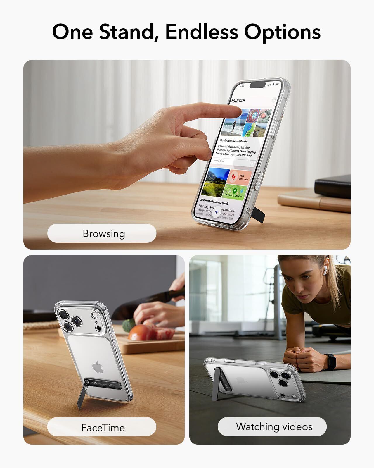 ESR スマホ キックスタンド メタル 縦置き 横置き対応 角度調節可能 iPhone Air 17 16e 16 15 14 13 12、Google Pixel 10、Samsung、Android対応 - ブラック | kki