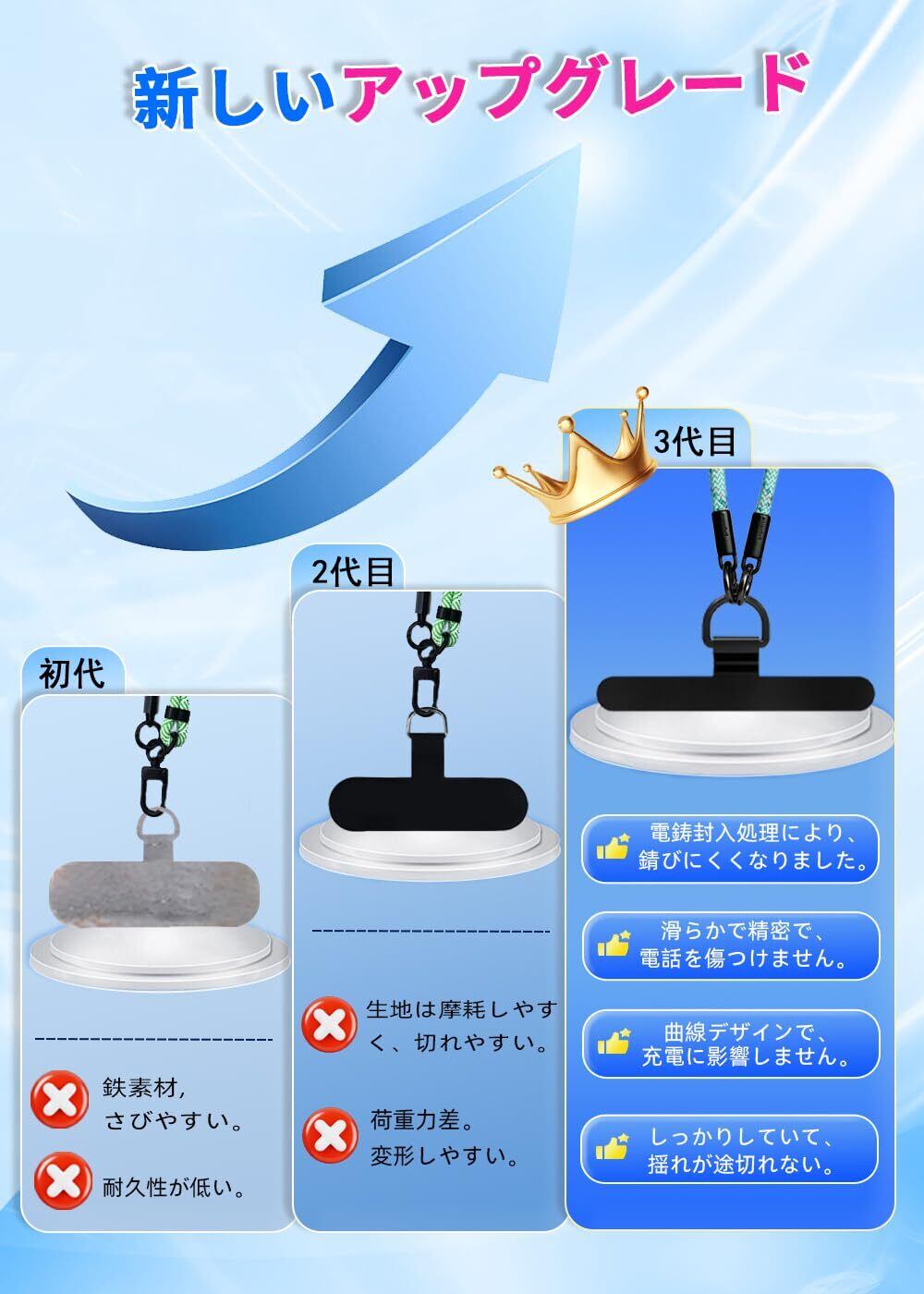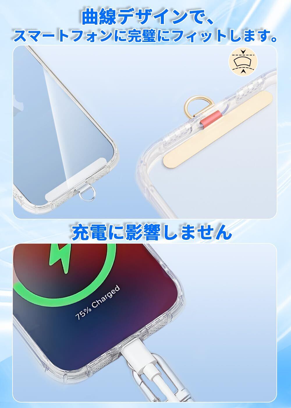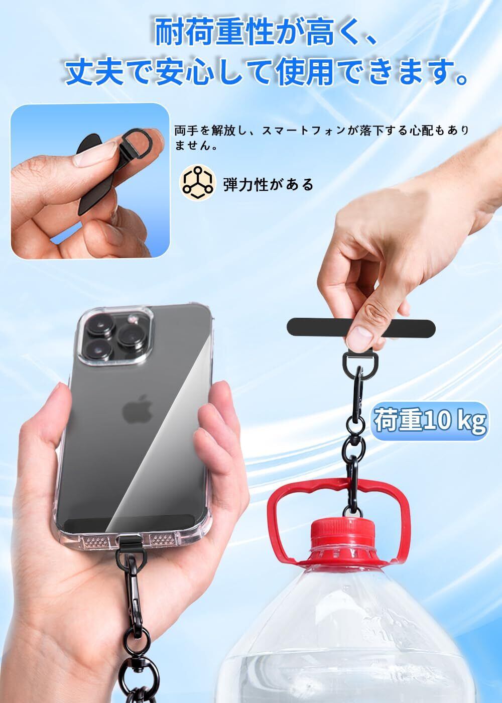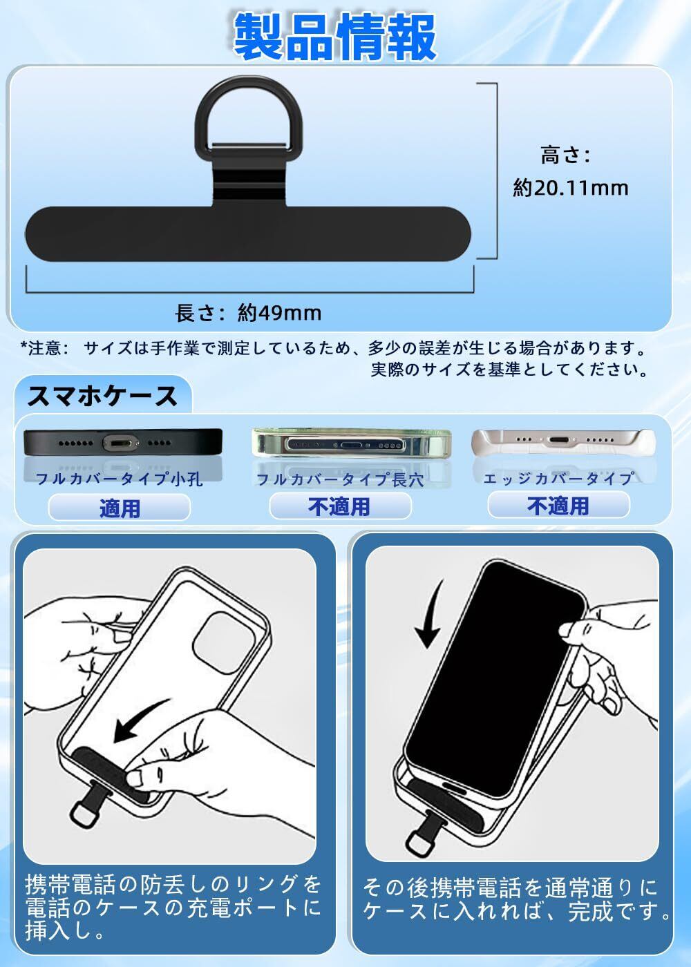 スマホ ストラップホルダー 極薄0.2mm / 金属製/浮きなし曲がれ設計 全機種対応 傷防止仕上げ 丈夫10kgまでの荷重量 充電影響なし 落下防止 金属製タグパッチ 軽量 携帯ストラップホルダー 落下防止 (ブラック) | kki