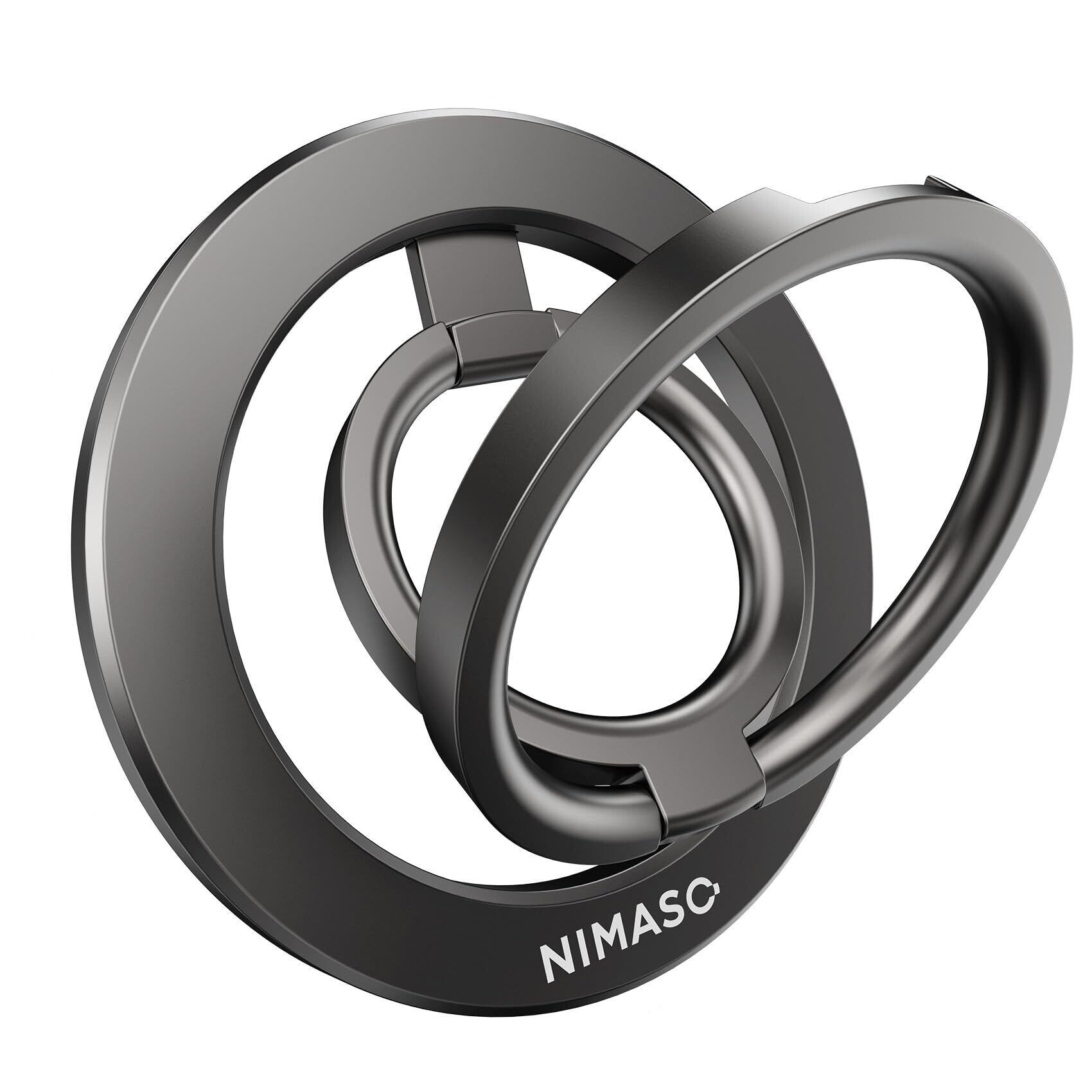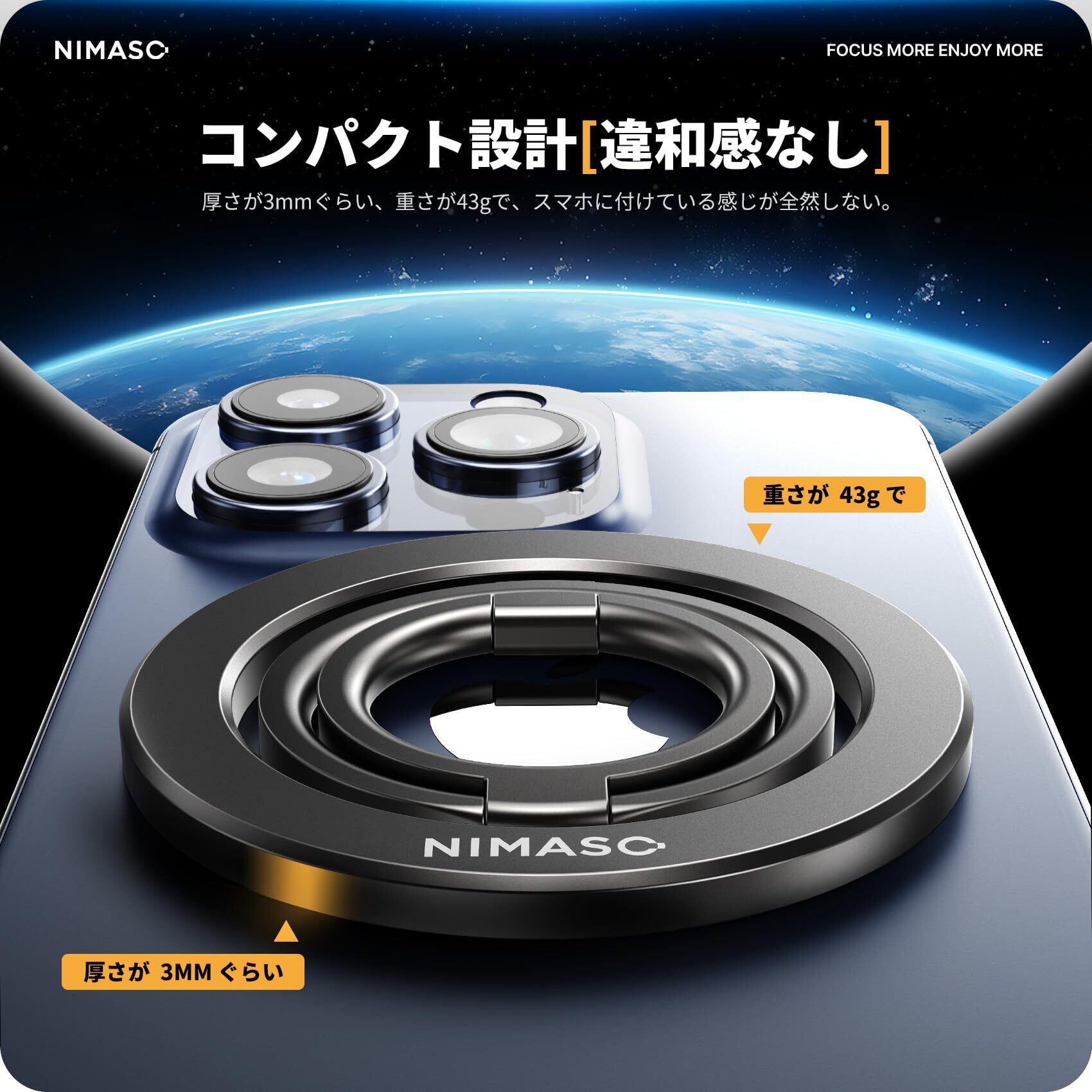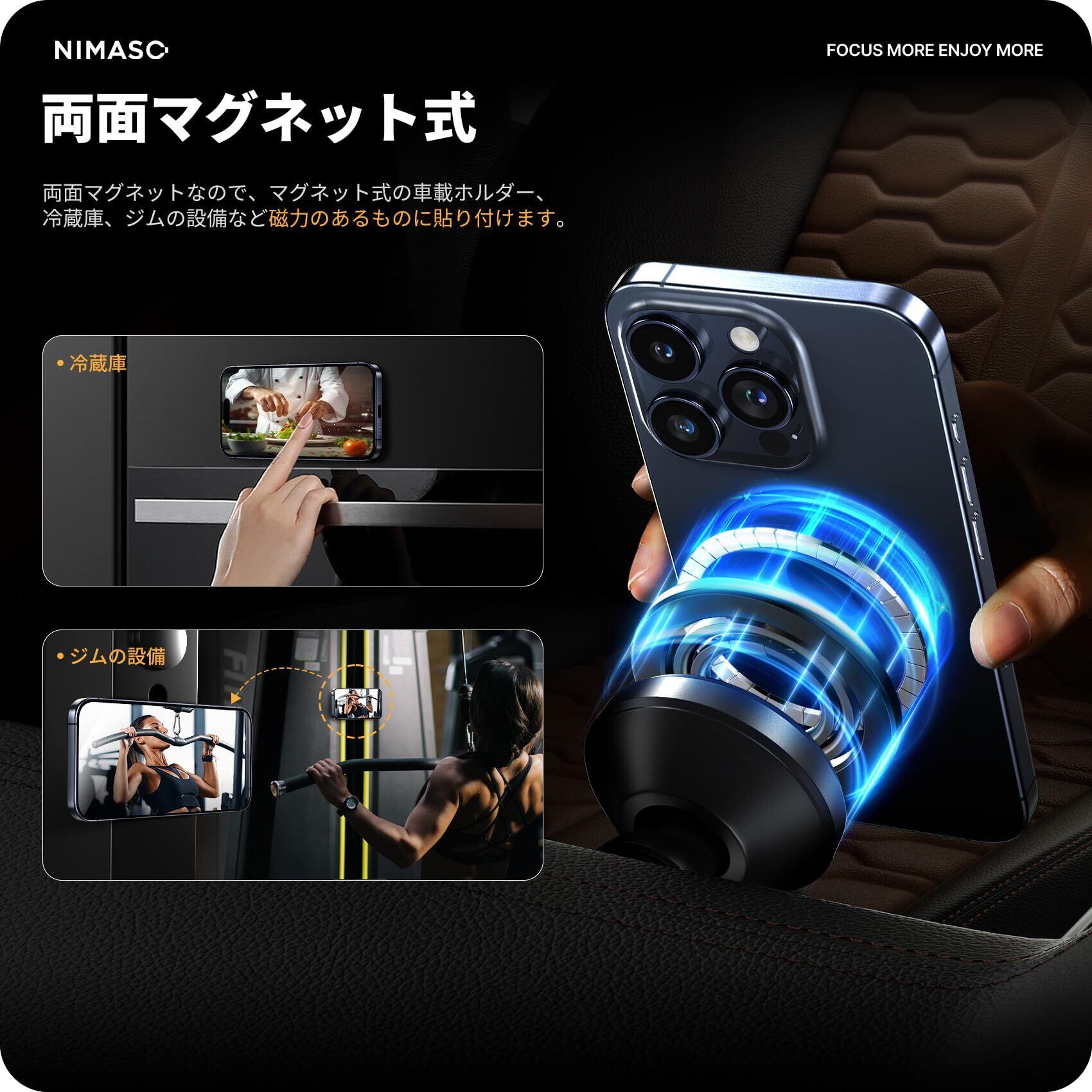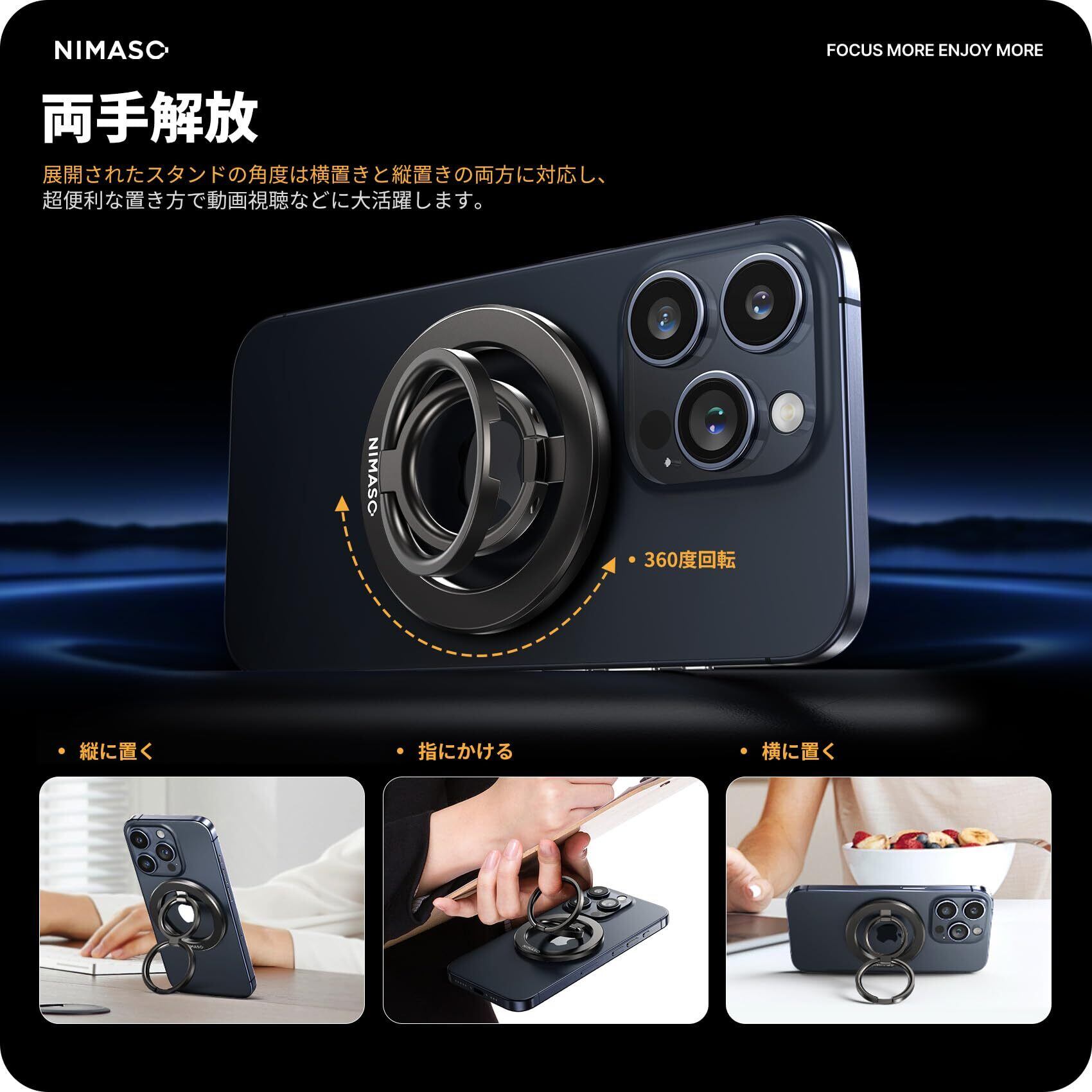 NIMASO スマホリング MagSafe対応 スマホリング マグネット式 スマホ落下防止 角度調整可能 金属リング付き iPhone17/16/15シリーズ、Androidなど全機種対応(ブラック) | kki