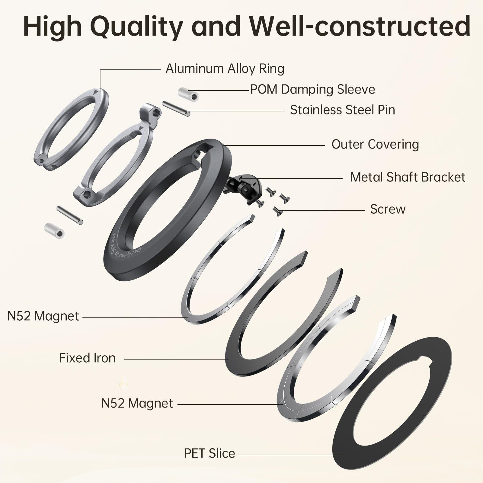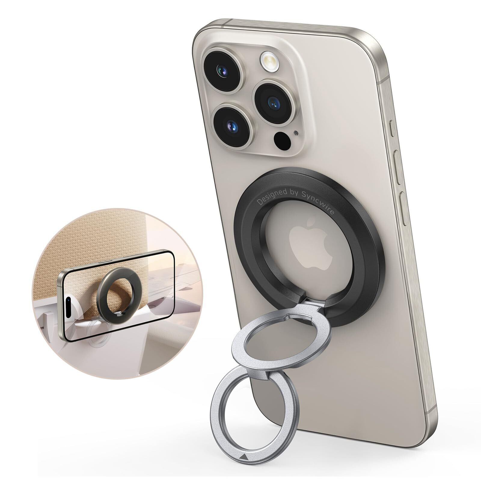 【令和超强磁力】SYNCWIRE MagSafe リング - 両面マグネットリング - スマホリング、マグセーフ リング マグネット バンカーリング 超強力、角度調整可能、簡単取り付け・取り外し、スマホスタンド機能、iPhone 16 Pro/16 Pro Max/16 /15/14/13/12などに対応、全Android機種対応、2枚のメタルリング付属 | kki