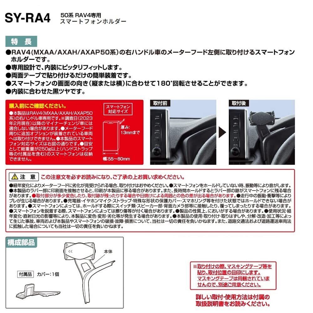 槌屋ヤック(Tsuchiya Yac) 車種専用品 トヨタ 50系 RAV4 専用 スマートフォン ホルダー ブラック SY-RA4