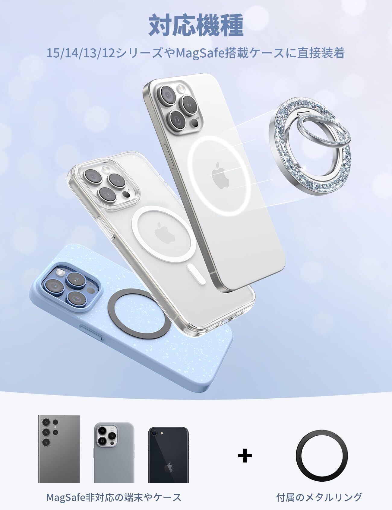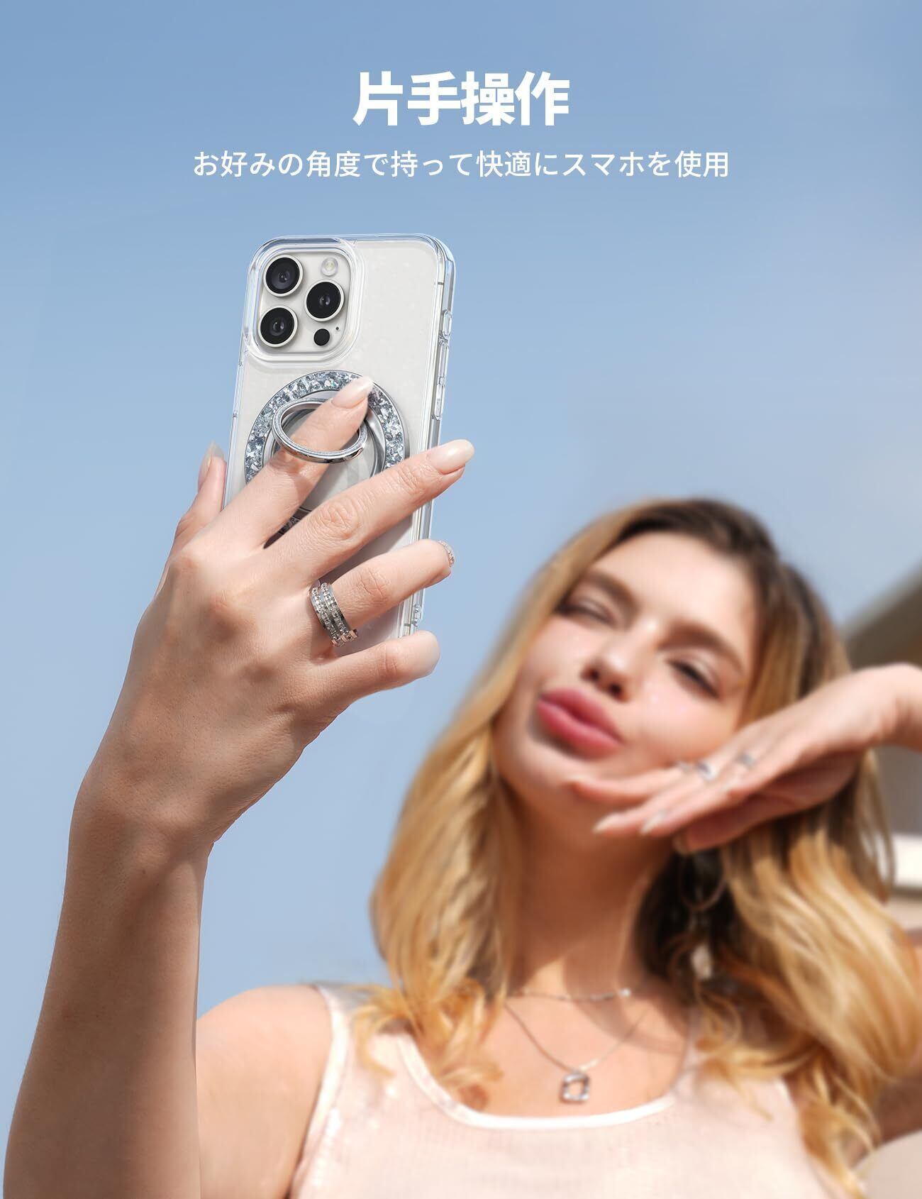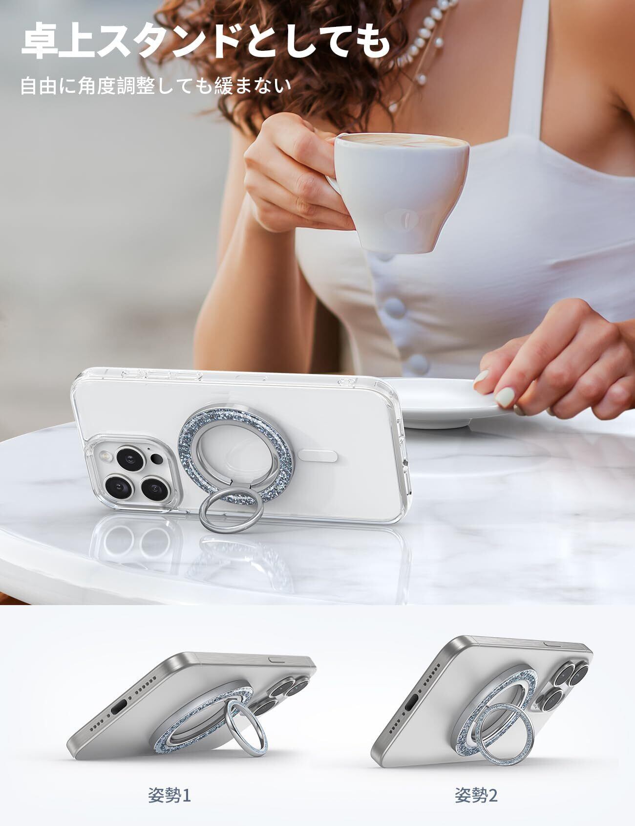【キラキラ・カチカチ回転音】 Lamicall magsafe対応 スマホリング : マグセーフ バンカーリング 携帯 リング ホルダー iphone リング 機械感360度回転 マグネット 磁石 磁気増強 メタルリング付き 落下防止 iPhone 2025 17 17 Pro Air 16e 16 Plus pro max iphone 15 14 13 Android に対応 シルバー | kki