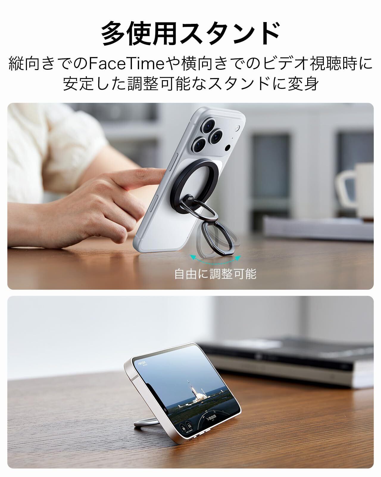 ESR スマホリング マグネット Magsafe リング スマホ落下防止 HaloLock マグセーフ 対応 スマホリングホルダー 指リング バンカーリング 磁石 スマホグリップ 角度調節可能 スマホスタンド 折り畳み iPhone Air 17 Pro Max 16e 16 15 14 13 12、Samsung、Pixel 10、Android全機種対応 メタルリング2個付き ブラック | kki