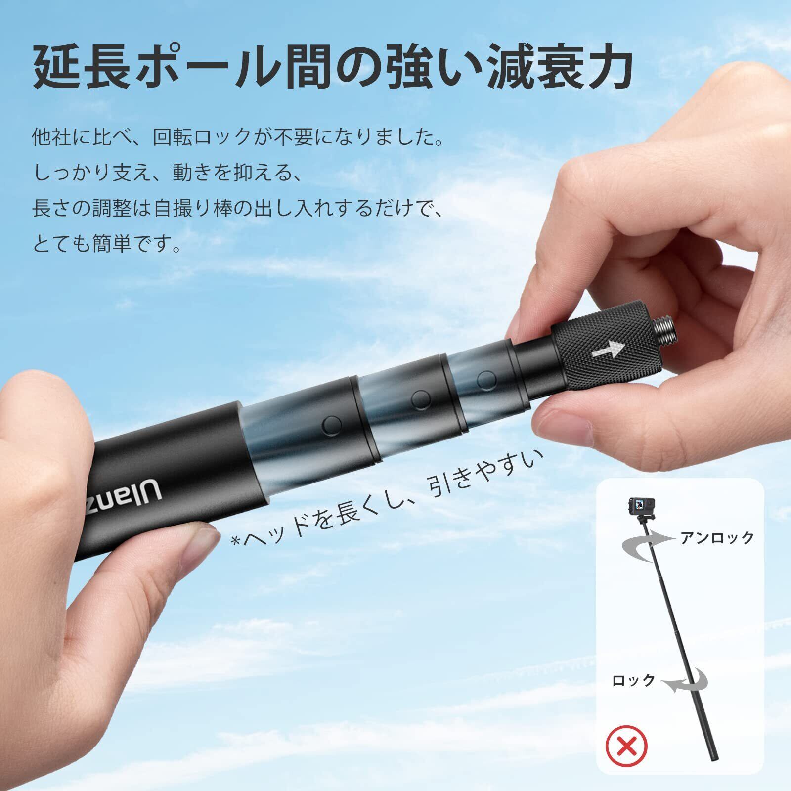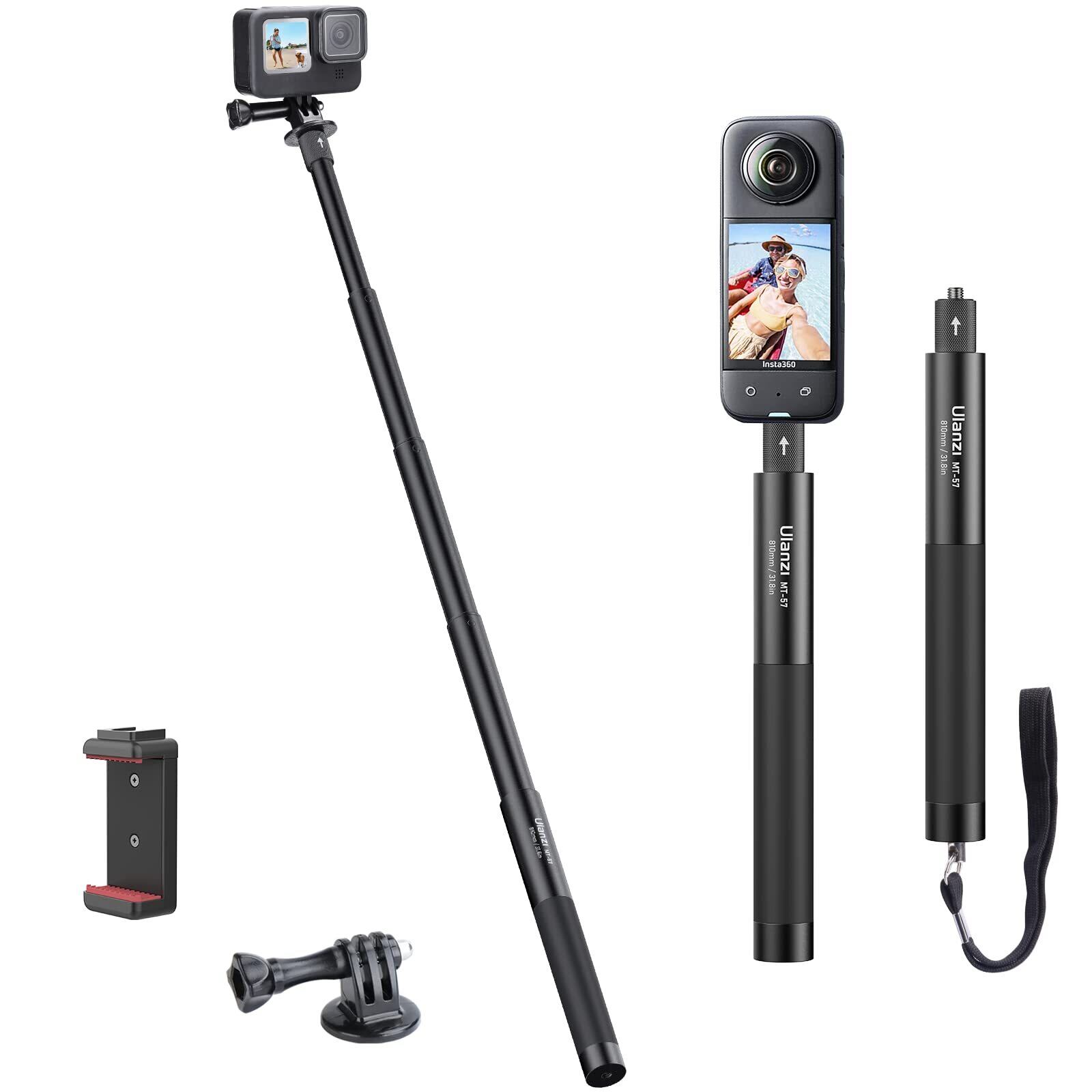 Ulanzi 81cm自撮り棒 アクションカメラ自撮り棒 目に見えない 1/4インチネジ 長さ21.5cm から81cmまで調節可能 5階伸縮 折りたたみ コンパクト アルミ製+シリコーン 超長 軽量 伸縮自由 持ち運び便利 hero13/12/11/10用 Insta360X5 X4 X3/ONE RSに対応 スマホホルダー付き セルフィー/撮影録画/動画鑑賞配信に最適 | kki