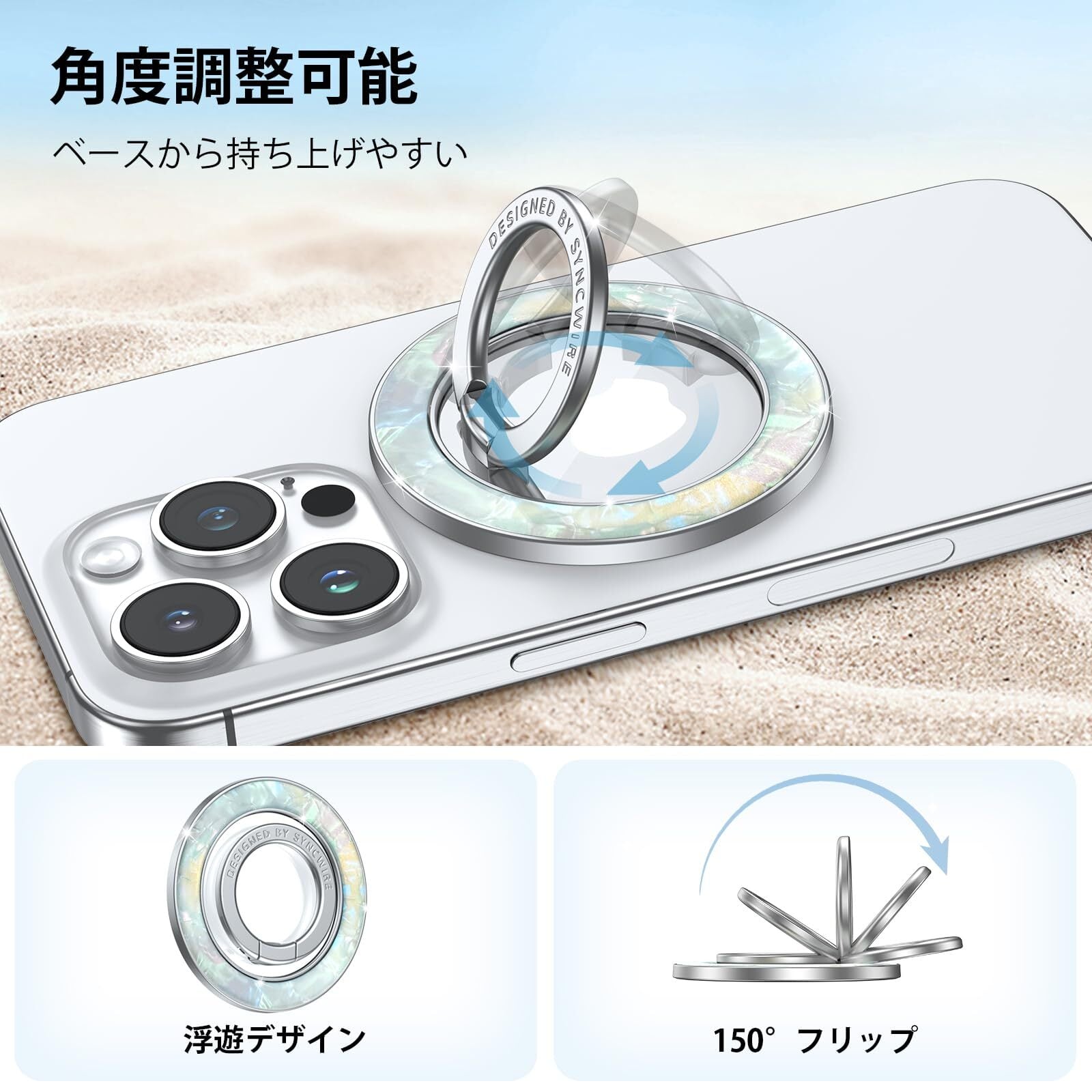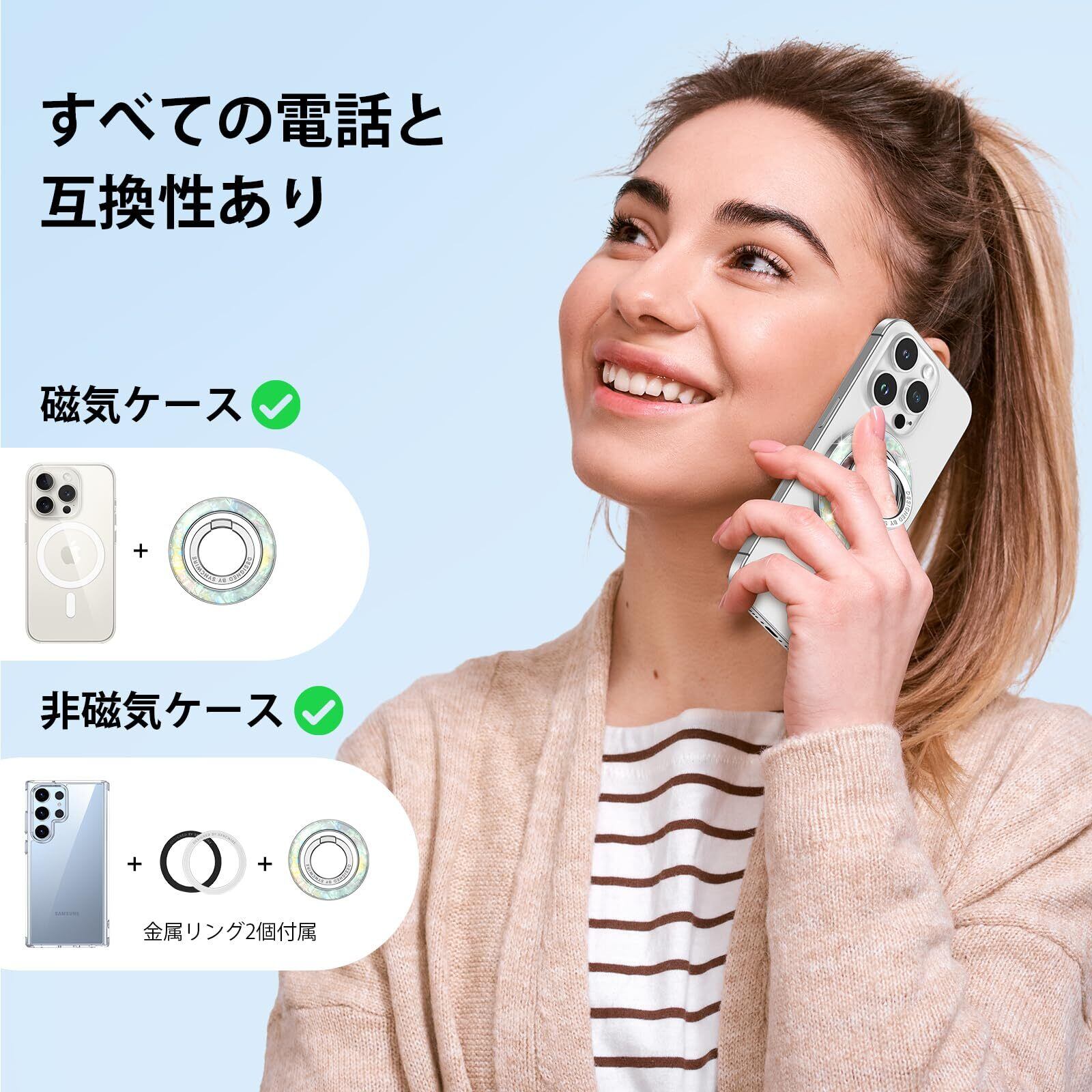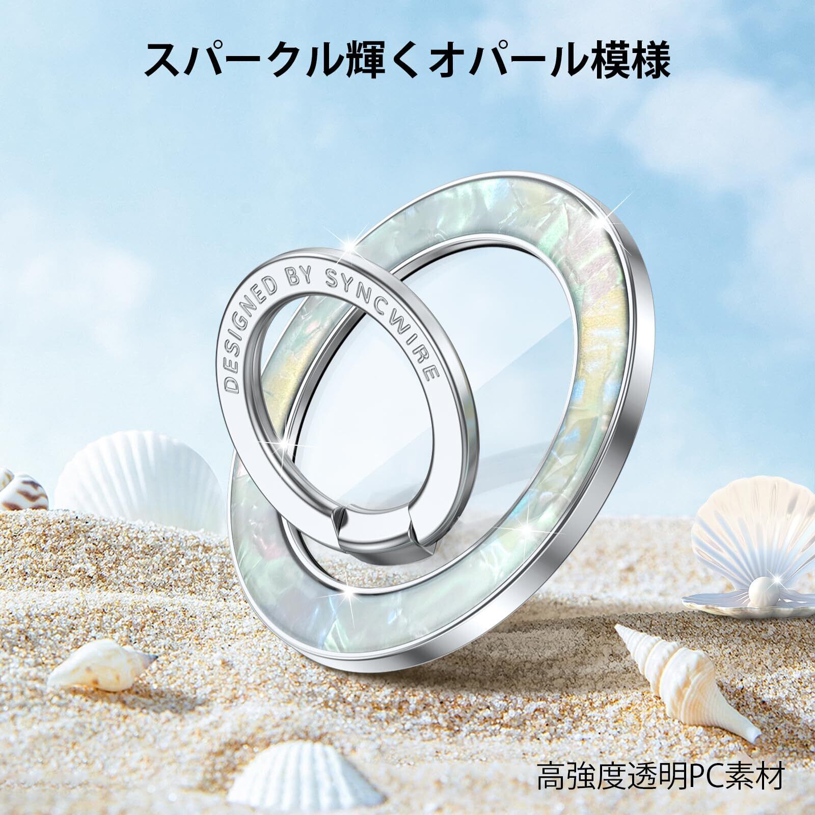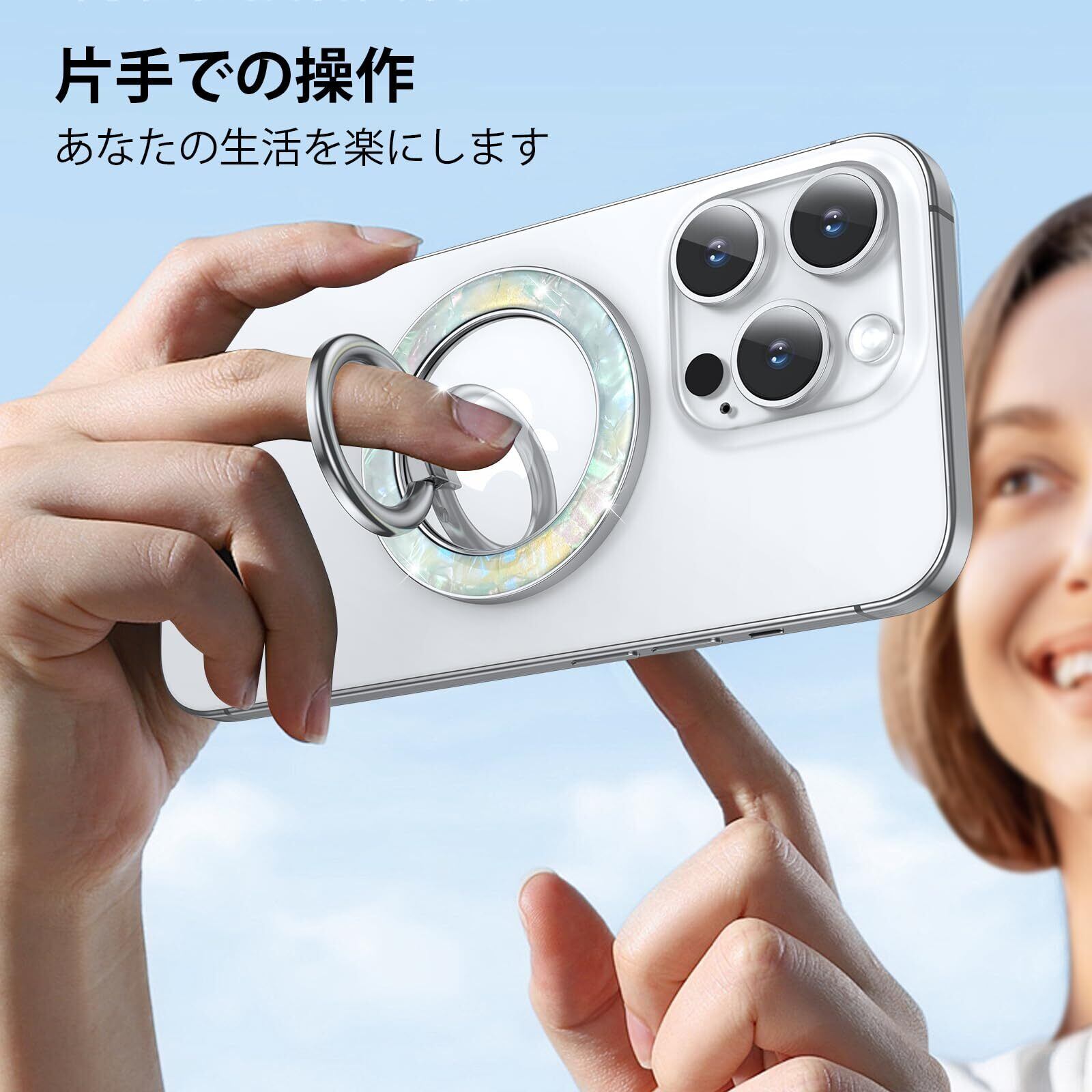 Syncwire MagSafe用マグネット式電話グリップ、カラフルなシェルマグネット式電話リングホルダー、360°回転フローティング効果携帯電話リングスタンドMagSafeリング、iPhone 15 Pro Max 14 13 &All-パール光沢 | kki