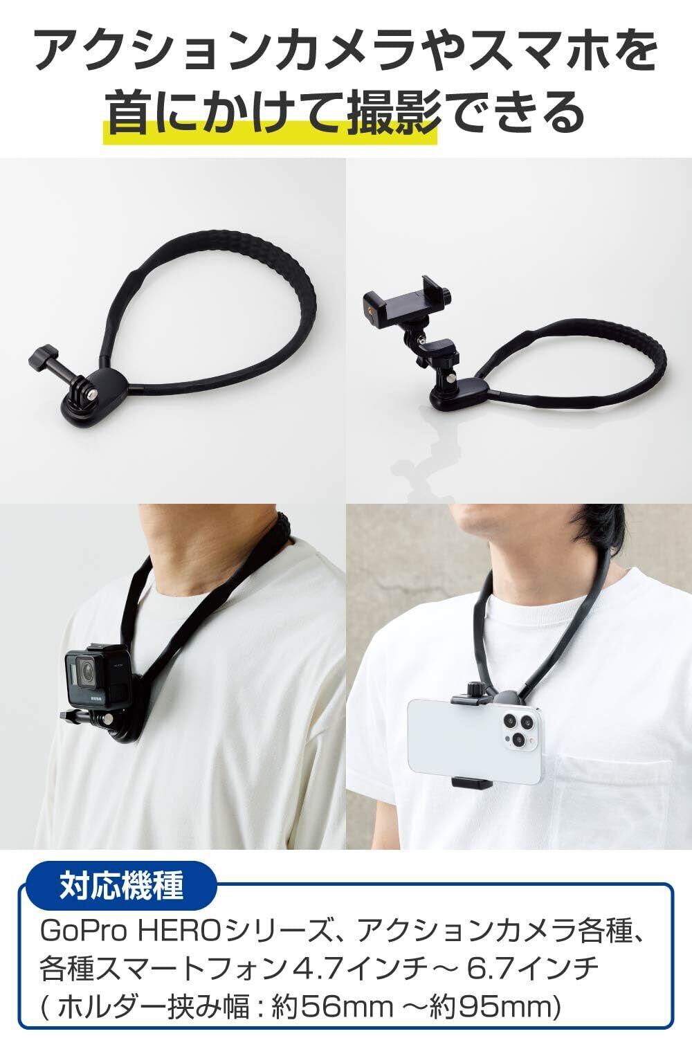 エレコム ネックレス式マウント GoPro マウント スマホ対応(4.7~6.7インチ) 角度調整可能 落下防止 ワンタッチ着脱 ハンズフリー ブラック AC-MBNE02BK