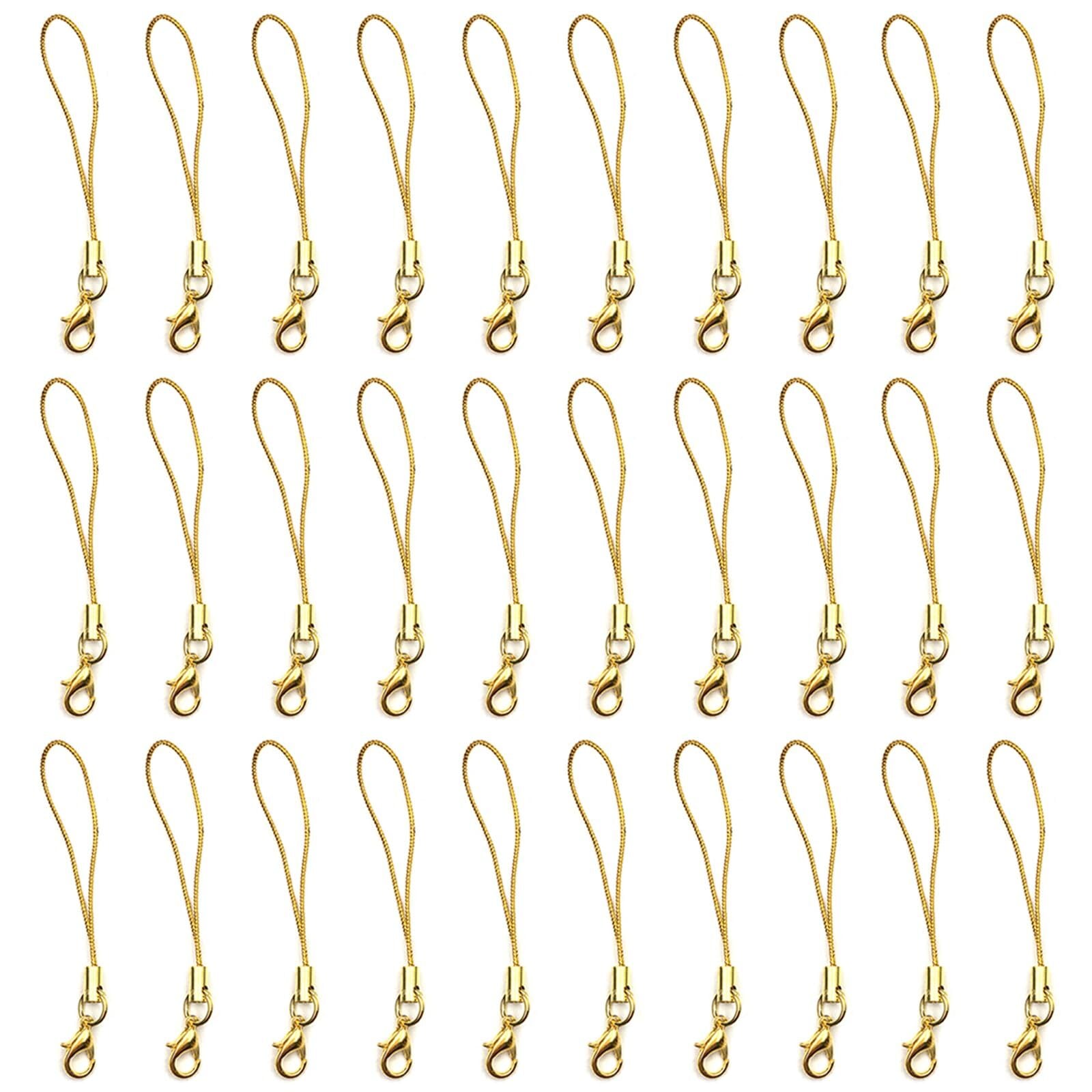 サムコス カニカン ストラップ フック付き パーツ 手つくり 自作 DIY 金具 使用 アクセサリ USBメモリ 携帯電話 スマホ バッグ (30本セット,ゴールド)