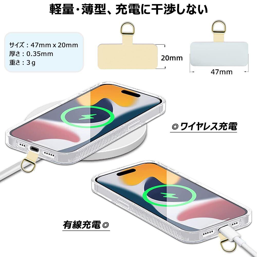 [Turkalla] スマホ ストラップホルダー 2枚入り【革新版 極薄0.35mm・ステンレス製・傷防止仕上げ】スマホストラップ 金属製タグパッチ 携帯ストラップホルダー 破損・劣等化なし 軽量 薄型 10㎏までの荷重量 全機種対応 充電影響なし(ゴールド) | kki