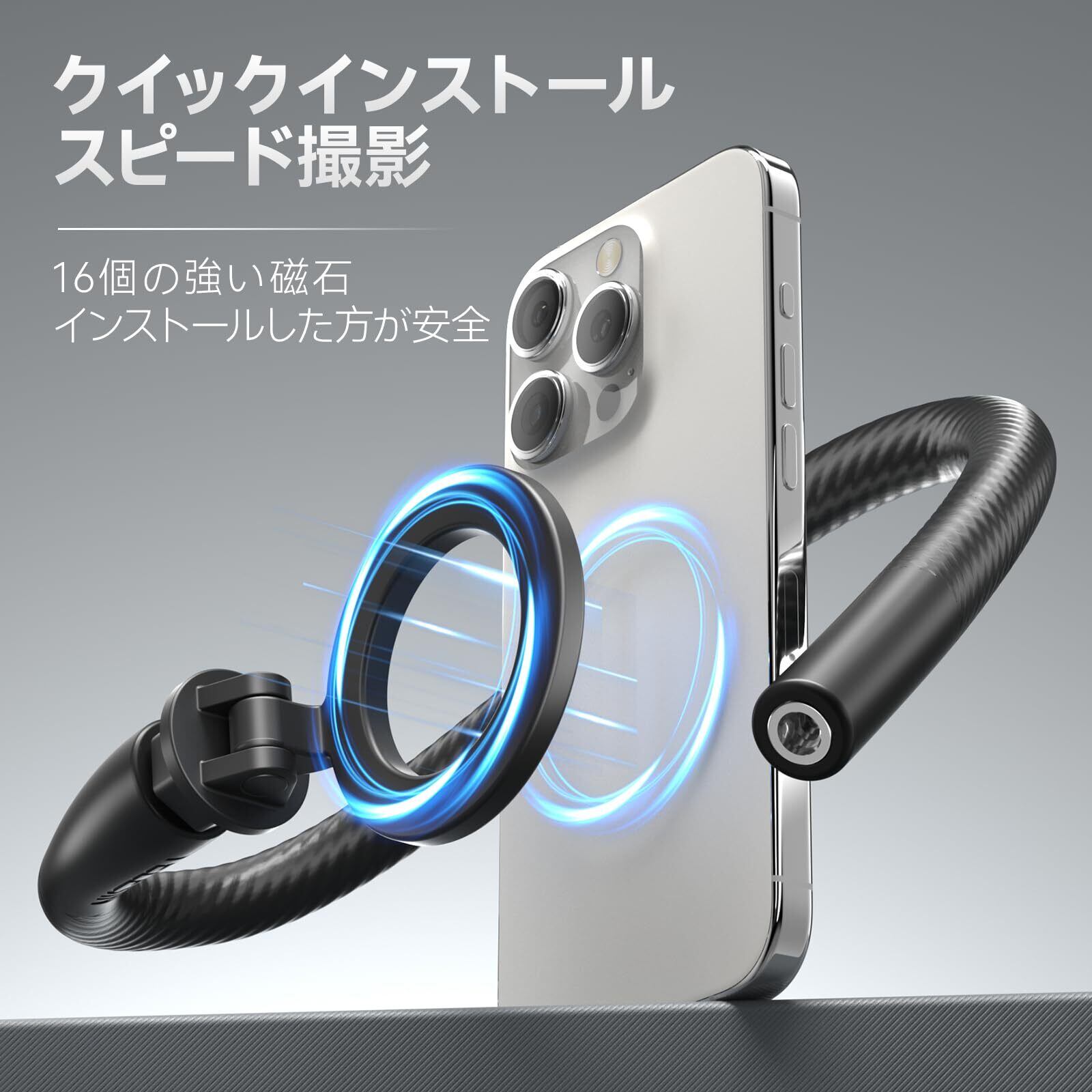 TELESIN マグネット スマホスタンド 撮影 マウント フレキシブル 万能 スマホ アーム 自撮り棒 360度回転 自由調節なグースネック カメラアクセサリー バイク・オートバイクリップマウント スマホ三脚 iPhone/Android/Go pro カメラスタンド 対応 | kki