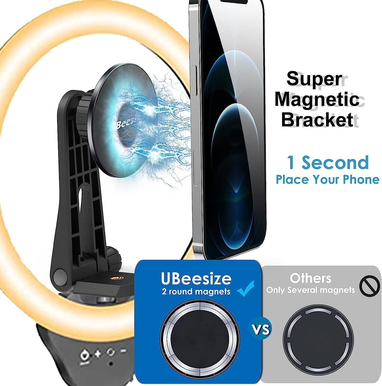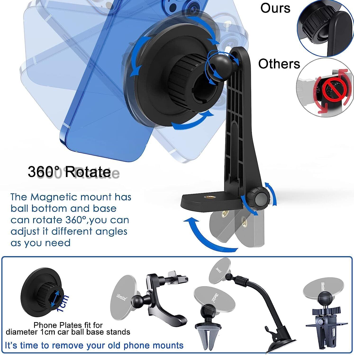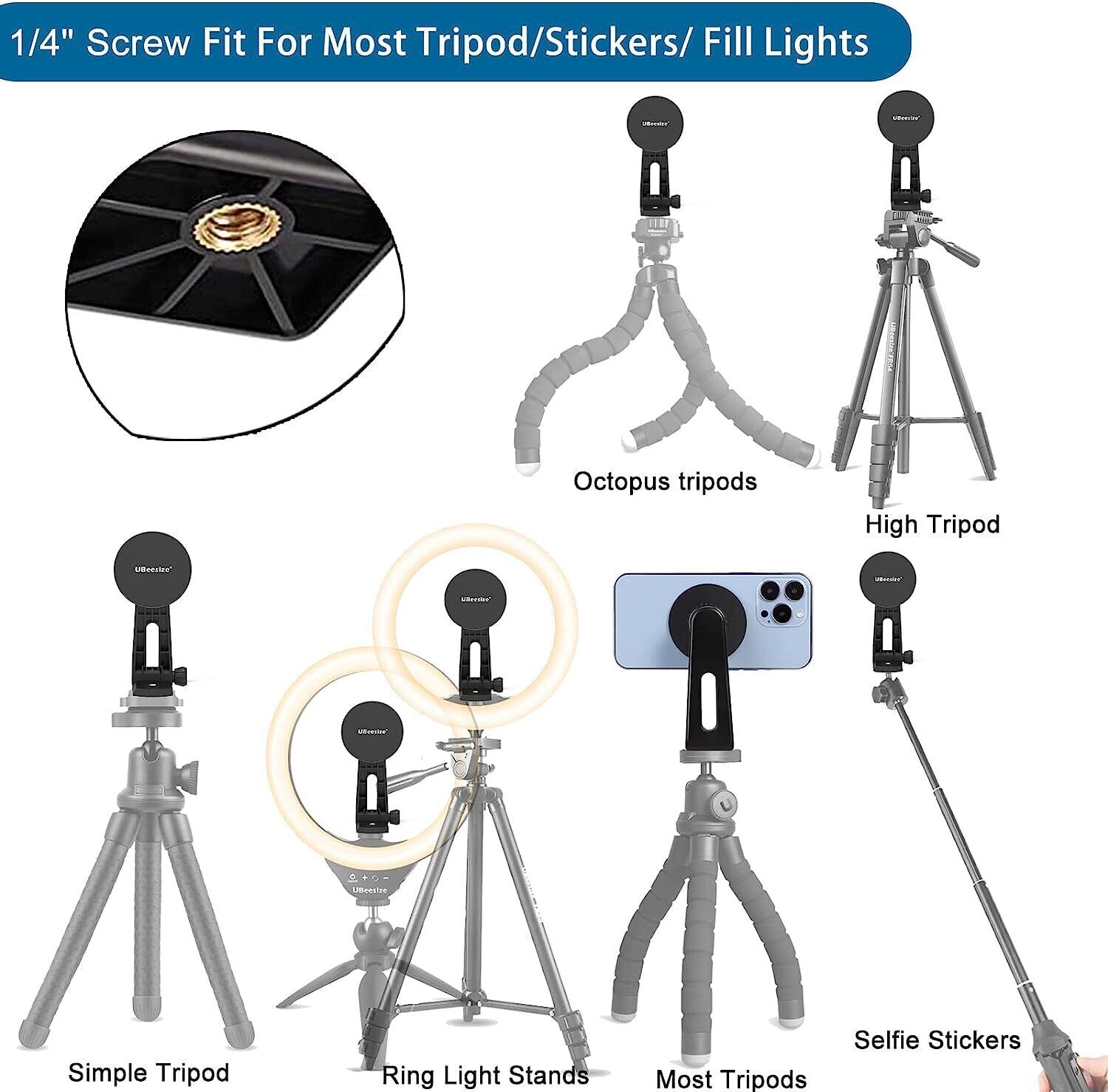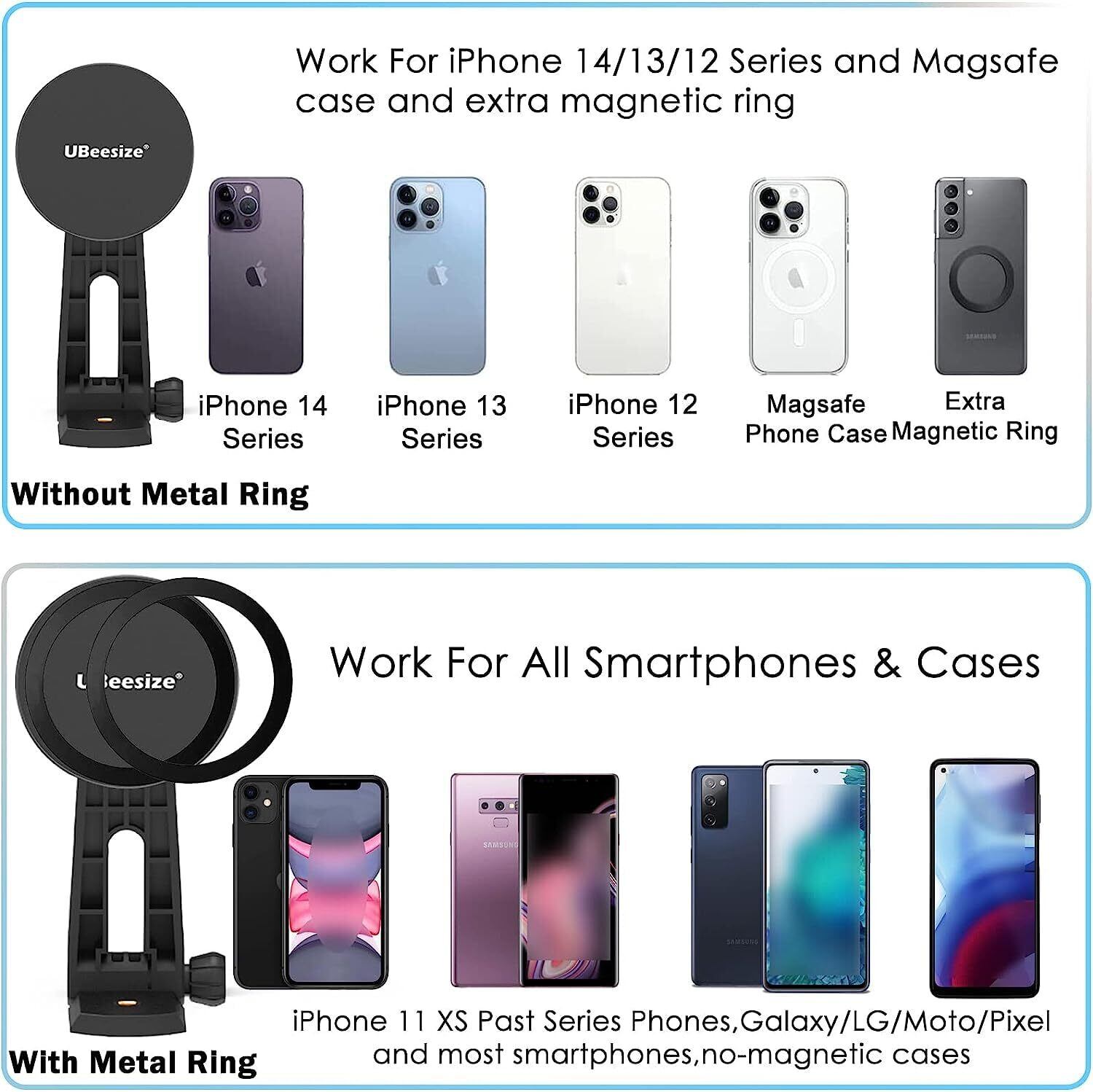 UBeesize 三脚マウント MagSafe用 スマホクリップ 三脚ホルダー マグネット三脚ホルダー 超強力磁力 360度回転 iPhone15/14/13/12シリーズ&すべてのAndroid適用 三脚 マグネット 三脚/カメラ対応 コールドシュー付き アクセサリー マグネットリング2枚付き ケース対応 | kki