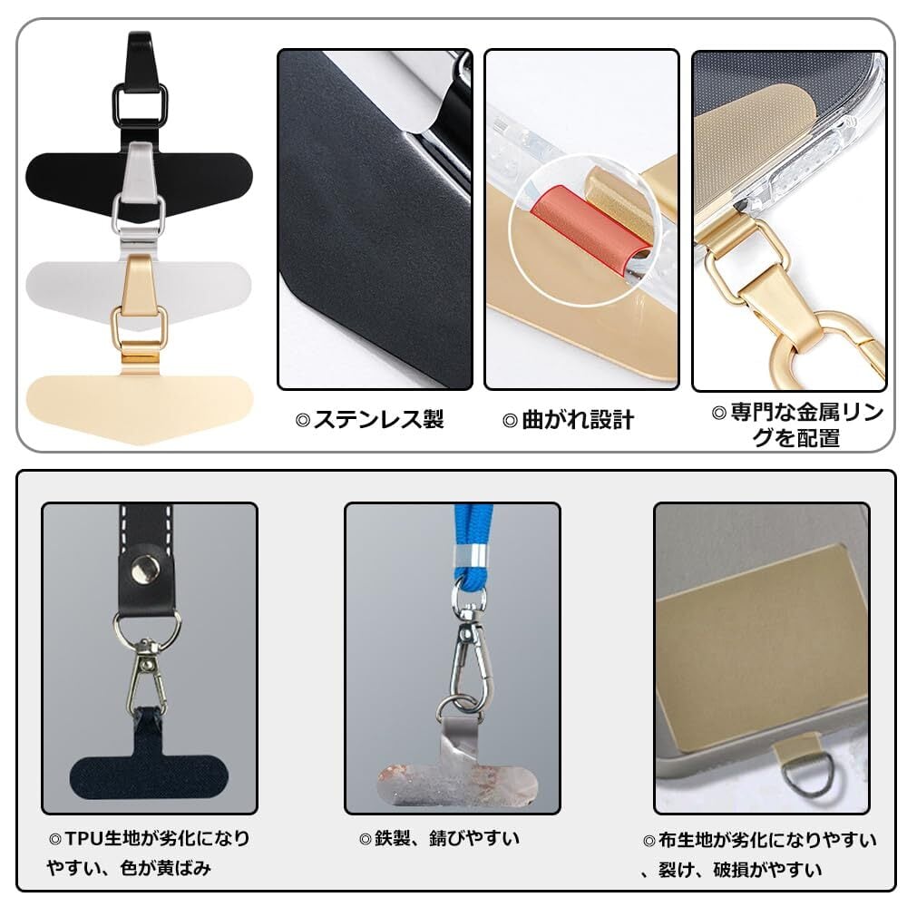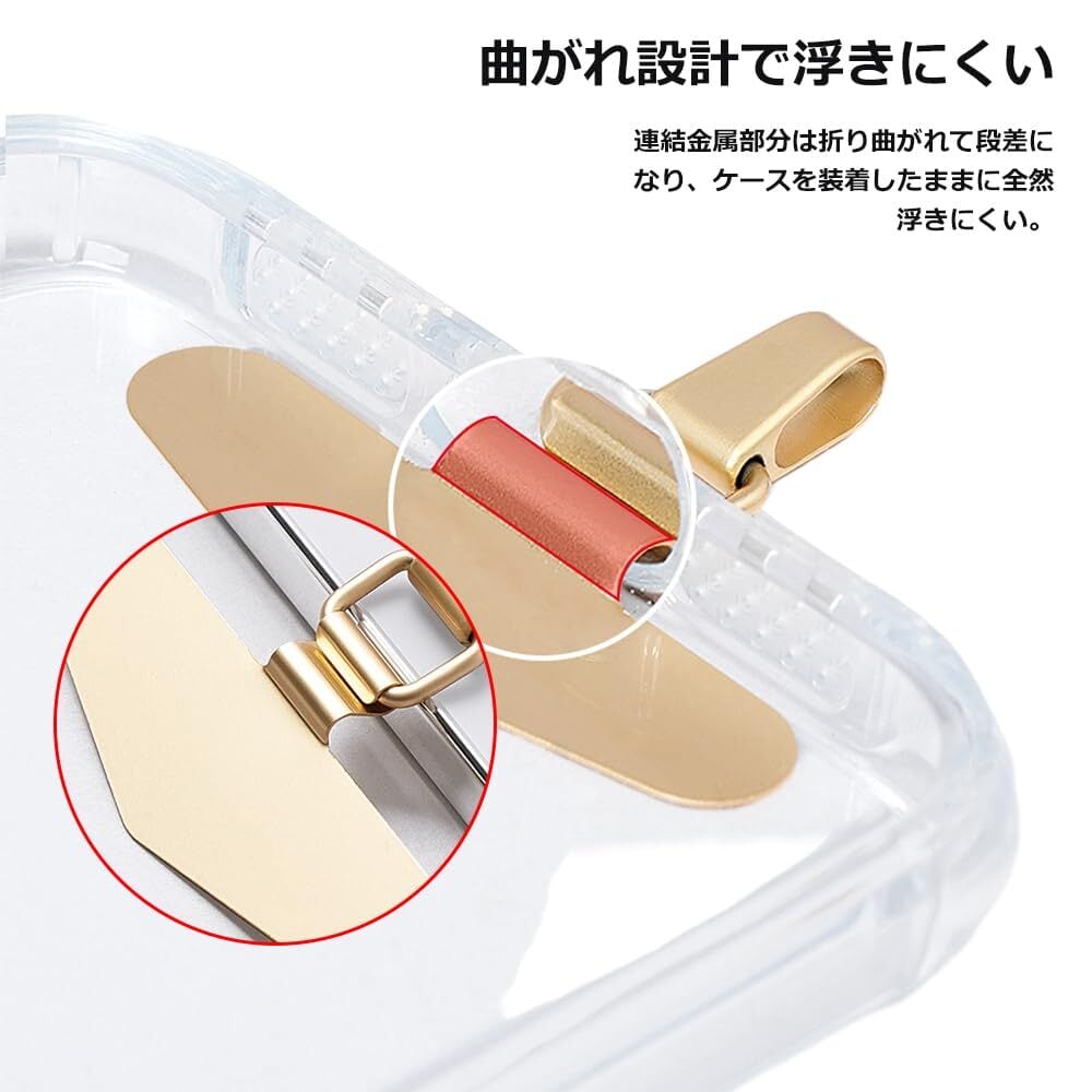 スマホ ストラップホルダー 【極薄0.2mm・浮きにくい折り曲がれ設計・ステンレス製】金属製タグパッチ 携帯ストラップホルダー 薄型 丈夫10kgまでの荷重量 スマホケースに挟む 全機種対応 充電影響なし 落下紛失防止 | kki