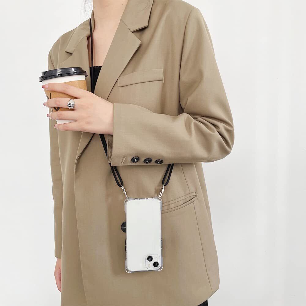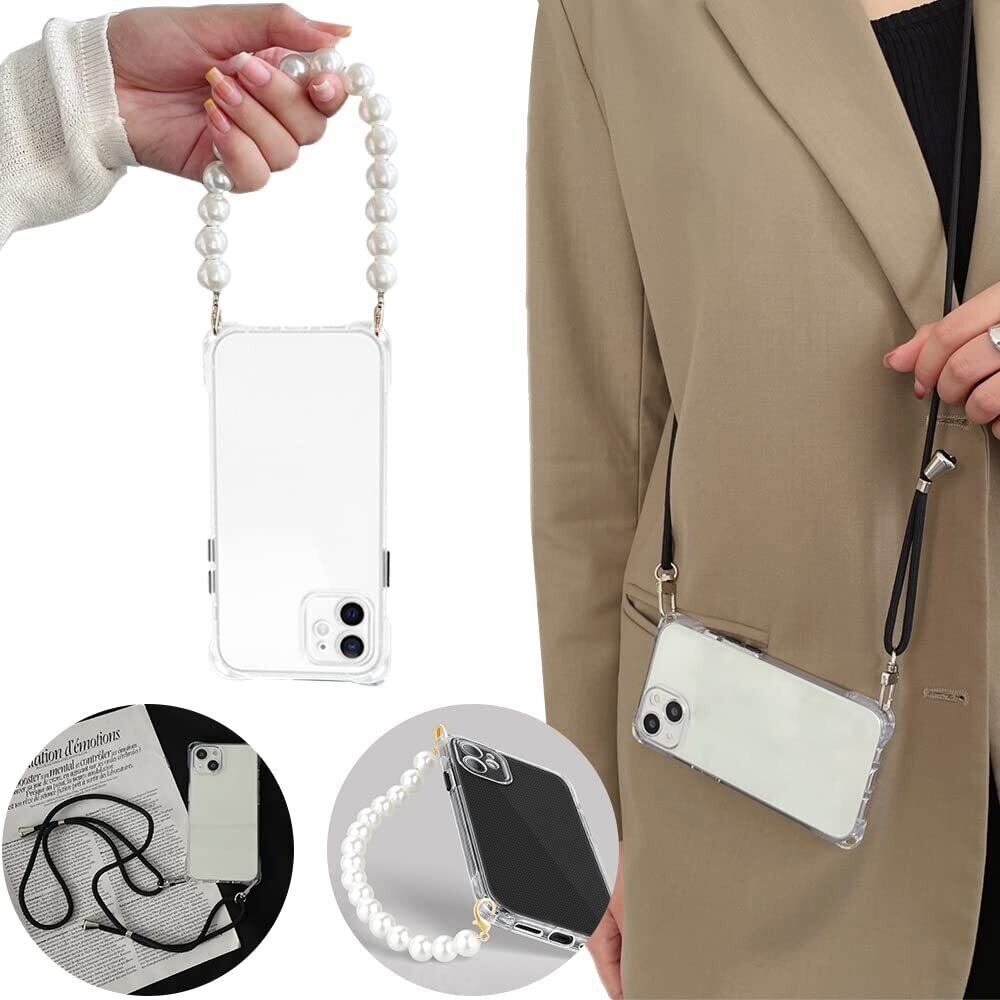 for iPhone 14 Pro ケース【革新版四隅に穴開き・3WAY】クロスボディ・ストラップケース パールリスト+ショルダー ストラップ 首・肩・腕掛け 縦/横掛け 3WAY 調節可能なショルダー iPhone14 Proスマホケース アイフォンプロ14 カバー クリア TPU 落下防止 耐衝撃 薄型軽量 ショルダー ケース 韓国 透明 薄型(iPhone14 Pro) | kki