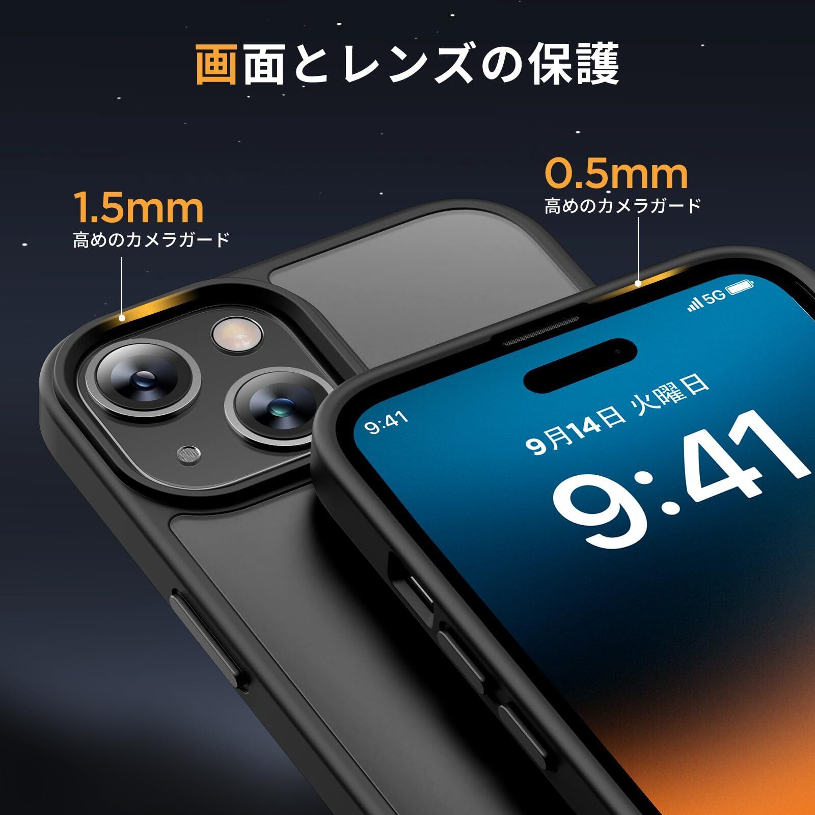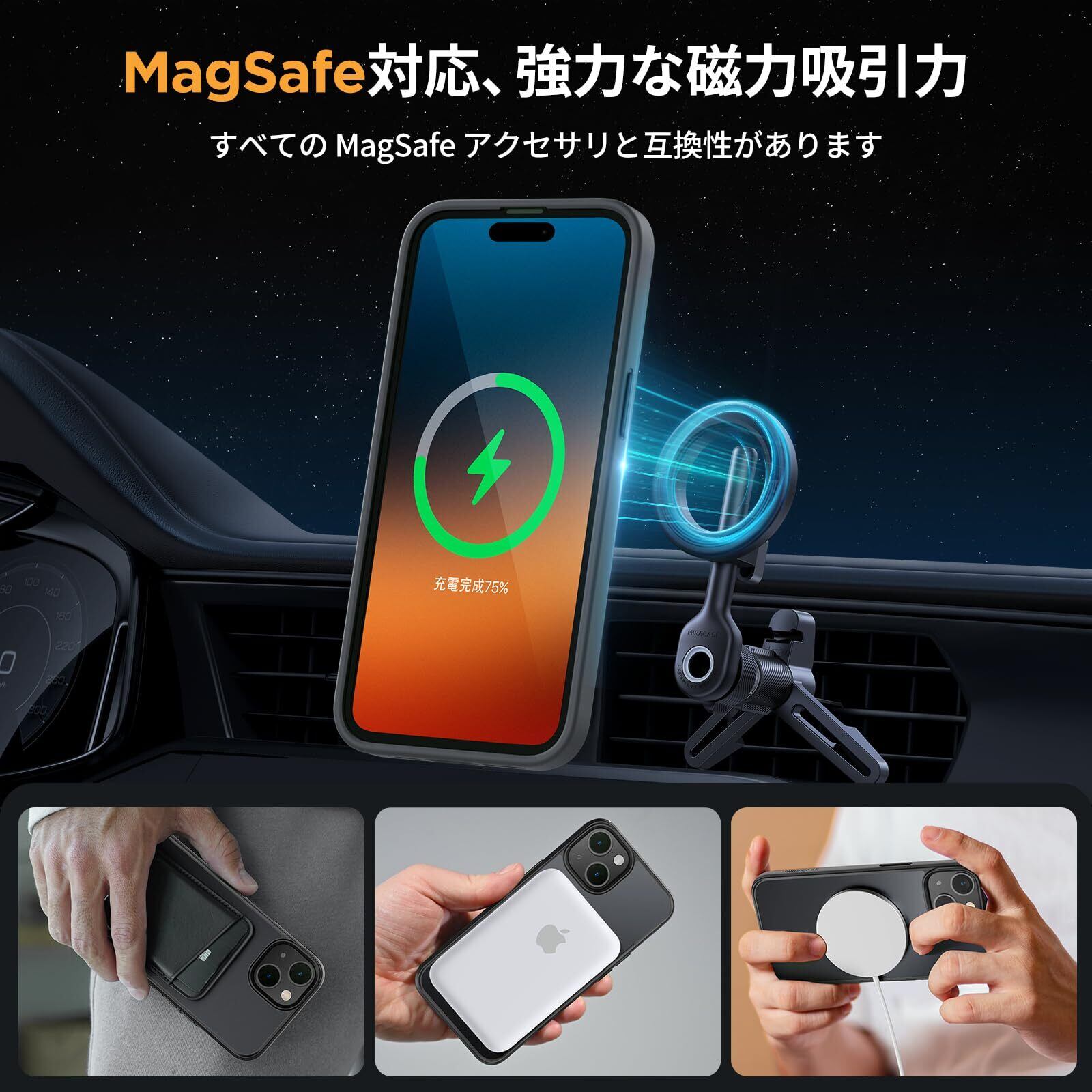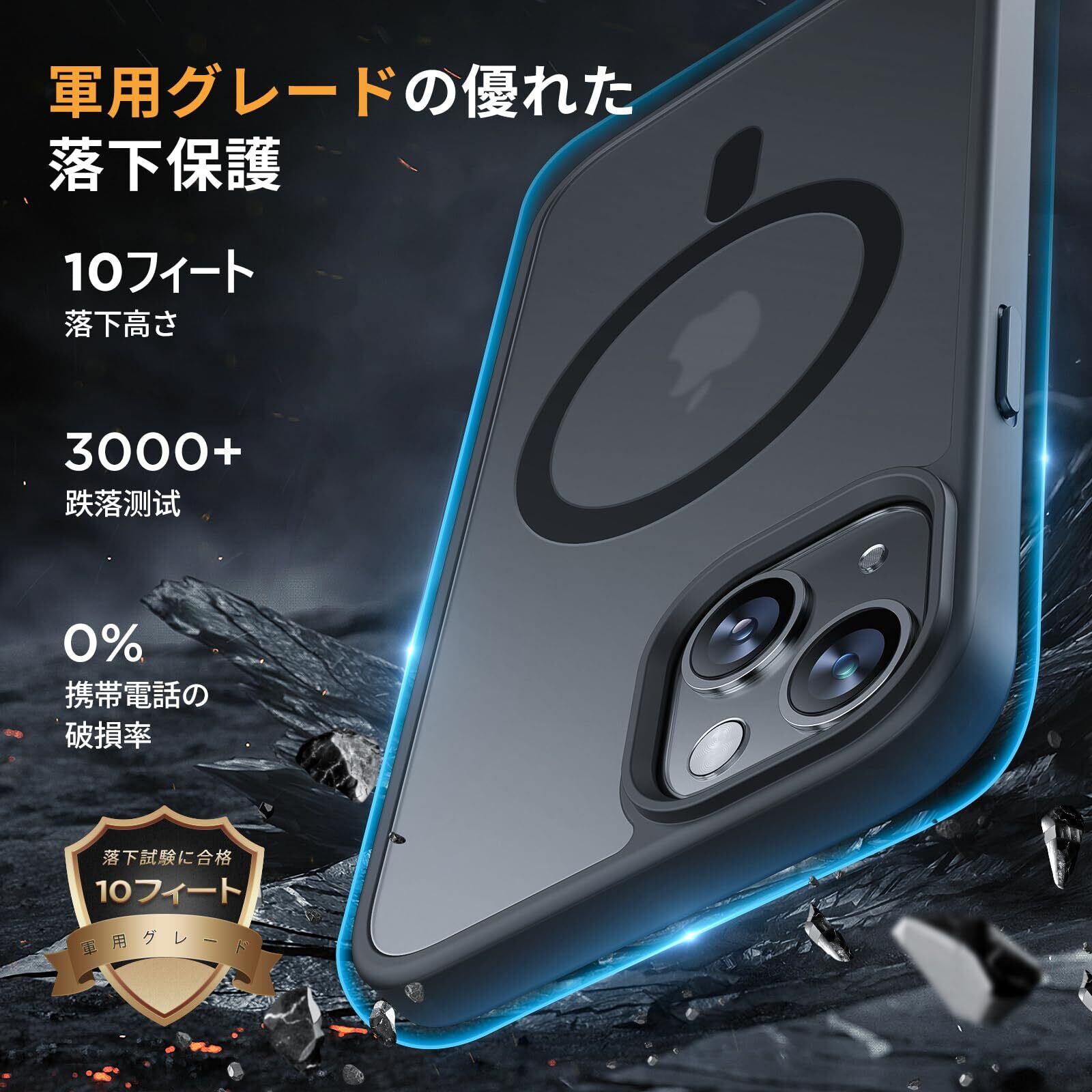 Miracase iphone15 ケース【Magsafe対応・MIL米軍規格】iphone15ケース 6.1インチ、耐衝撃iphone 15 ケース、黄ばみ防止、傷防止、指紋防止、放熱、ストラップホール付き、薄くて肌に優しいデザイン、金属ボタン、マット、フロスト、半透明、黒 | kki