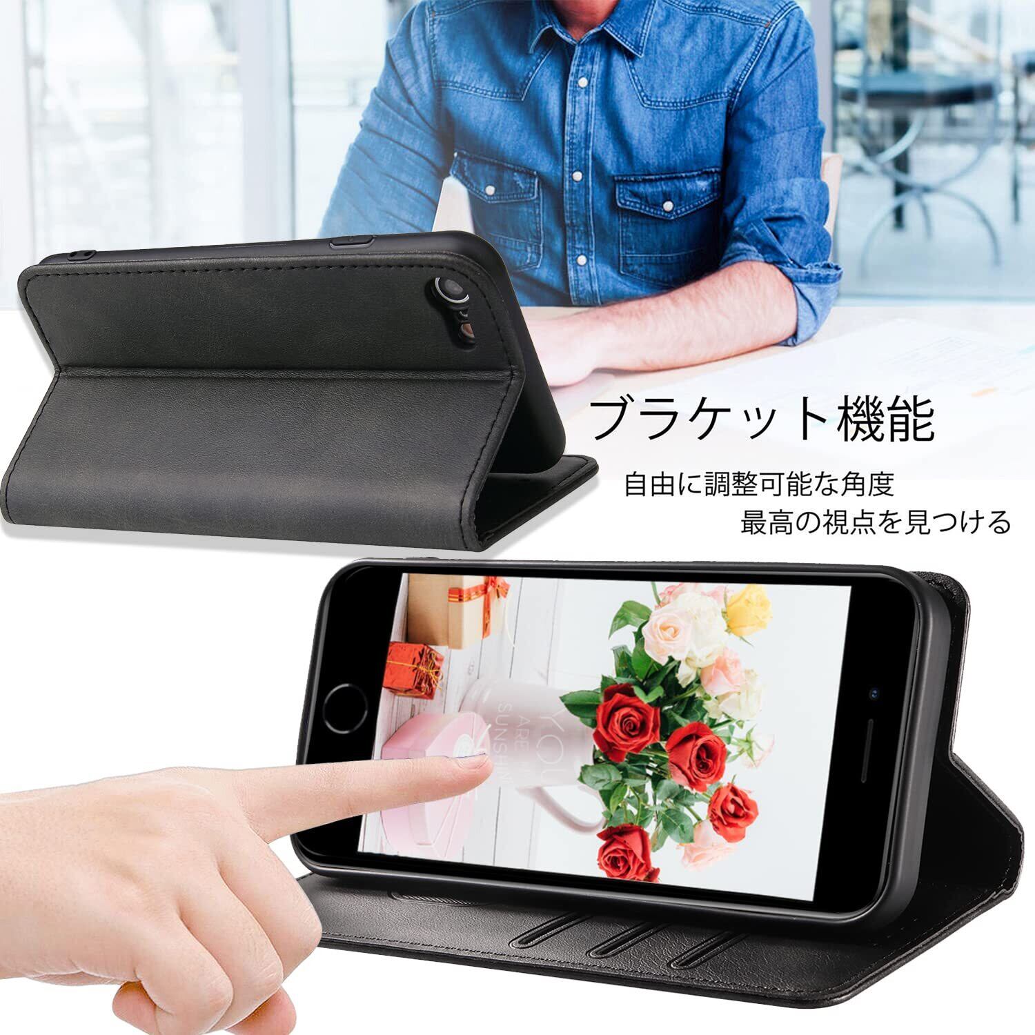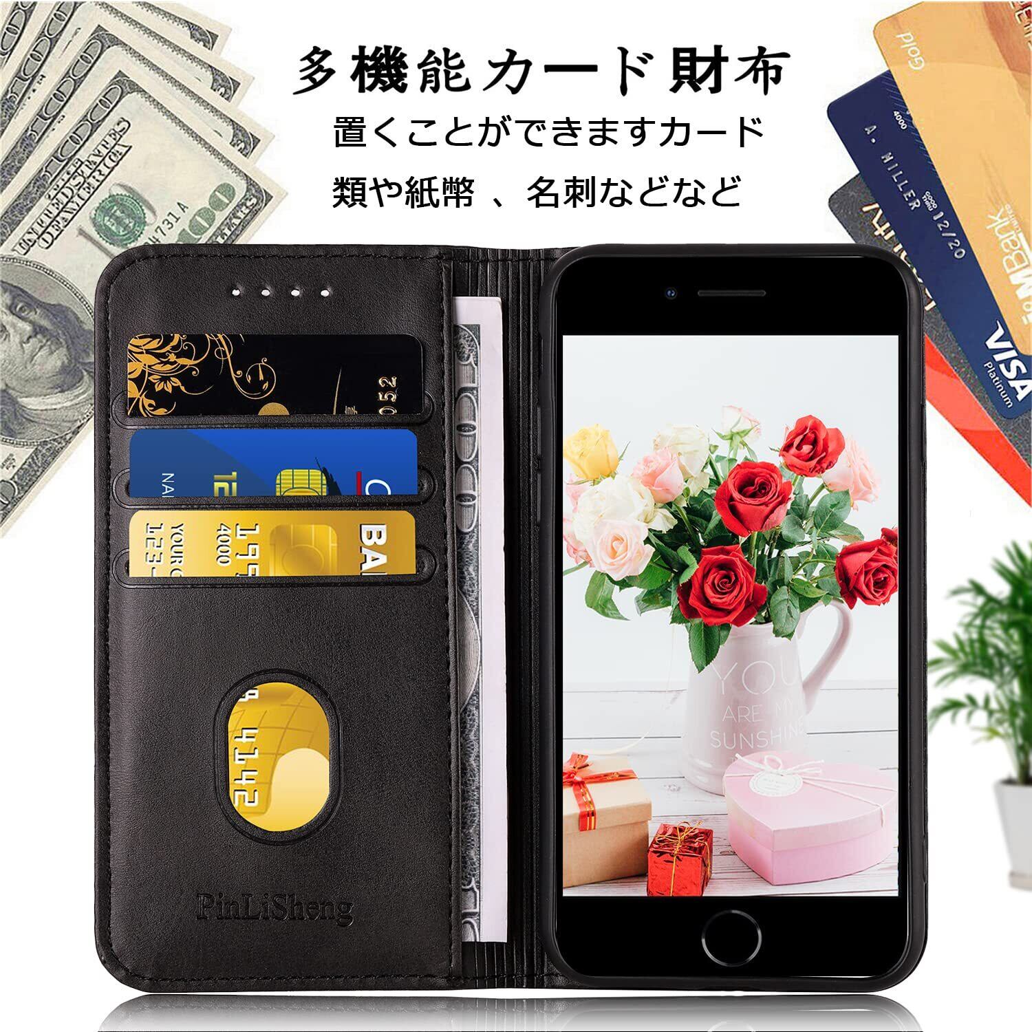 iPhone se ケース手帳型 第2世代 第3世代 iphone8/7 スマホケース se 携帯カバーPUレザー カード 収納ケースマグネット式 スタンド機能アイフォンse3/se2 ケース4.7インチ対応 360度保護 (ブラック, iPhone SE2 iPhone SE3 iPhone8 iPhone7) | kki