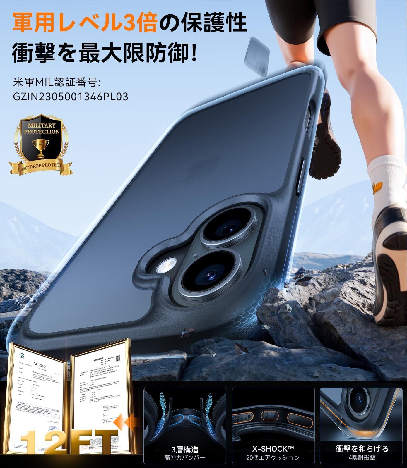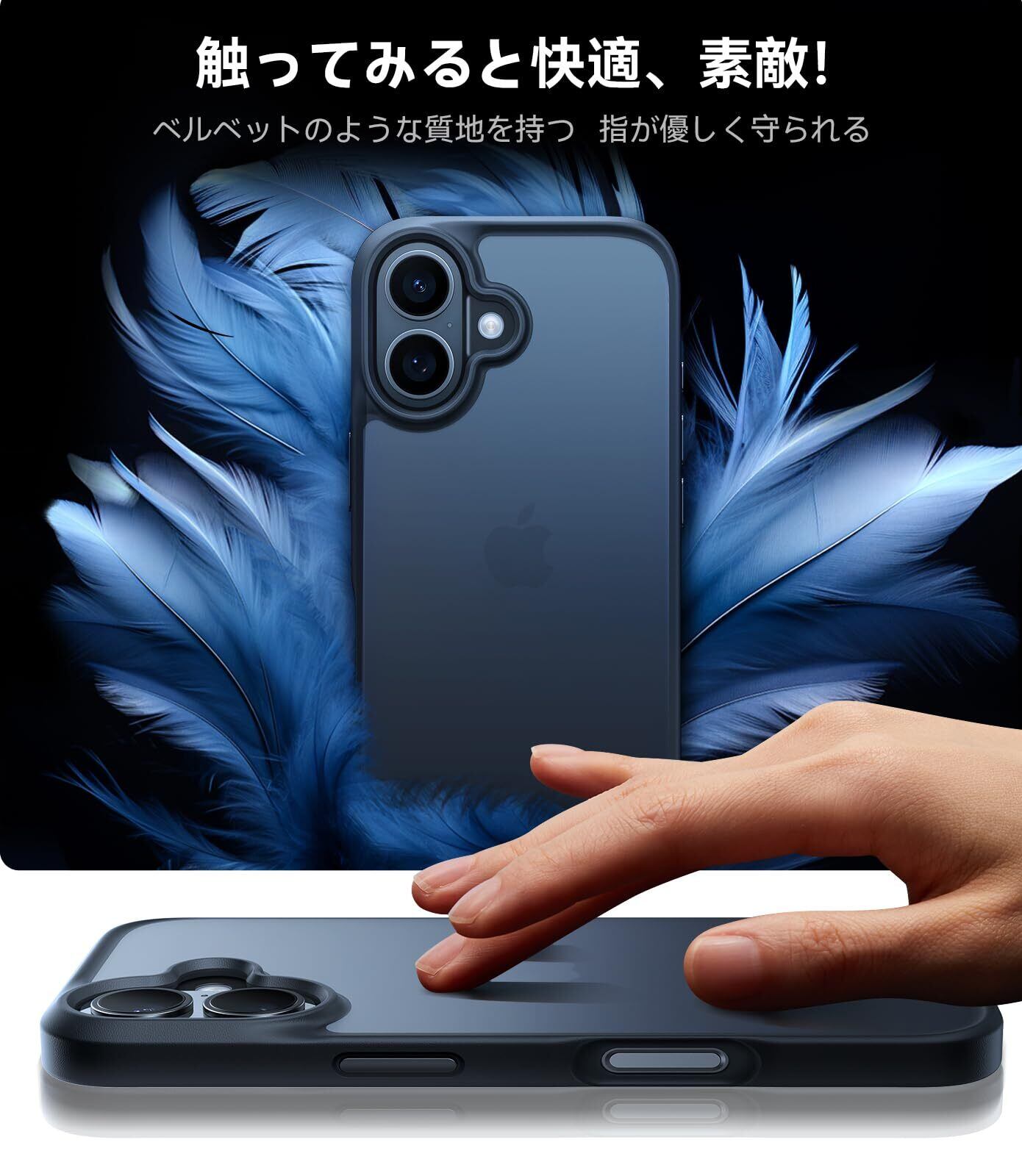 【3倍米軍MIL規格・マット仕上げ 】TORRAS iPhone 16 用 ケース 耐衝撃 半透明 マット質感 滑り止め 黄ばみ防止 米軍MIL規格 指紋防止 ストラップホール付き ボタン付属 6.1 インチ For あいふおん16ケース「Guardian Series」マット ブラック | kki