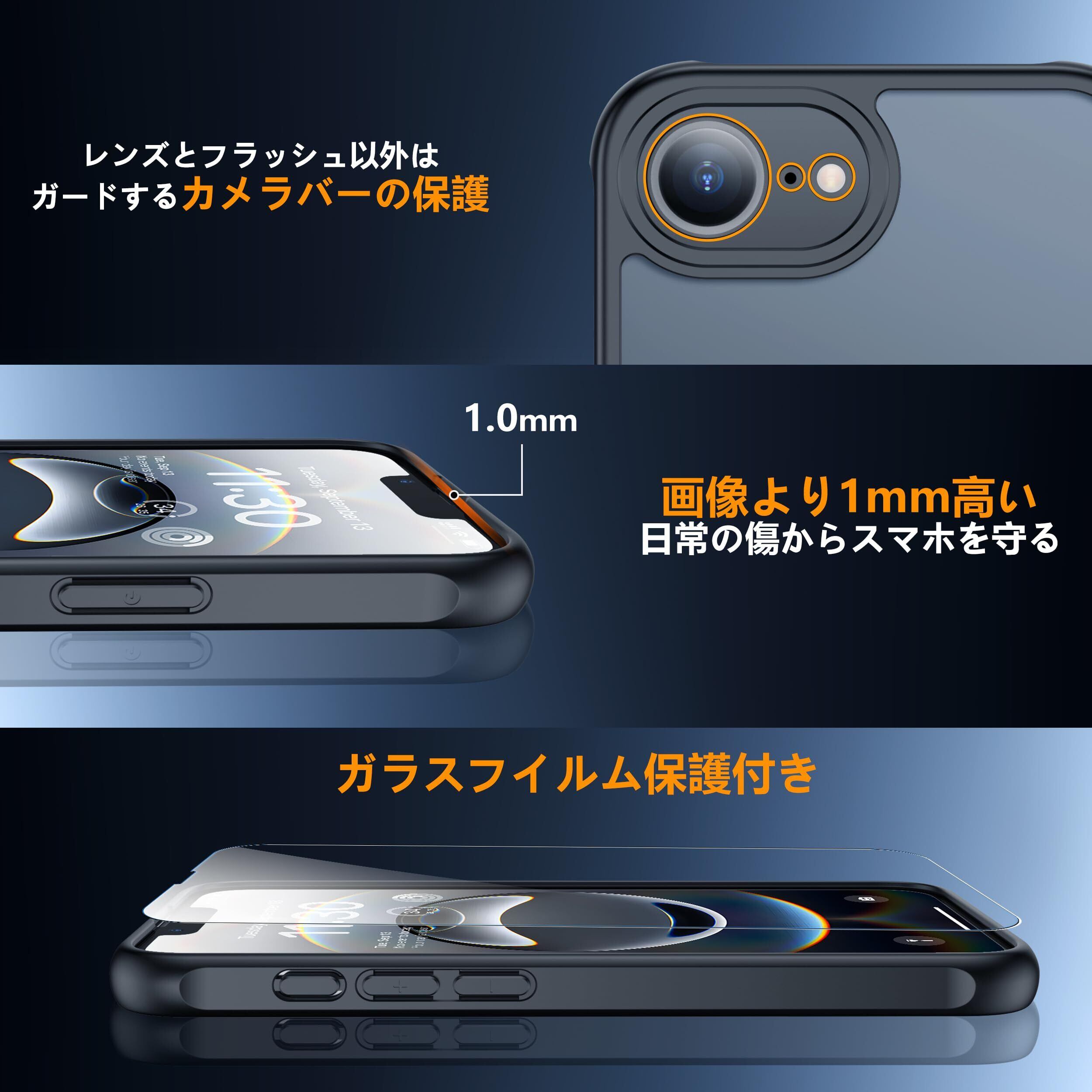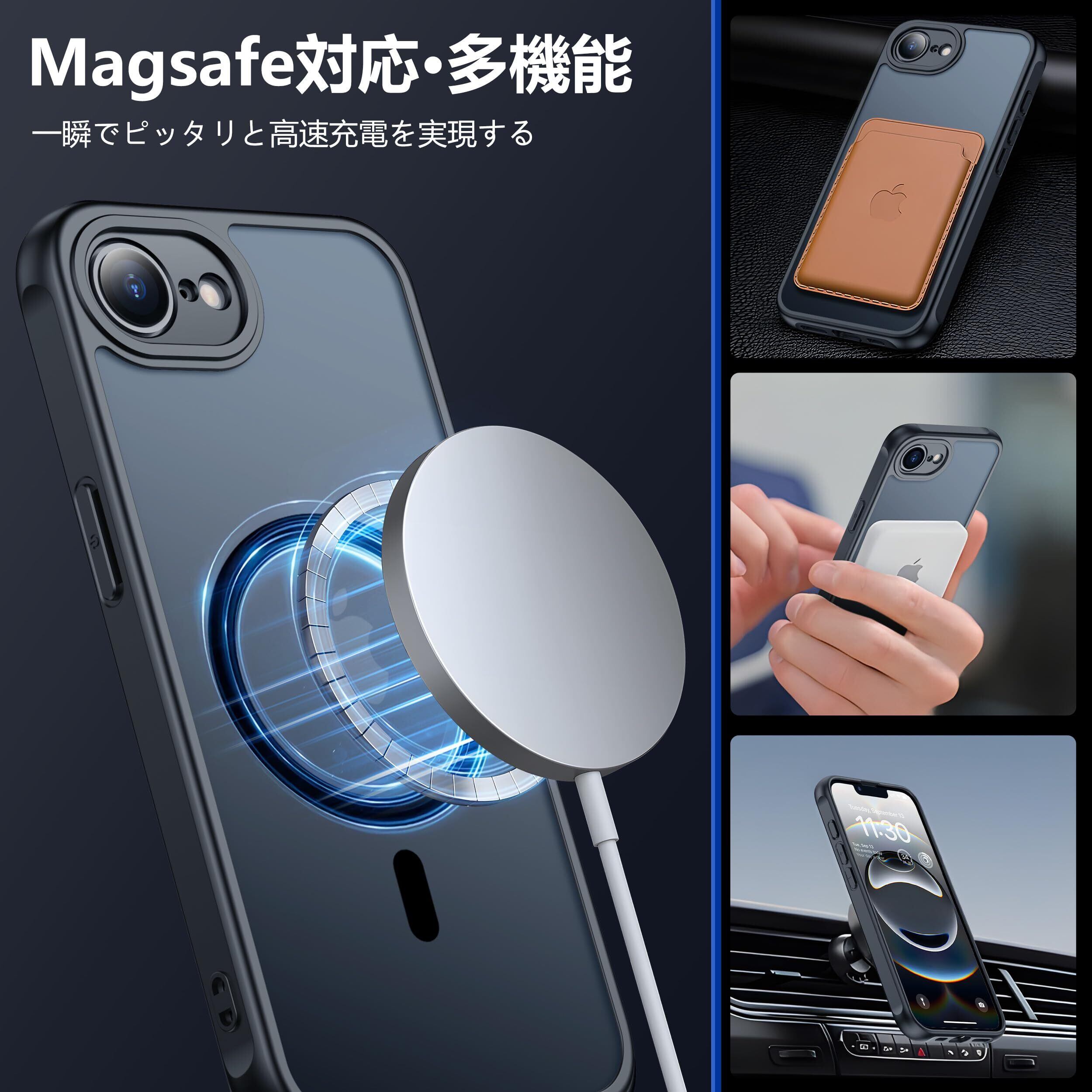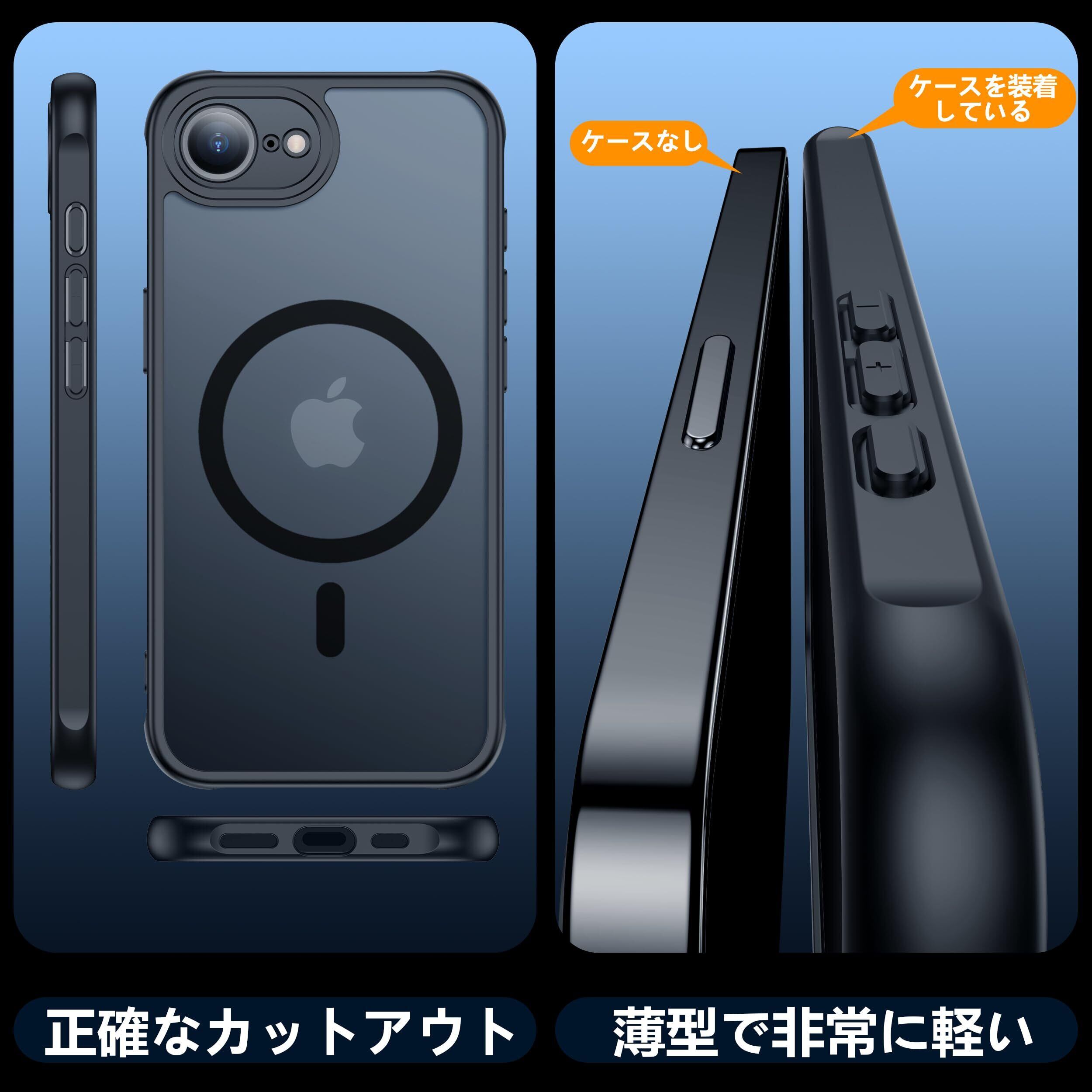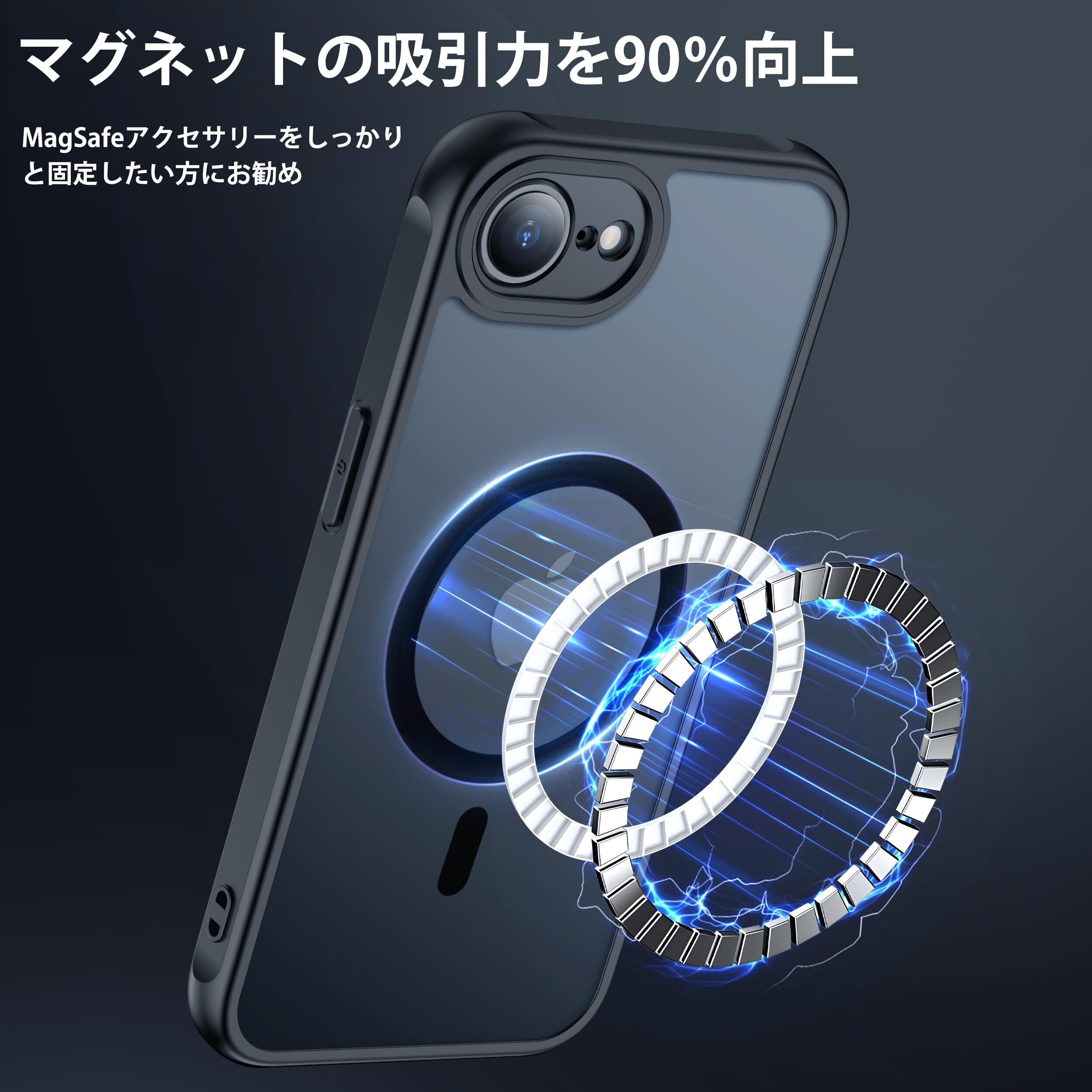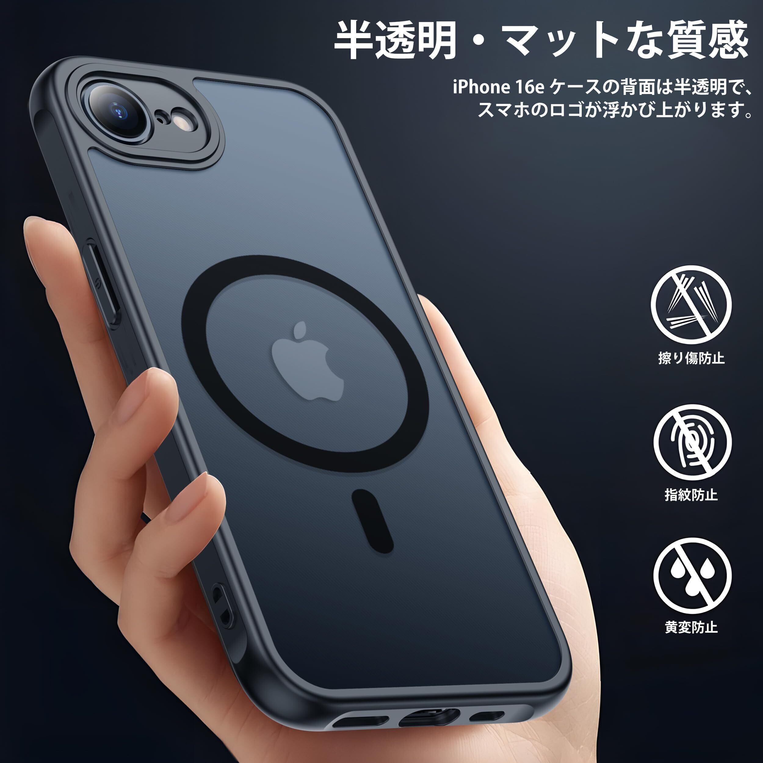 iPhone 16e 用ケース【 磁気充電可・米軍規格】ガラスフイルム付き 半透明 第四世代 マット感 アイフォン16e用 耐衝撃 アイホン 16E用 マグネット搭載 黄ばみ防止 いphone 16e用 指紋防止 傷防止 薄くて肌に優しいデザイン スマホカバー Justcool | kki