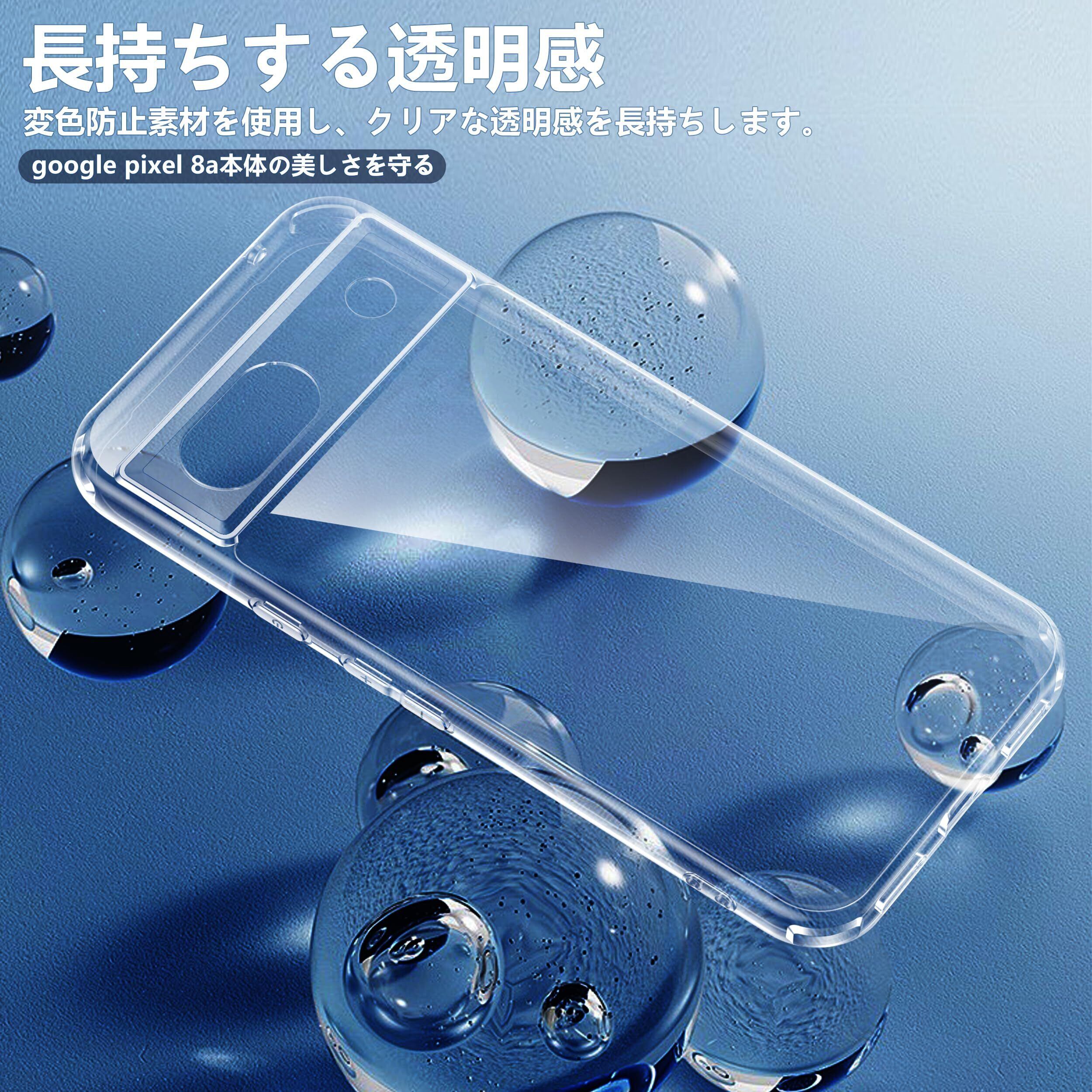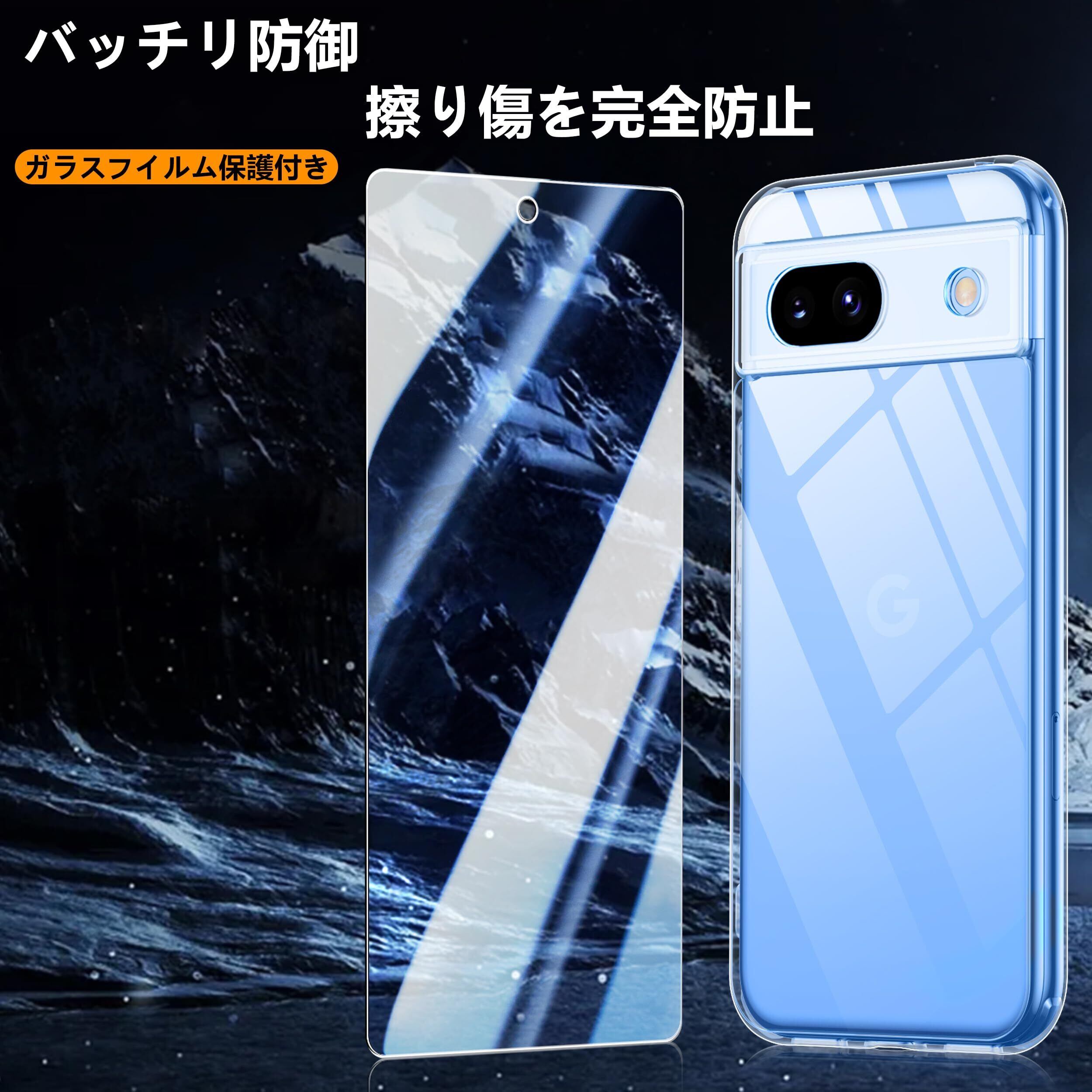 Google Pixel 8a 用ケース クリア 黄変防止 グーグルピクセル8a用 耐衝撃 ガラスフイルム保護付き 指紋防止 落下防止 耐久性 ストラップホール付 薄型 軽量 ソフトカバー ワイヤレス充電対応 googleピクセル8a 用 XIWXI | kki