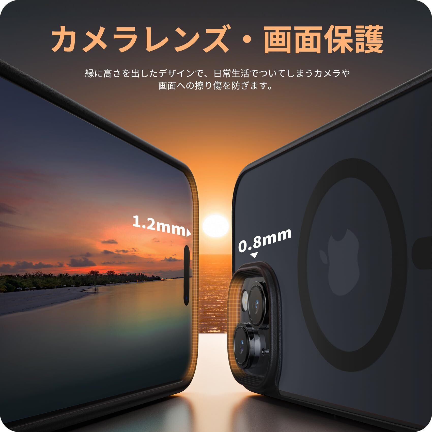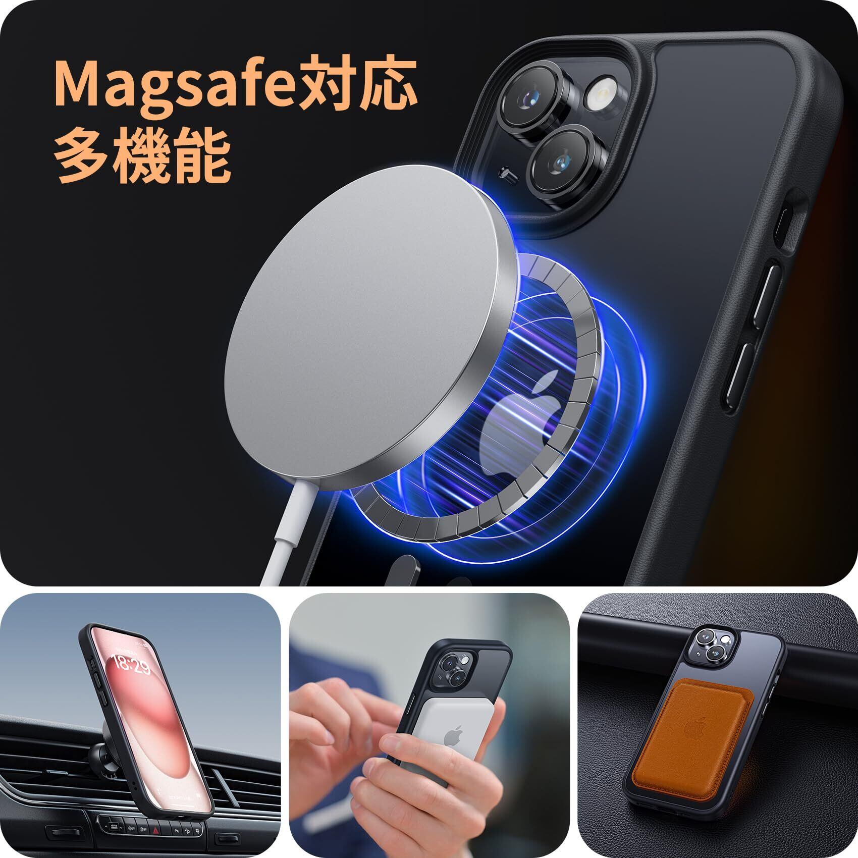 NIMASO iPhone15用 ケース MagSafe マグネット搭載 マグセーフ対応 カバー 滑り止め マット仕上げ 全面保護 耐衝撃 米軍MIL規格取得 いphone15 ケース magsafe ワイヤレス充電 ストラップホール付き アイフォン15対応(6.1インチ) スマホケース ブラック (黒羽シリーズ) NSC23H719 | kki