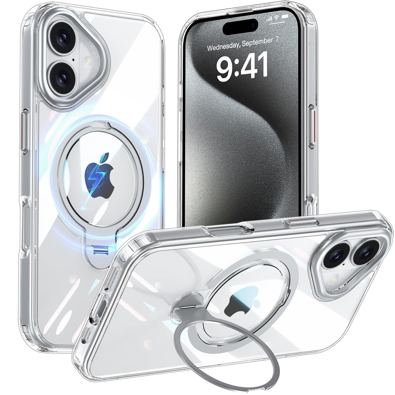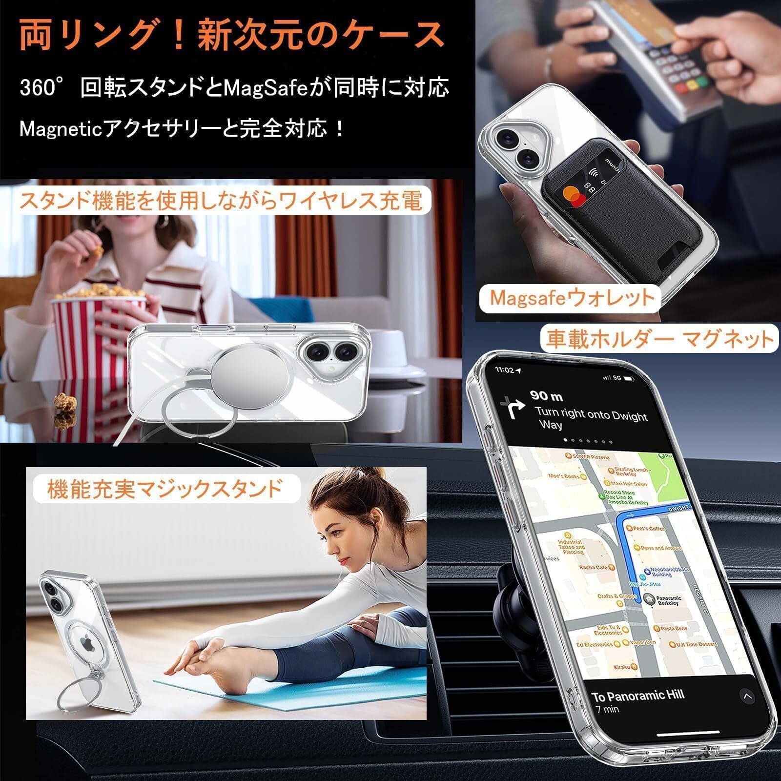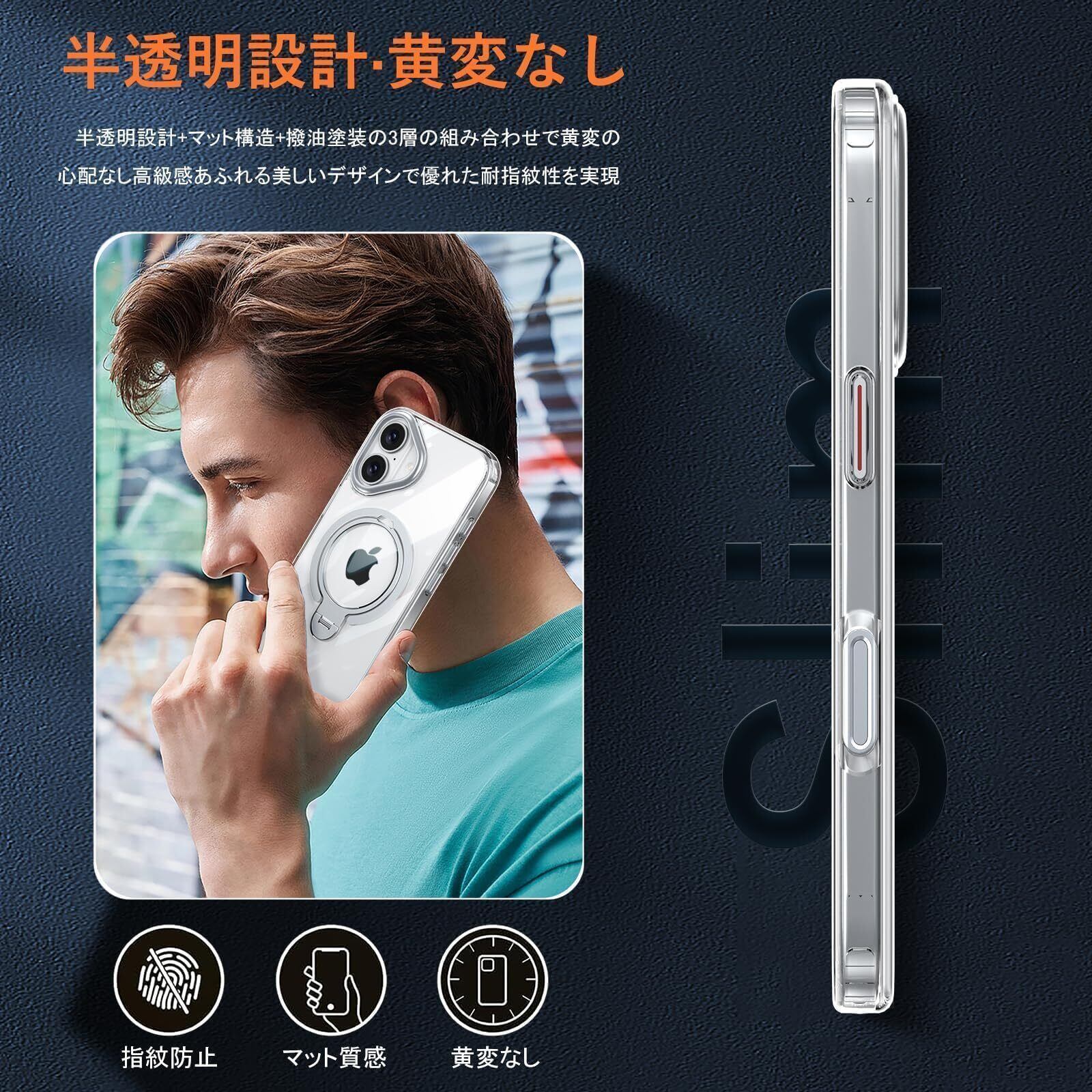iPhone 16 用 ケース MagSafe対応 リング360°回転スタンド機能 縦横両対応 透明 黄ばみ防止 ワイヤレス充電 いphone16 スマホケース レンズ保護 米軍規格 耐衝撃 携帯カバー アイフォン 16 ケース マグネット搭載 車載ホルダー マグセーフ対応 おしゃれ クリア | kki