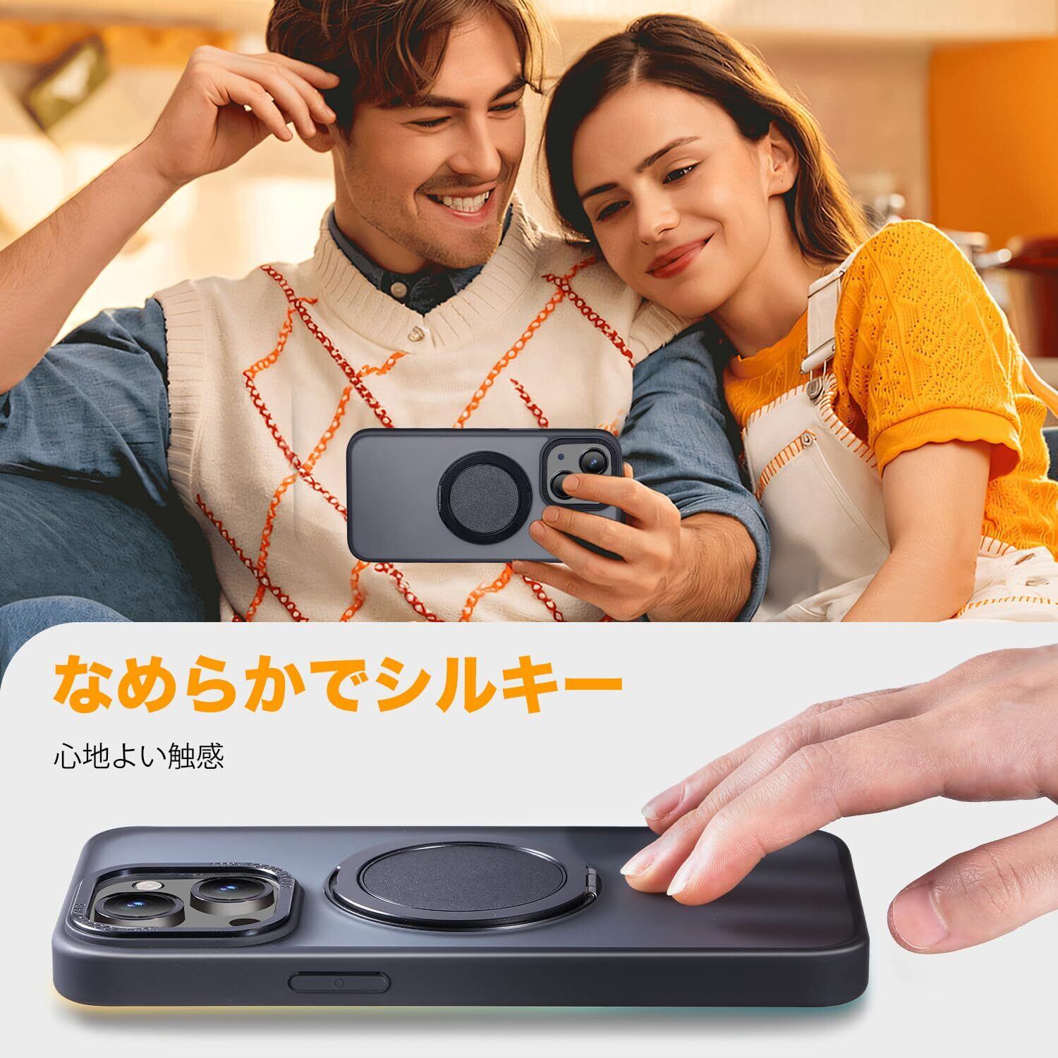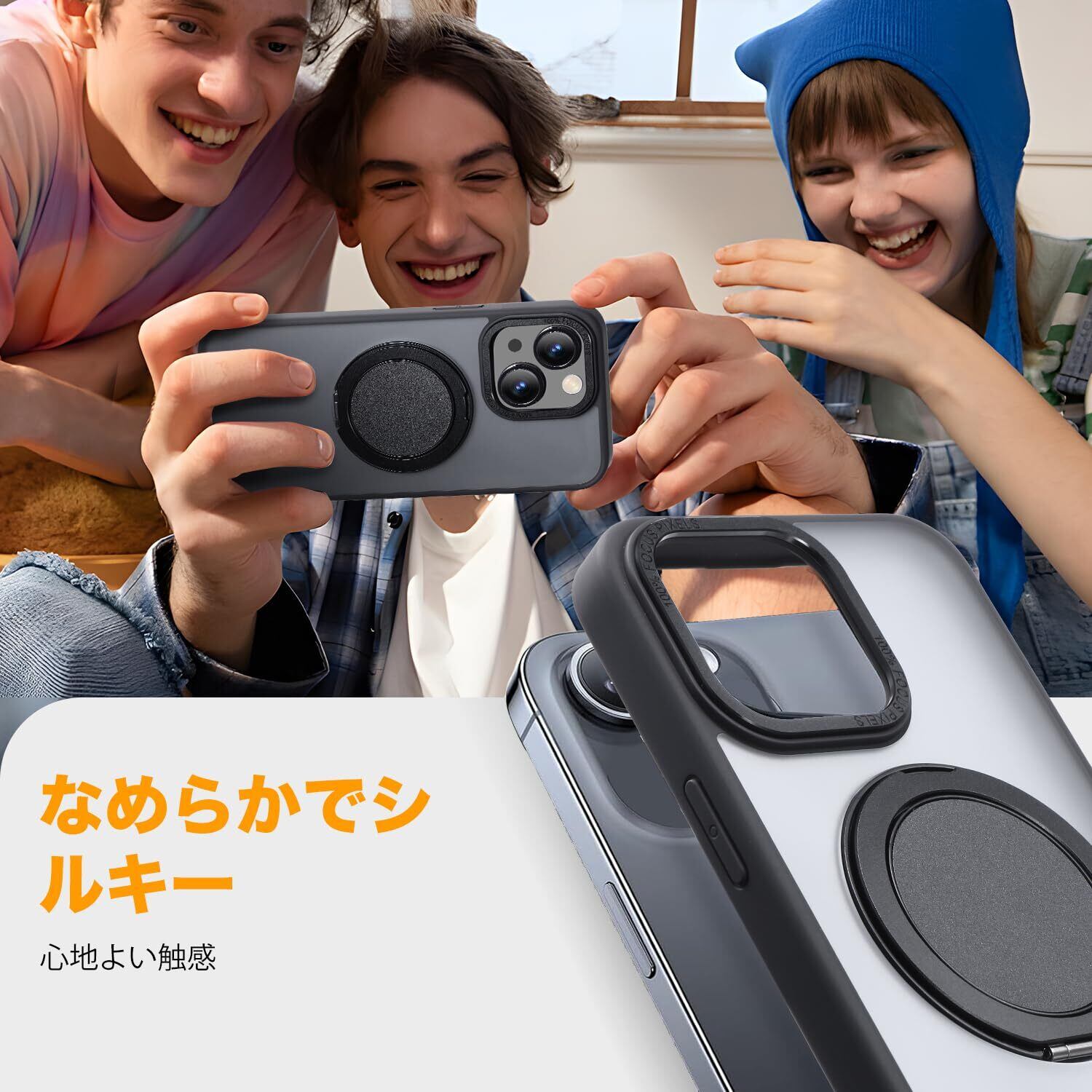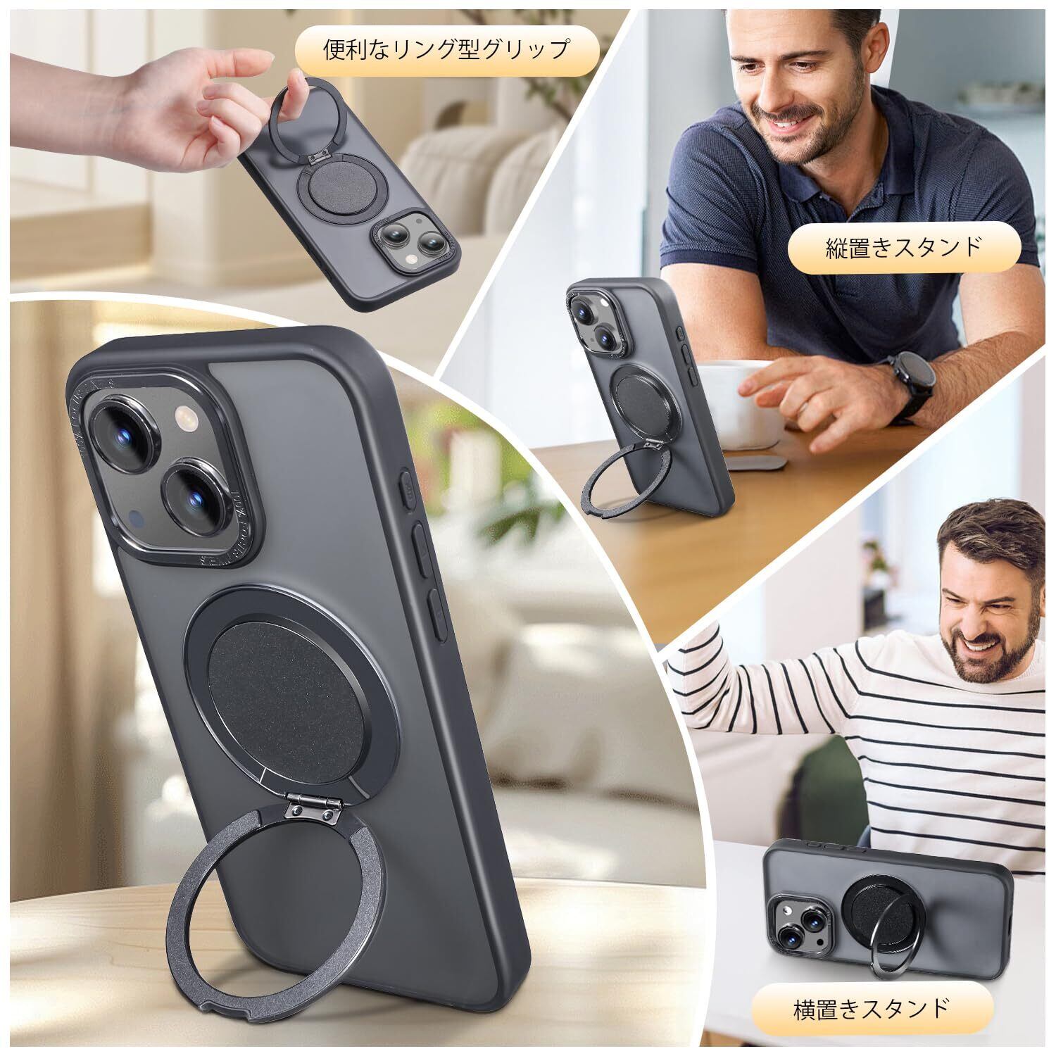 【Magsafe対応・スタンド付き】Mcoifull iPhone14 ケース iPhone13 ケース マグネット搭載 ワイヤレス充電 耐衝撃 マット感 半透明 指紋防止 アジャスタブルスタンド アイフォン14 ケース アイフォン13 ケース ブラック | kki