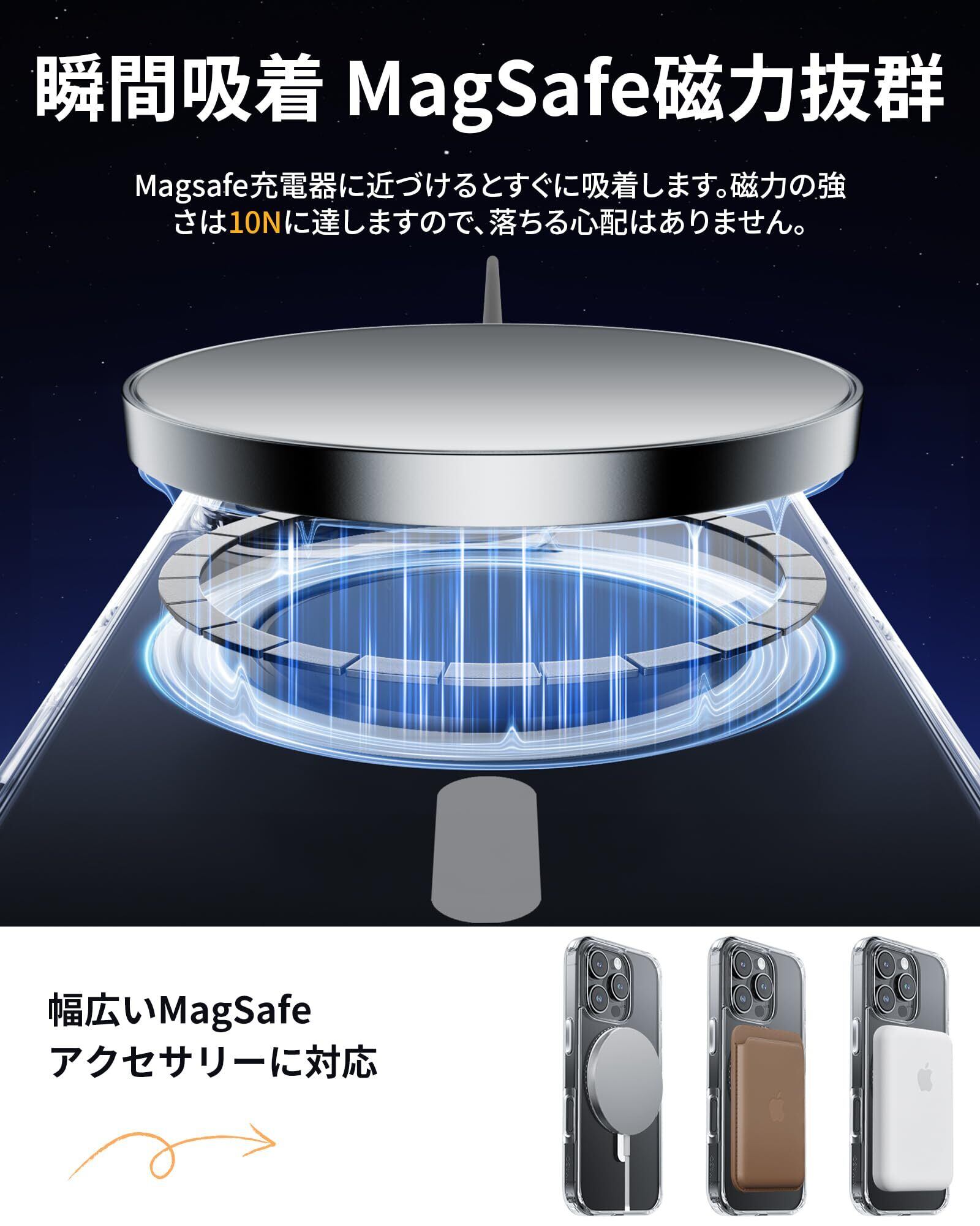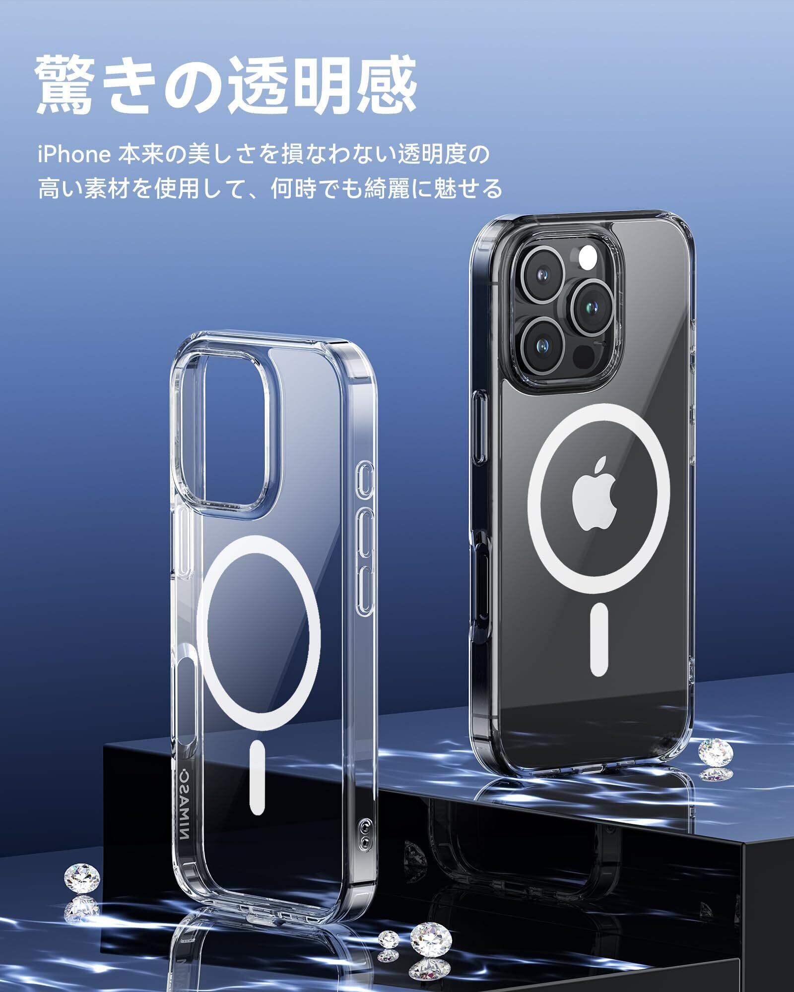 NIMASO iPhone 16 Pro 用 ケース MagSafe対応 黄変防止 マグネット搭載 マグセーフ対応 耐衝撃 米軍MIL規格 SGS認証 PC背面 いPhone 16 Pro対応 傷つけ防止 薄型 ワイヤレス充電対応 ストラップホール付き アイフォン 16 プロ 対応(6.3インチ) スマホケース (氷星シリーズ)クリア NSC24G1480 | kki