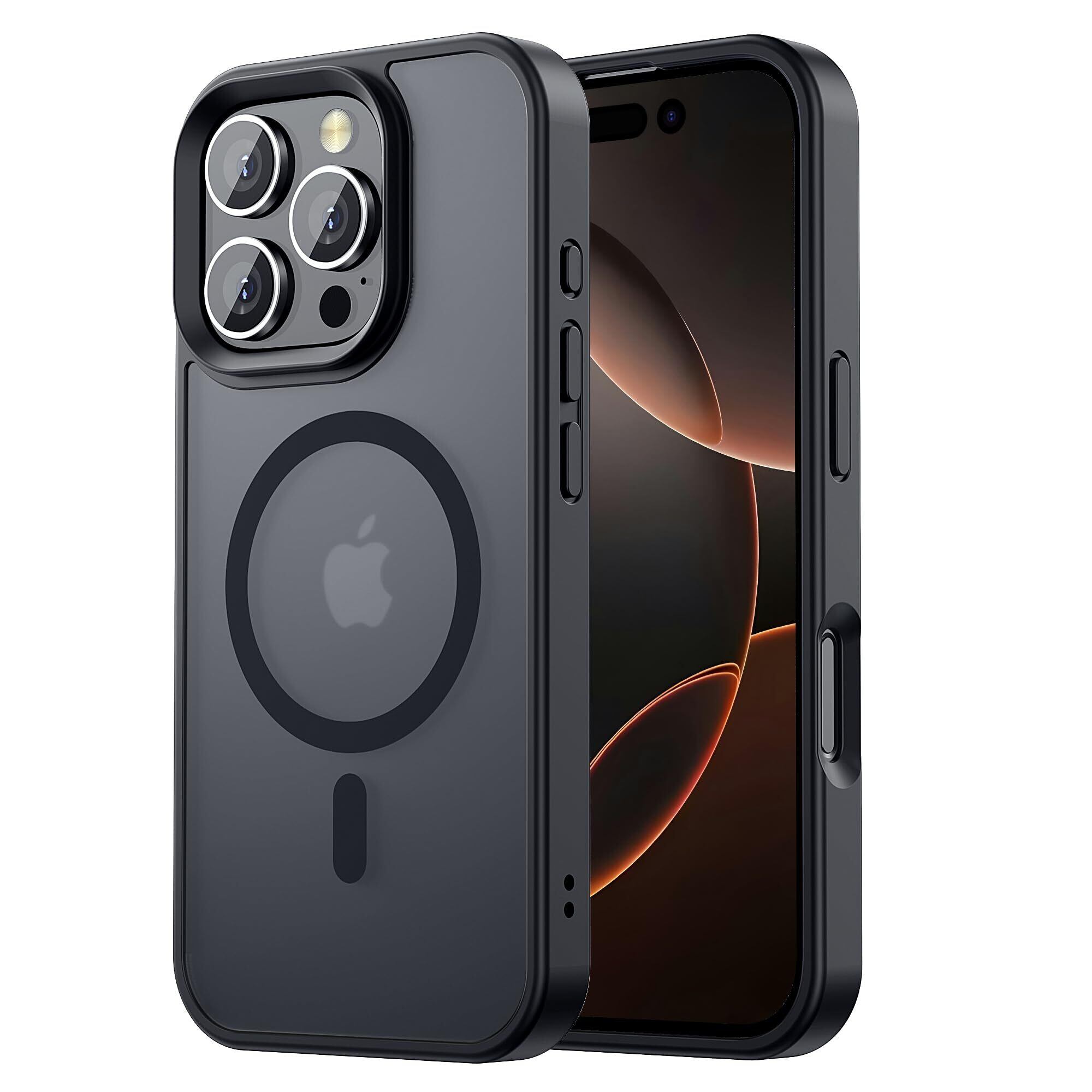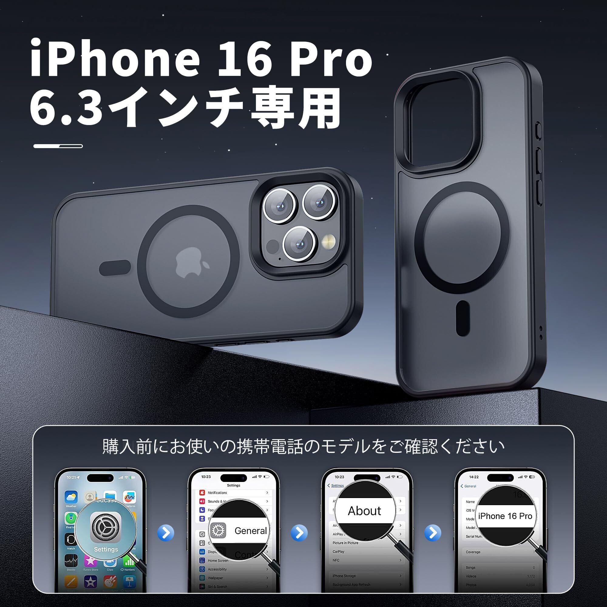 【米軍規格・MagSafe対応】Gtsoho iPhone 16 Pro ケース 用 ケース 半透明 マグネット搭載 ワイヤレス充電 耐衝撃 耐久性 全面保護 黄ばみなし ストラップホール付き イフォン 16 Pro 用 カバー マグセーフ対応 ブラック | kki