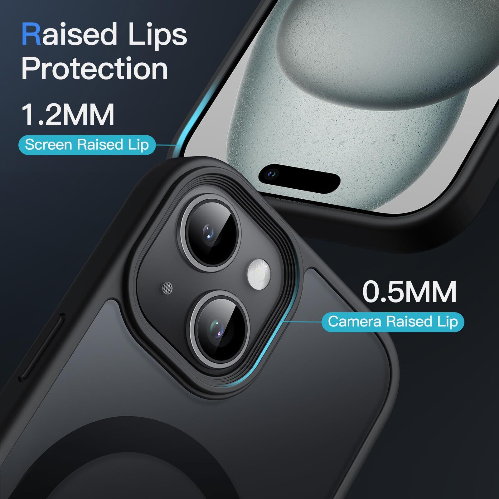 JETech iPhone 15 6.1インチ用 マグネット ケース MagSafeに対応 半透明のマット背面 薄型 耐衝撃 カバー (ブラック)