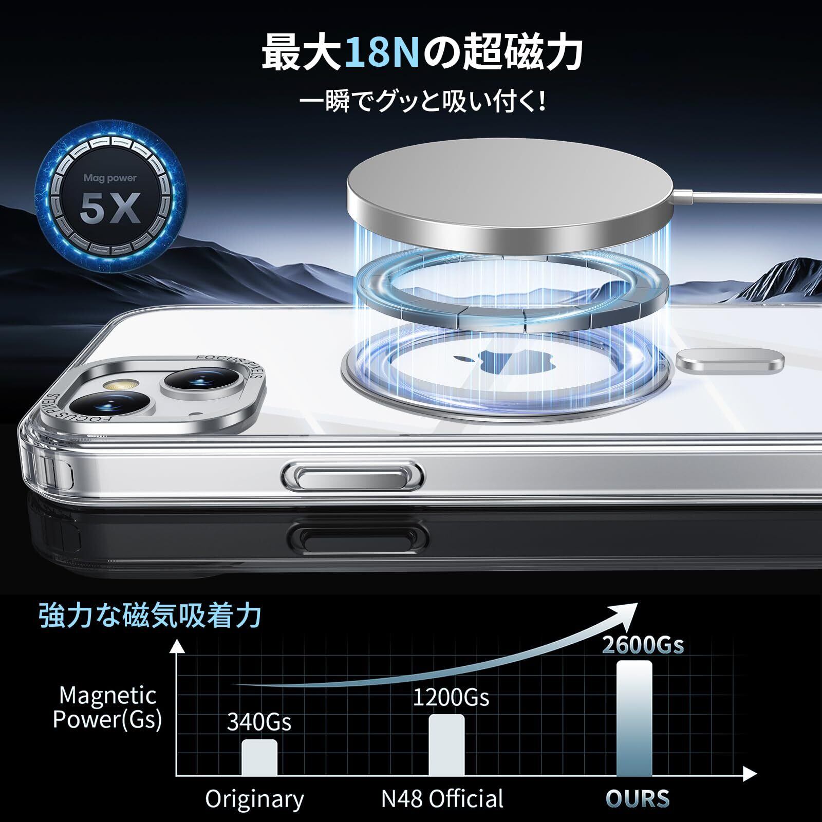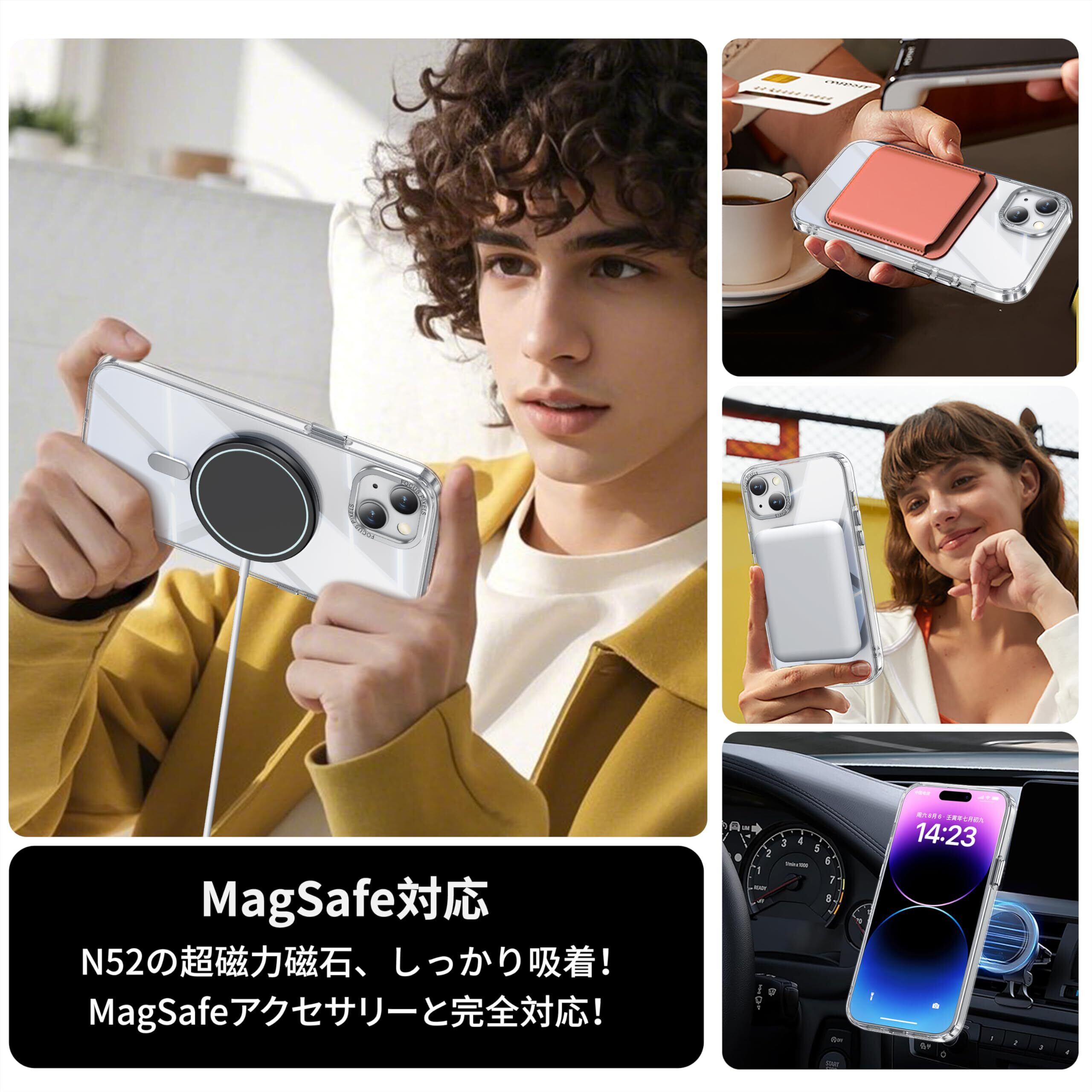 iPhone 15 用 ケース Magsafe対応 360°回転スタンド アイフォン15 スマホケース リング マグネット 搭載 ワイヤレス充電 縦横多角度 対応 Uovon アイホン15 カバー 車載ホルダー あいふおん15 携帯ケース 金属ボタン ストラップ穴付き 透明 黄変防止 米軍MIL規格 ・ クリア | kki