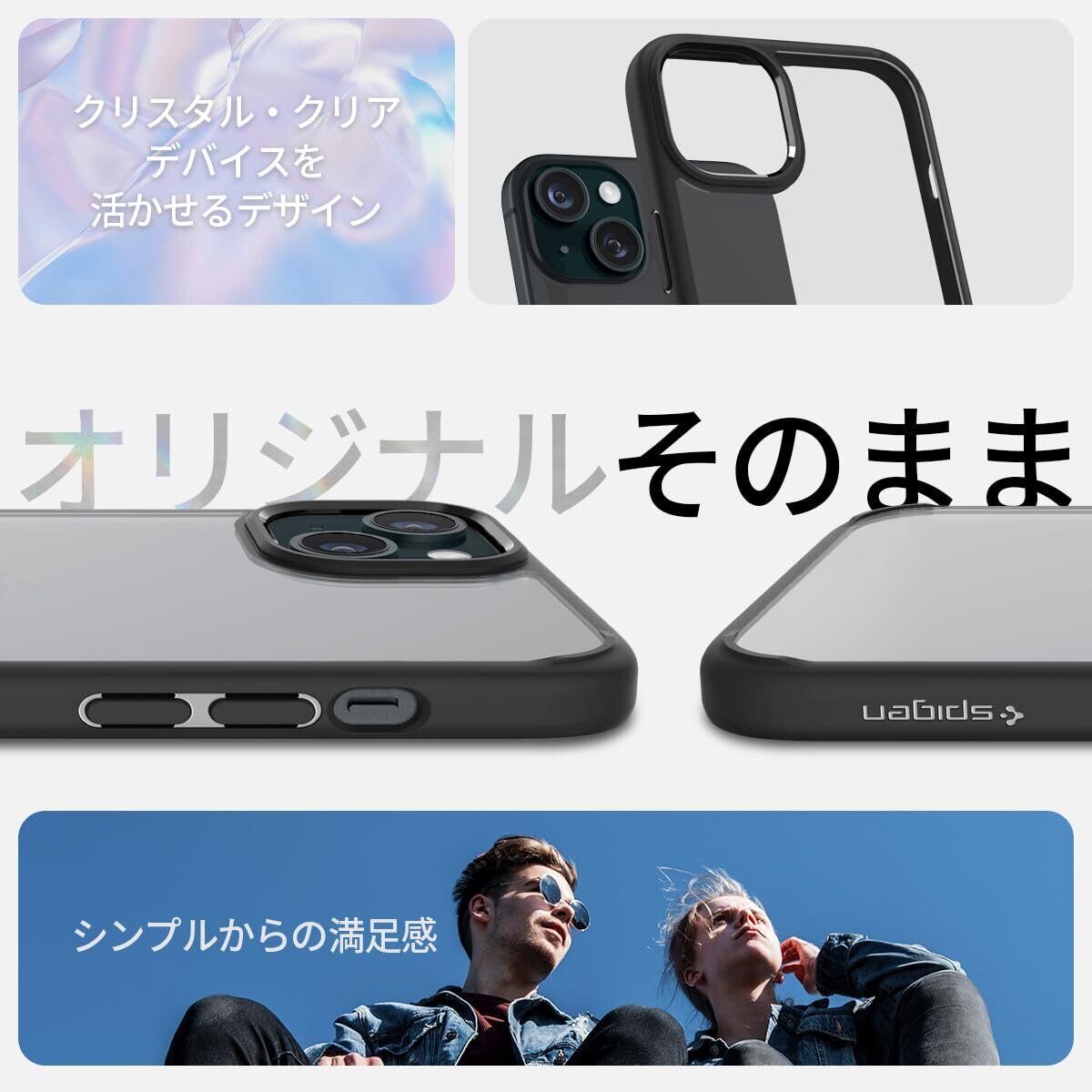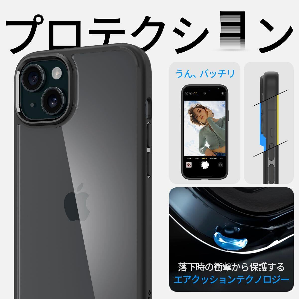 Spigen 【創業18年の技術力】 iPhone 15 ケース クリア 耐衝撃 黄変なし 米軍MIL規格取得 ストラップホール 透明 TPU バンパーケース 2重構造 レンズ保護 擦り傷防止 ワイヤレス充電対応 ウルトラ・ハイブリッド ACS06799 (マット・ブラック) | kki
